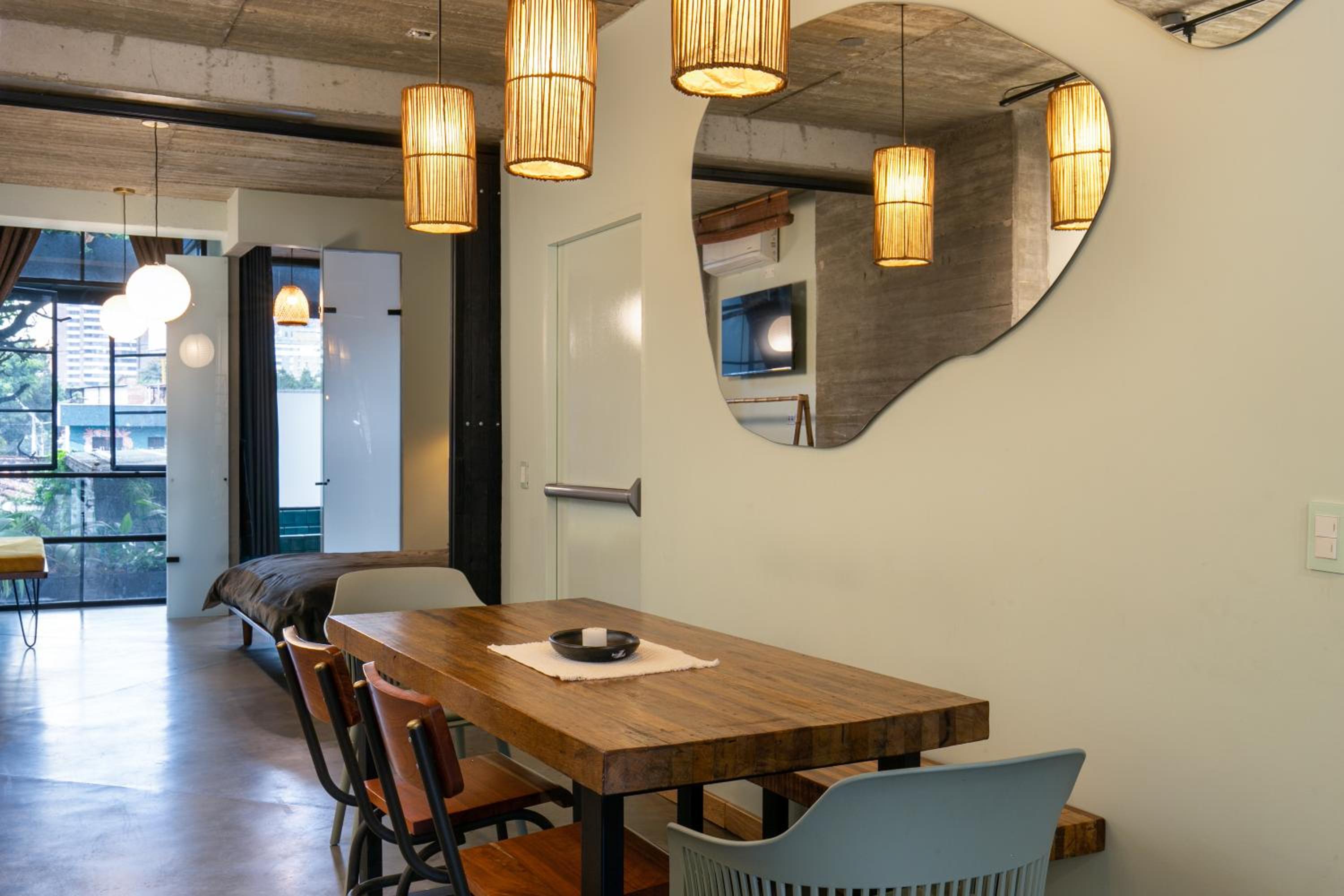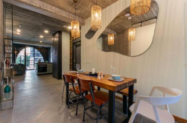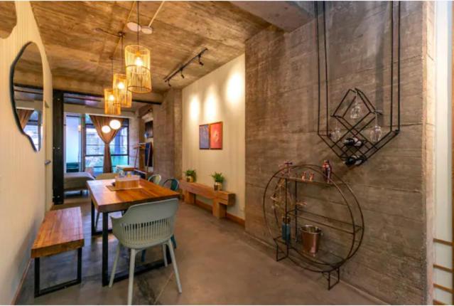 La onda de la arquitectura del lugar. Me sentía en un loft de esos barrios neoyorquinos del soho. El tamaño del departamento, grande, liberador, no te sientes agobiado como en esos dormitorios standard de grandes hoteles de 23 m2. La ubicación es perfecta. De hecho, a los restaurantes que fui, todos caminables y, tuve un problema de alergia fuerte y fui a la cnínica de muy buen nivel a sólo 5 cuadras.