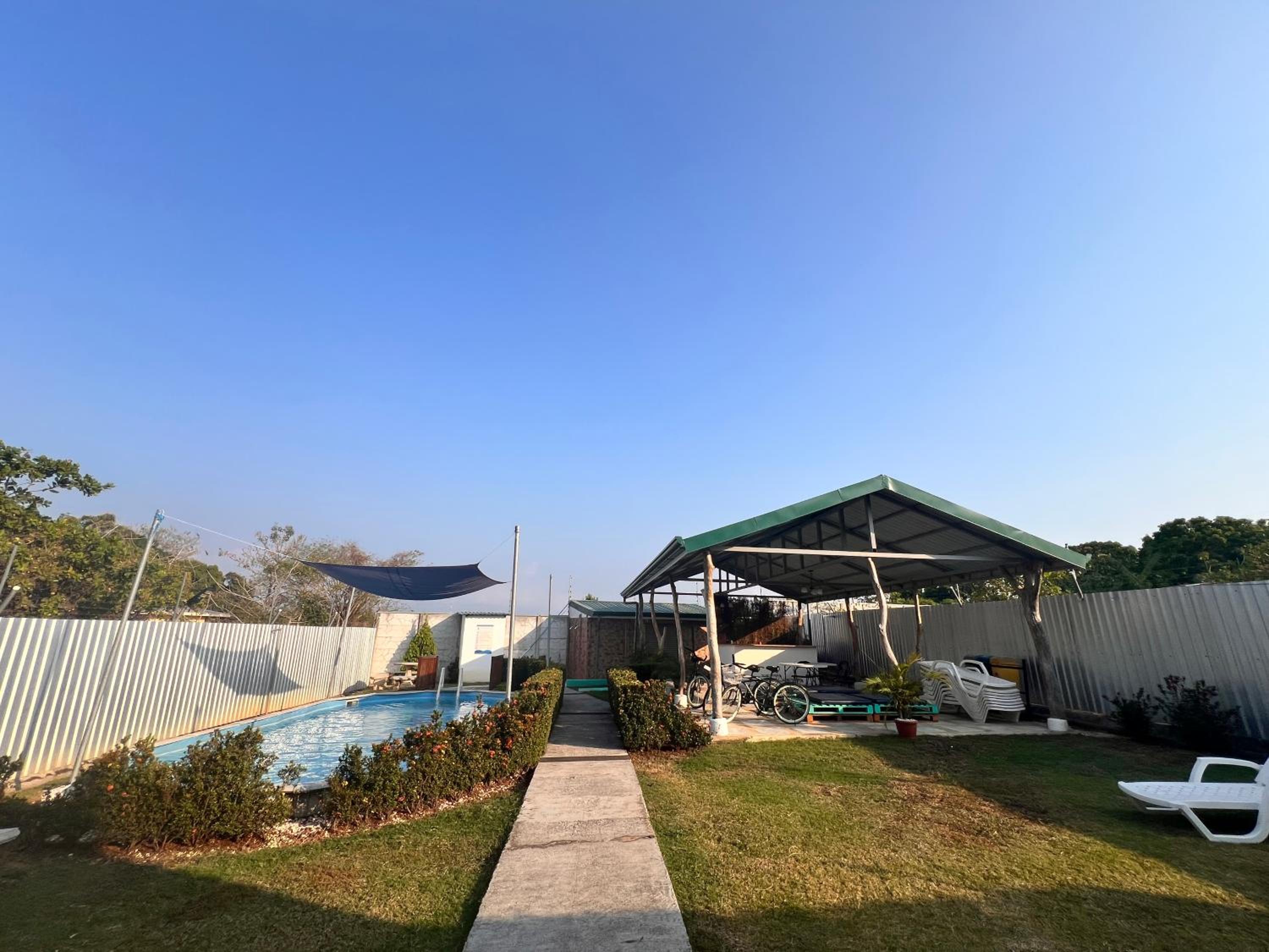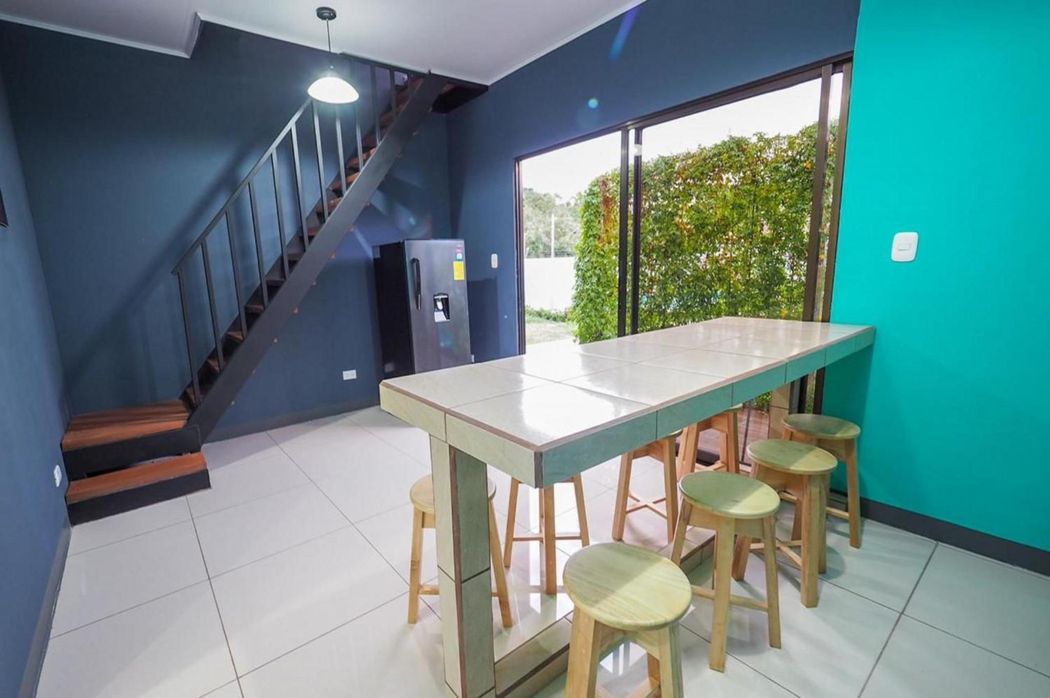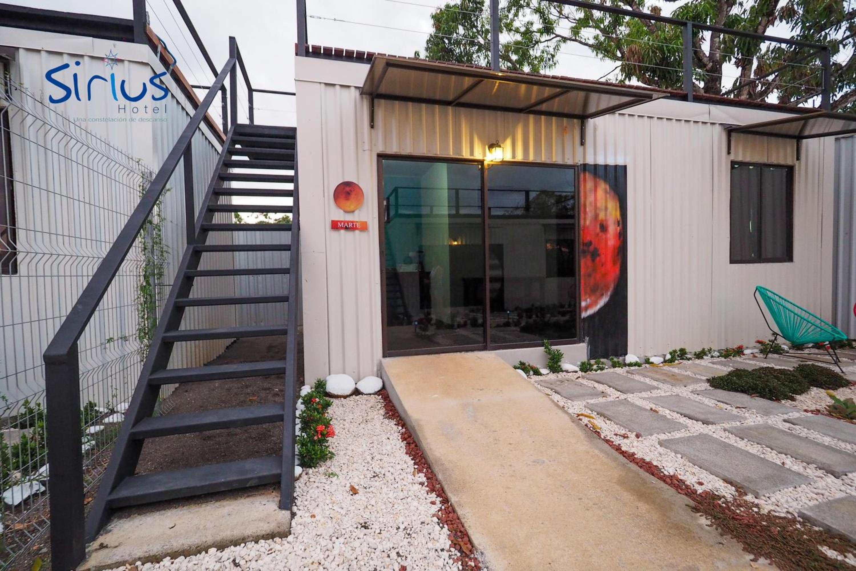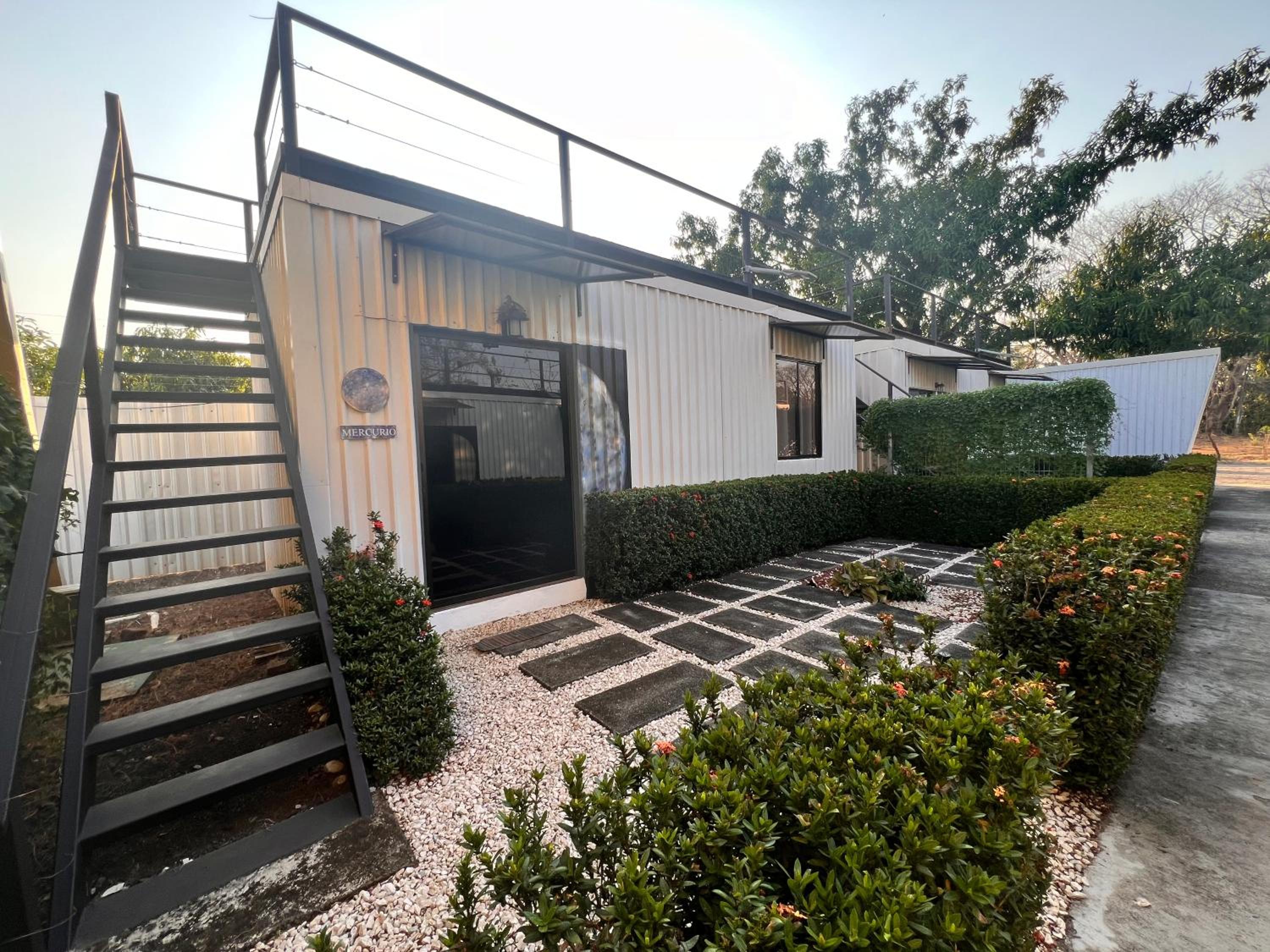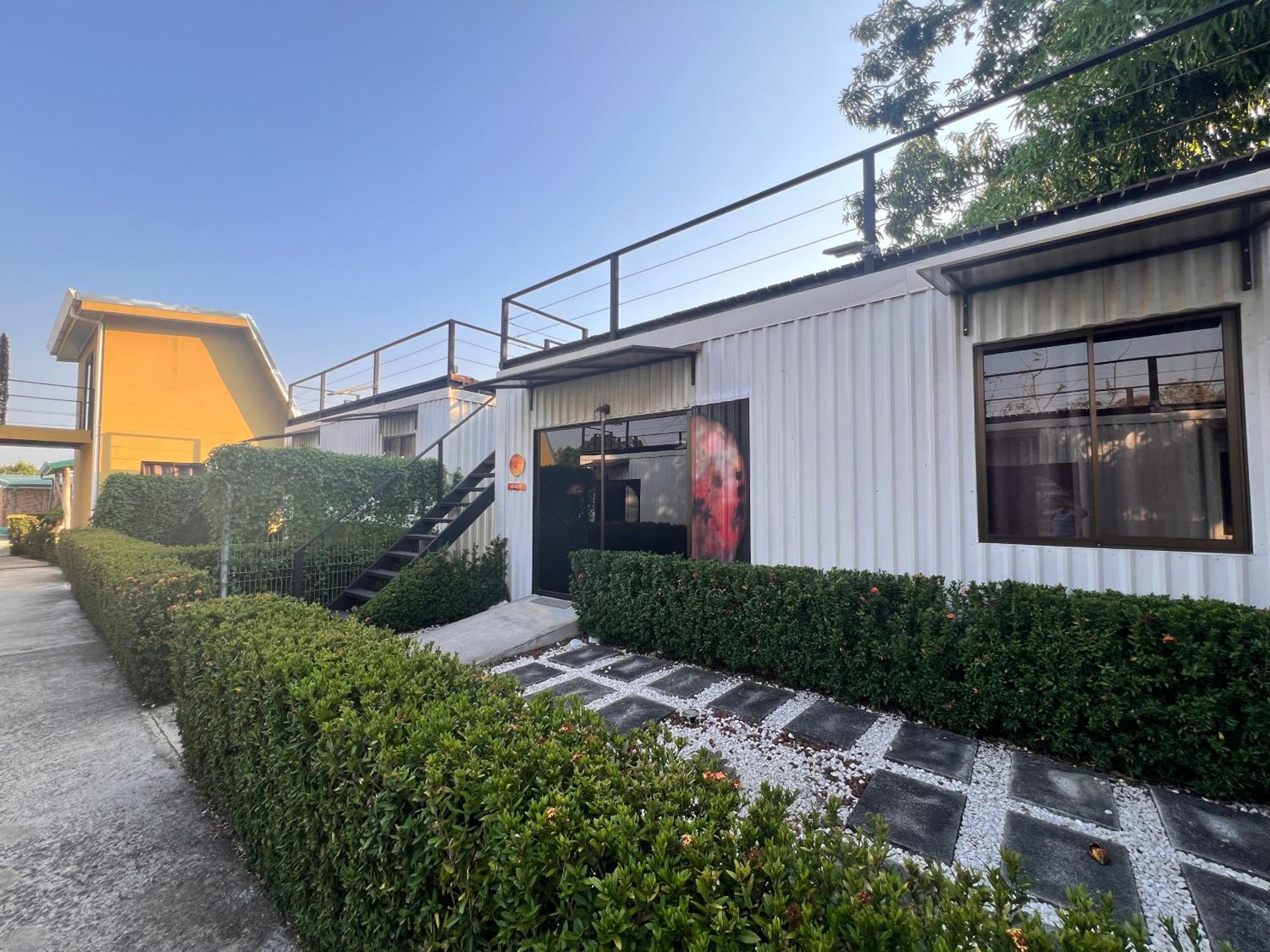 It feels like a prison. Giant metal walls enclose the small lot where the hotel is located There is electrified fencing and with barbed wire on top. Metal containers are stacked next to each other and on top of one another. There is no fresh air or views. The pool is prefabricated and cheap. The rooms are cramped with cheap furniture and modest installations. The model could be successful as a hostel, but for the price it is absurd. I would not recommend it unless they re evaluate their prices. Costa Rica offers incredible properties throughout the country, spending $235 for one night with no breakfast, coffee or other service is simply not worth it.
