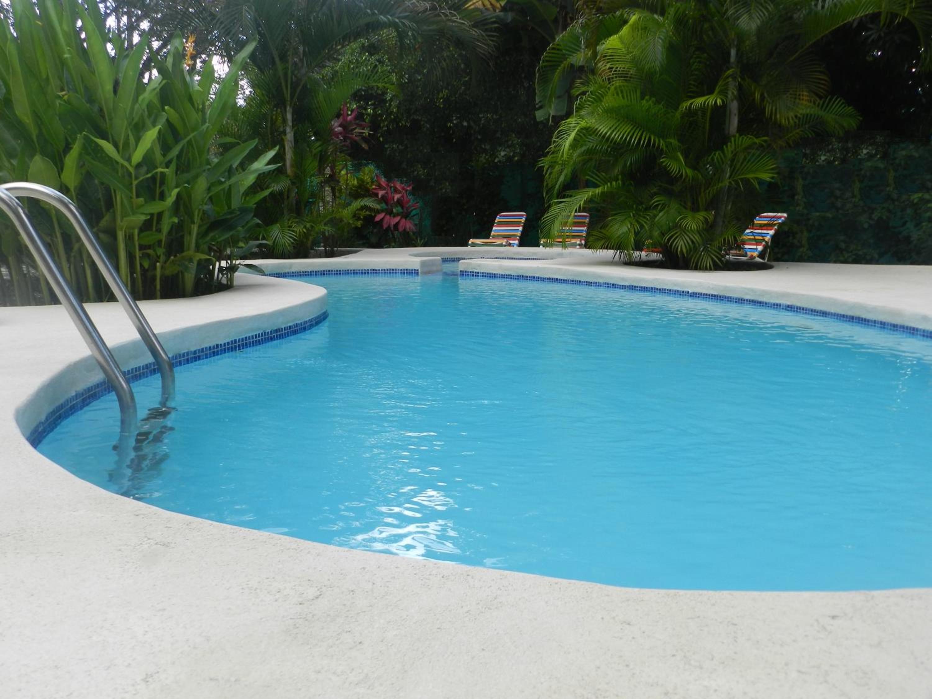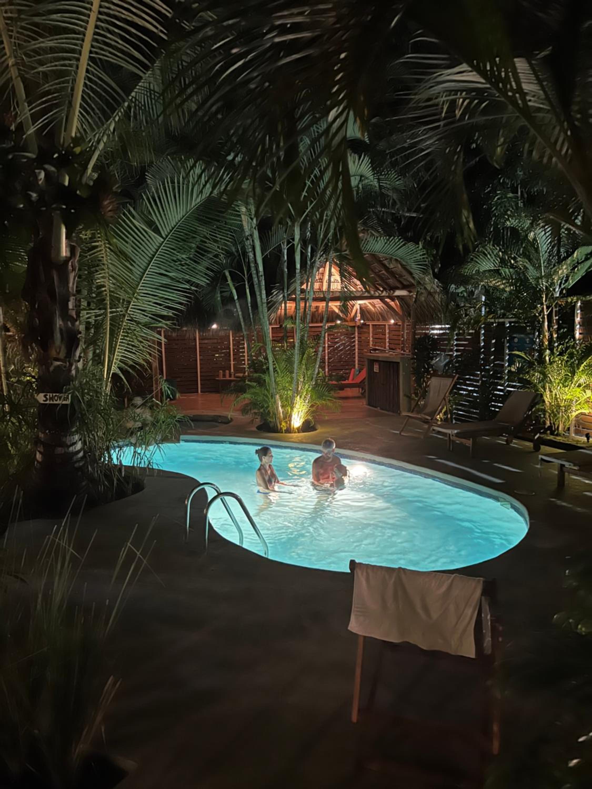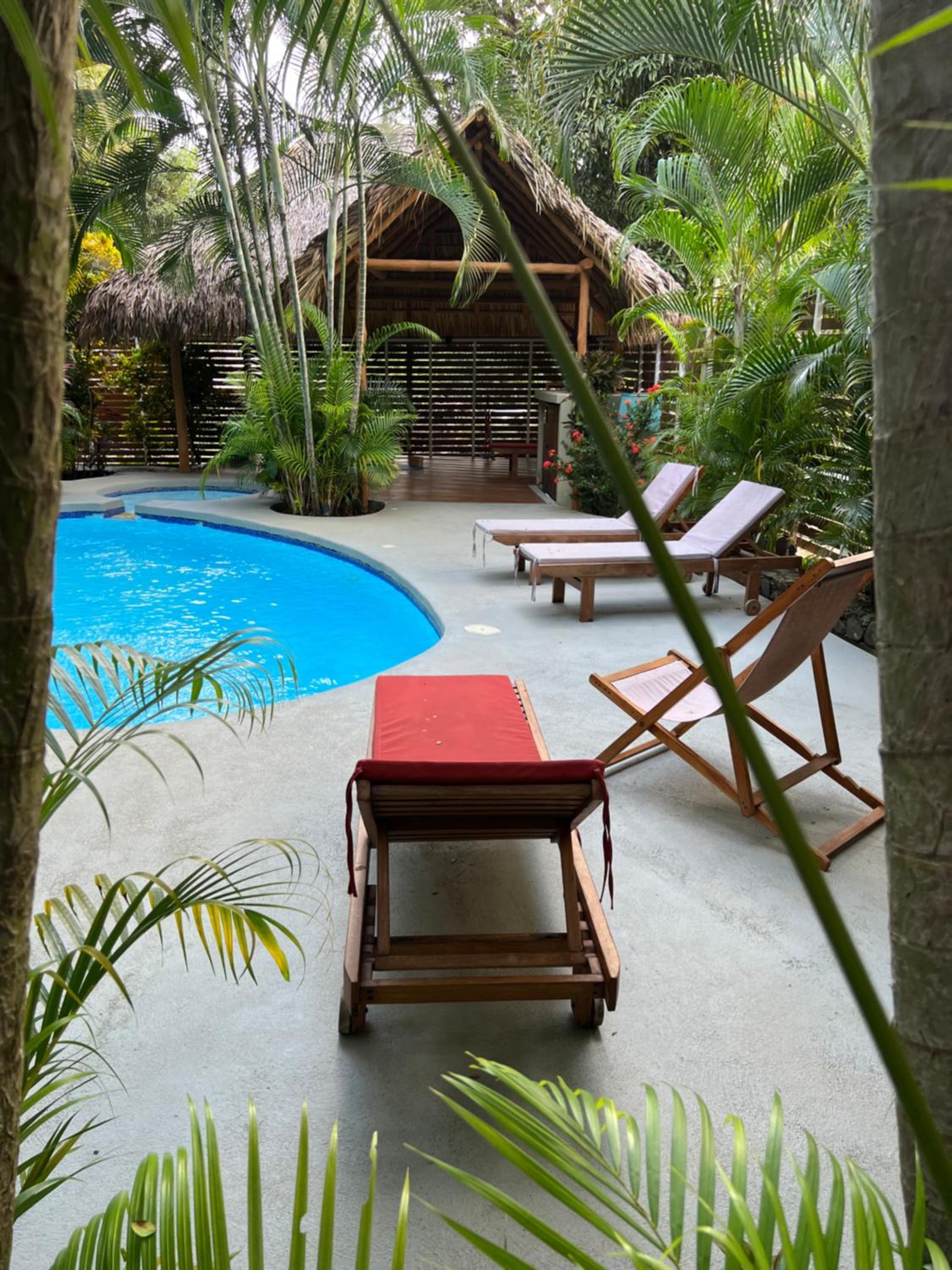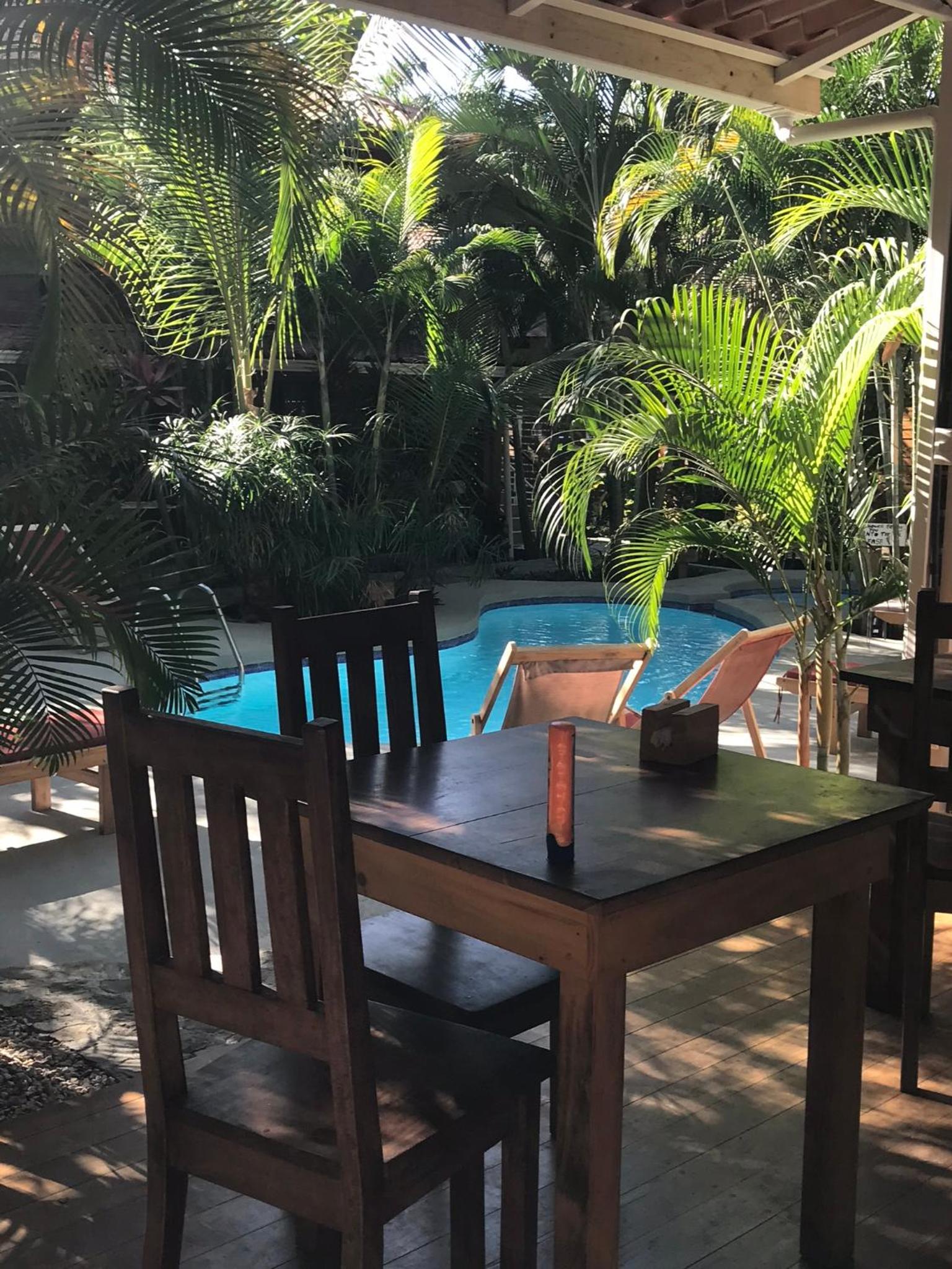 Het zwembad bood een zalige afkoeling bij het broeierige tropische weer.