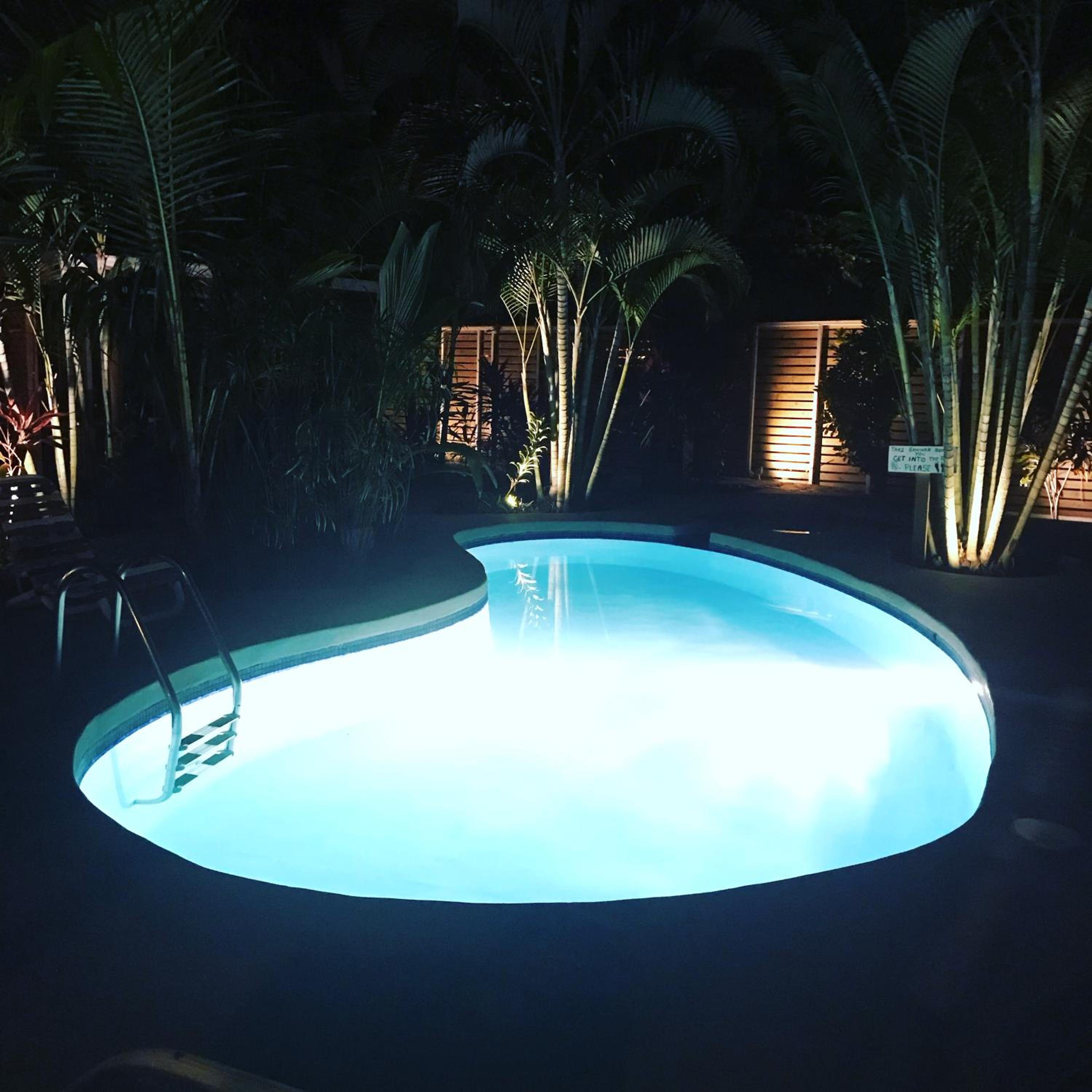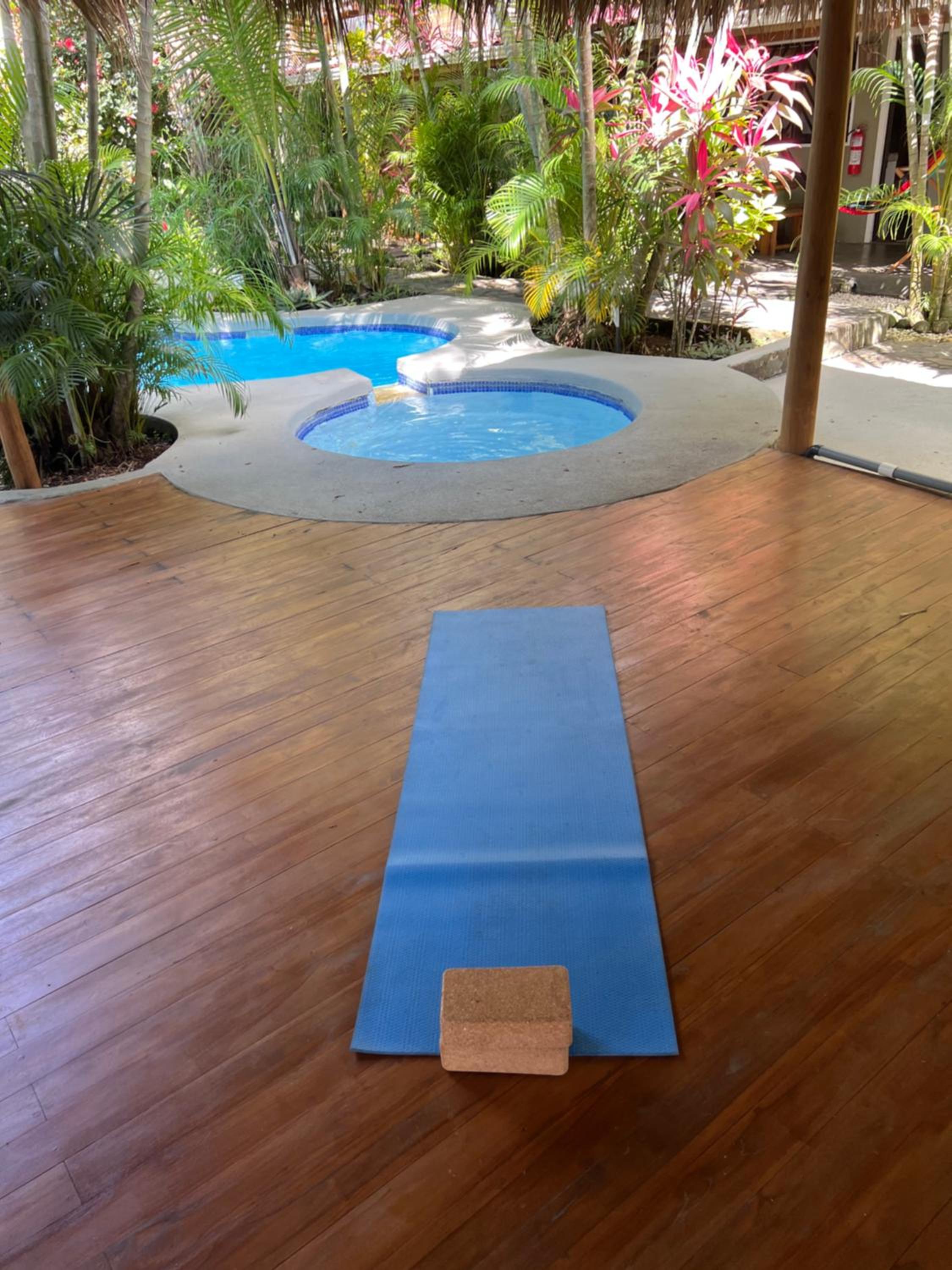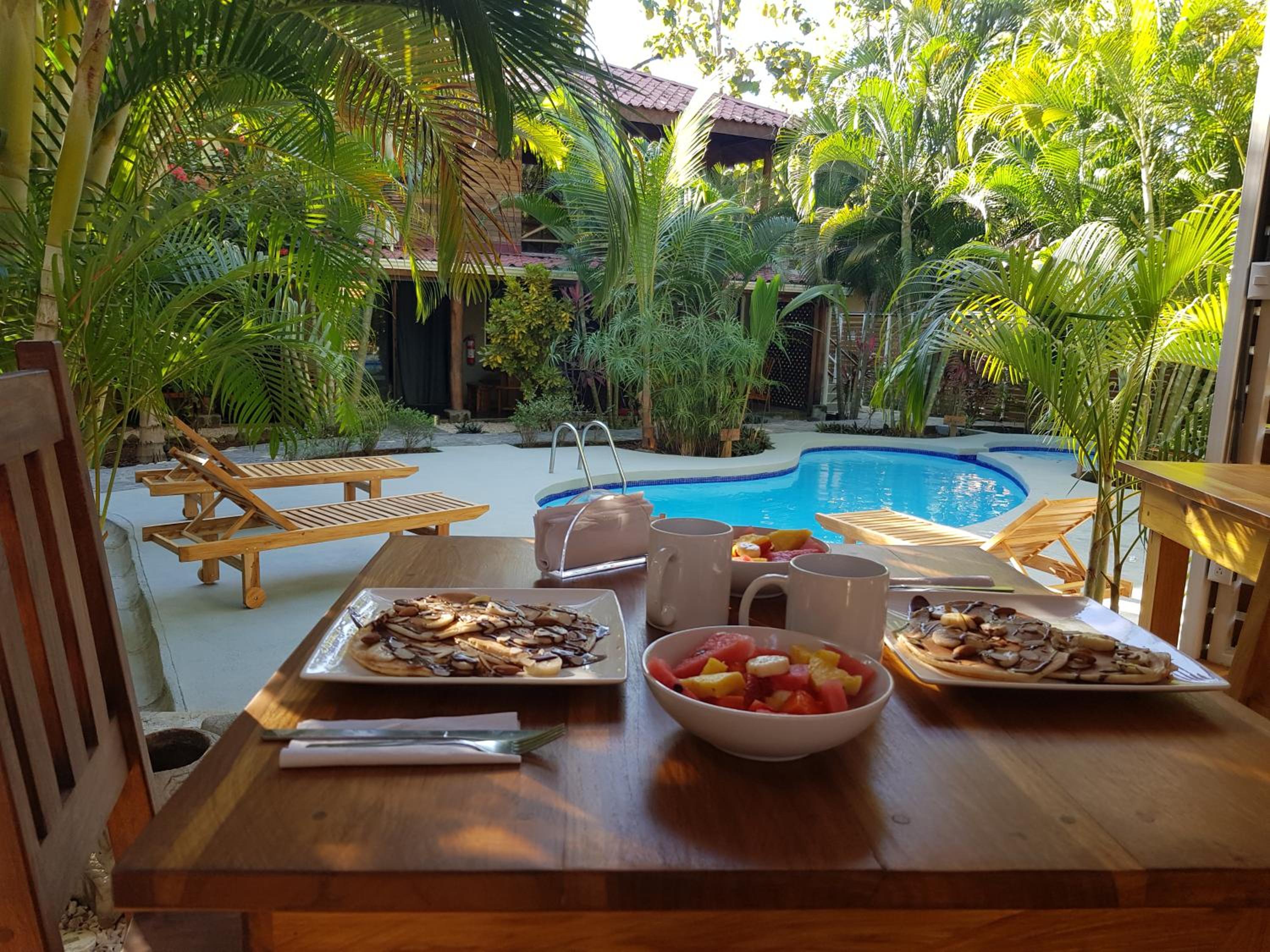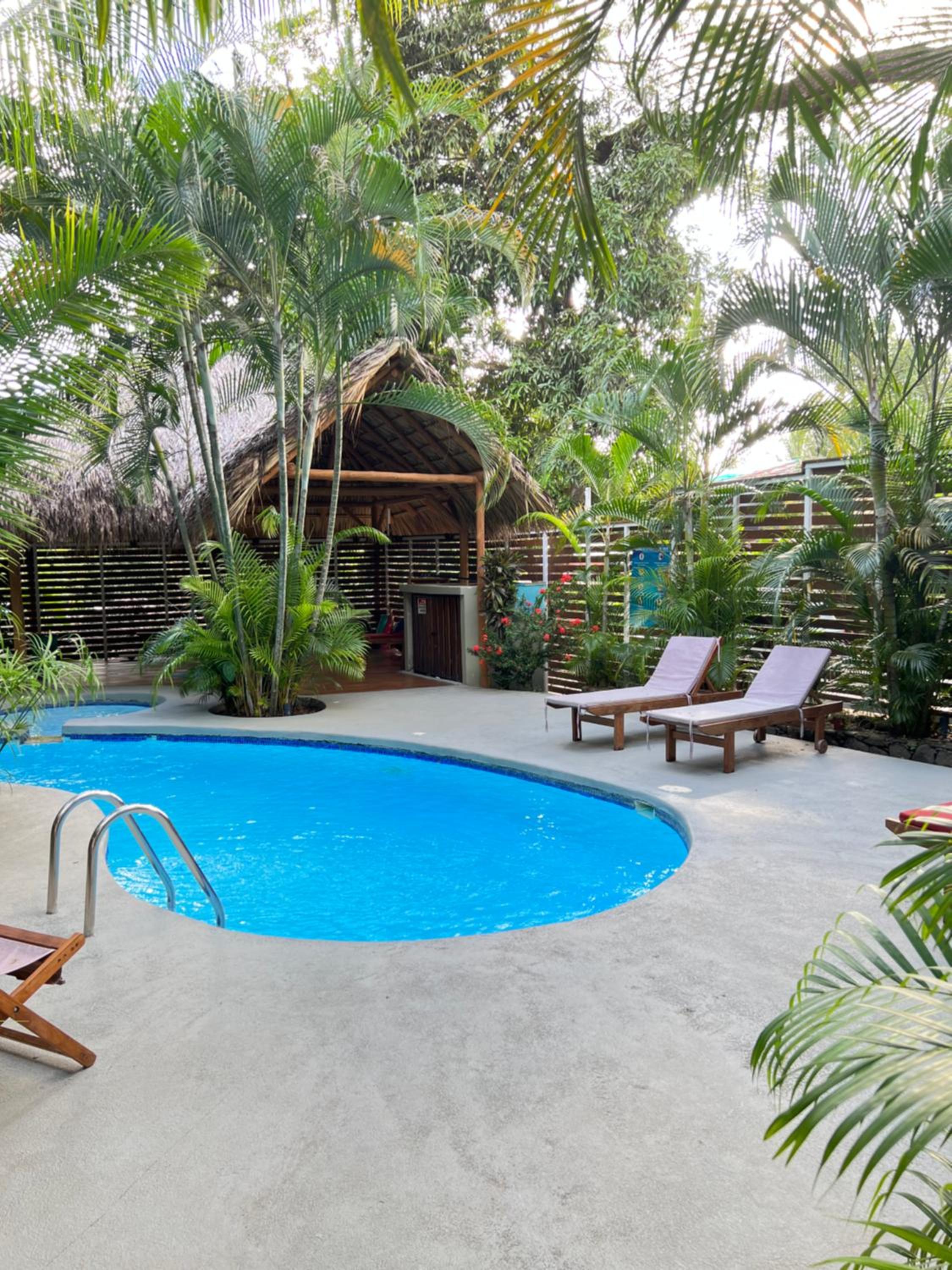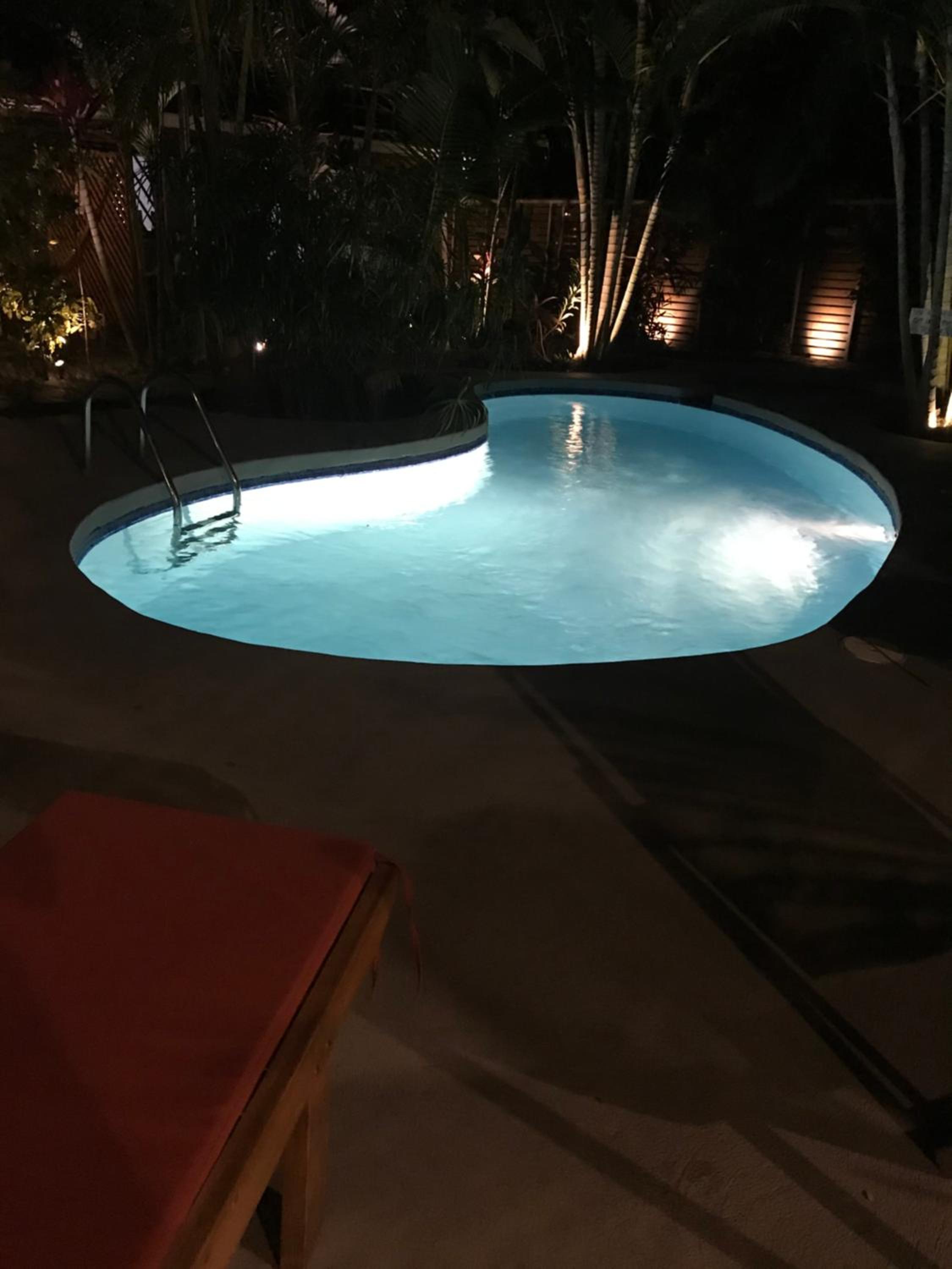 Het zwembad bood een zalige afkoeling bij het broeierige tropische weer.