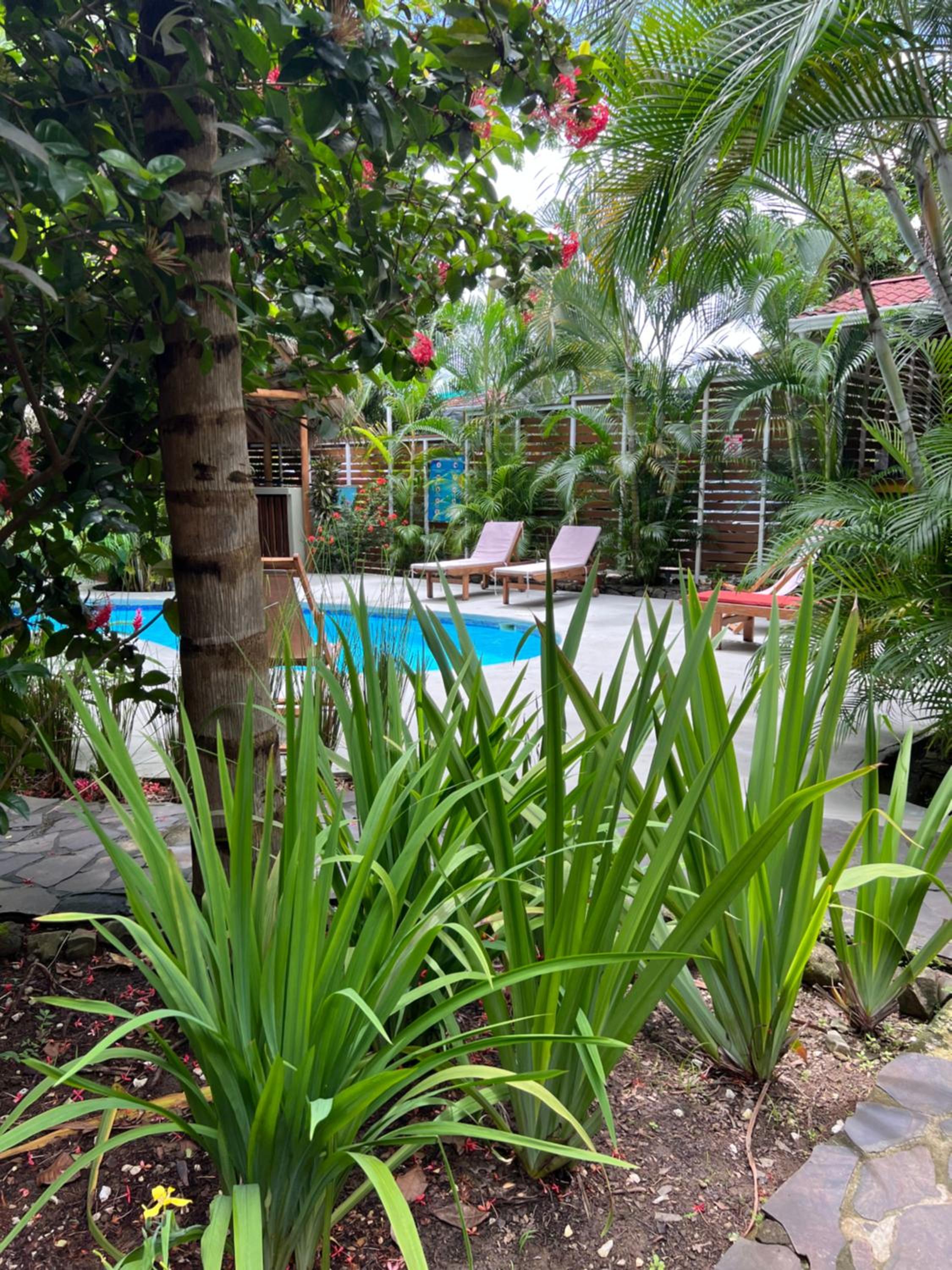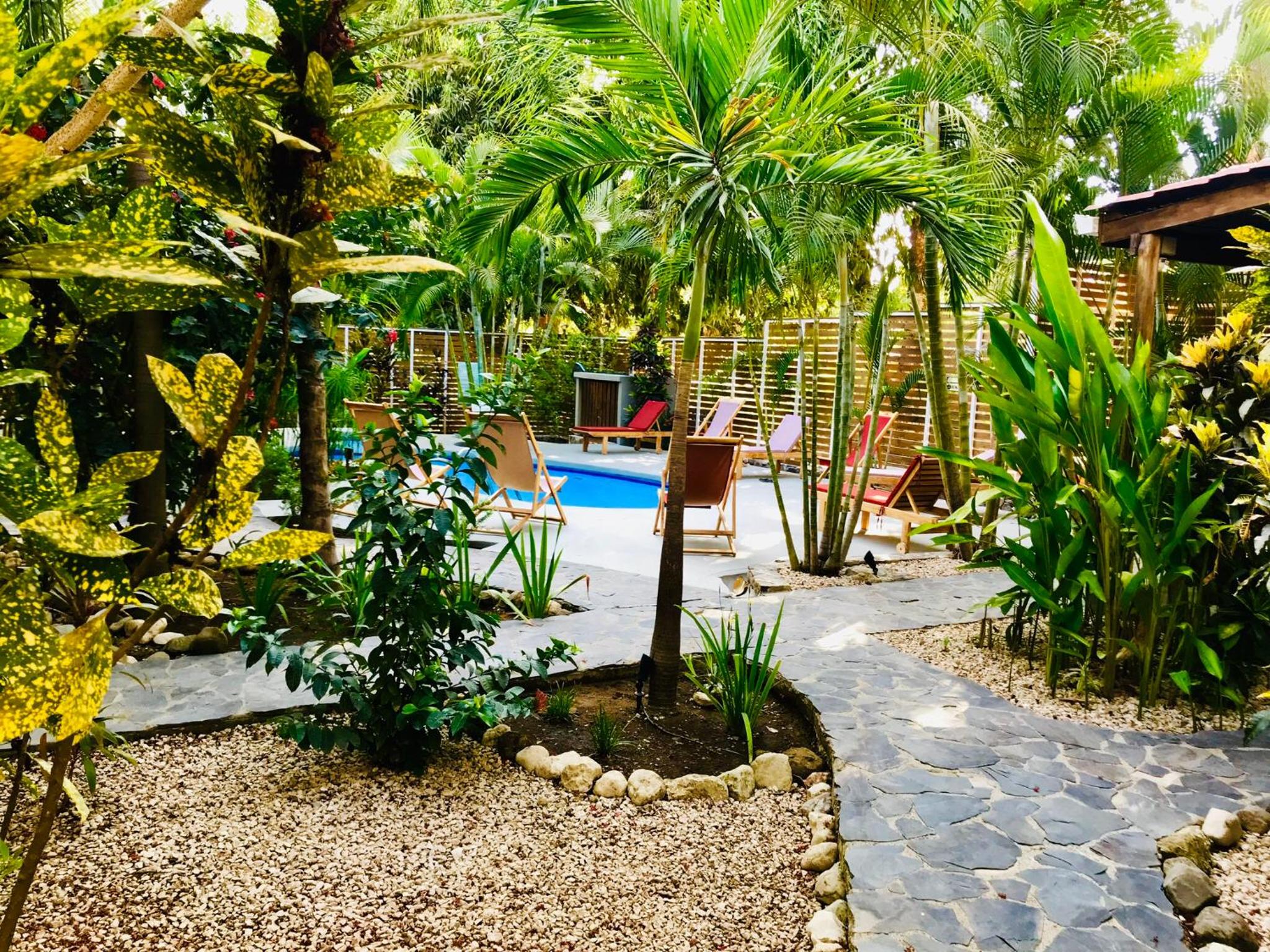 Ein wunderschöner Garten mit Pool unter Palmen, in einer ruhigen Seitenstraße. Kommen sehr gerne wieder.