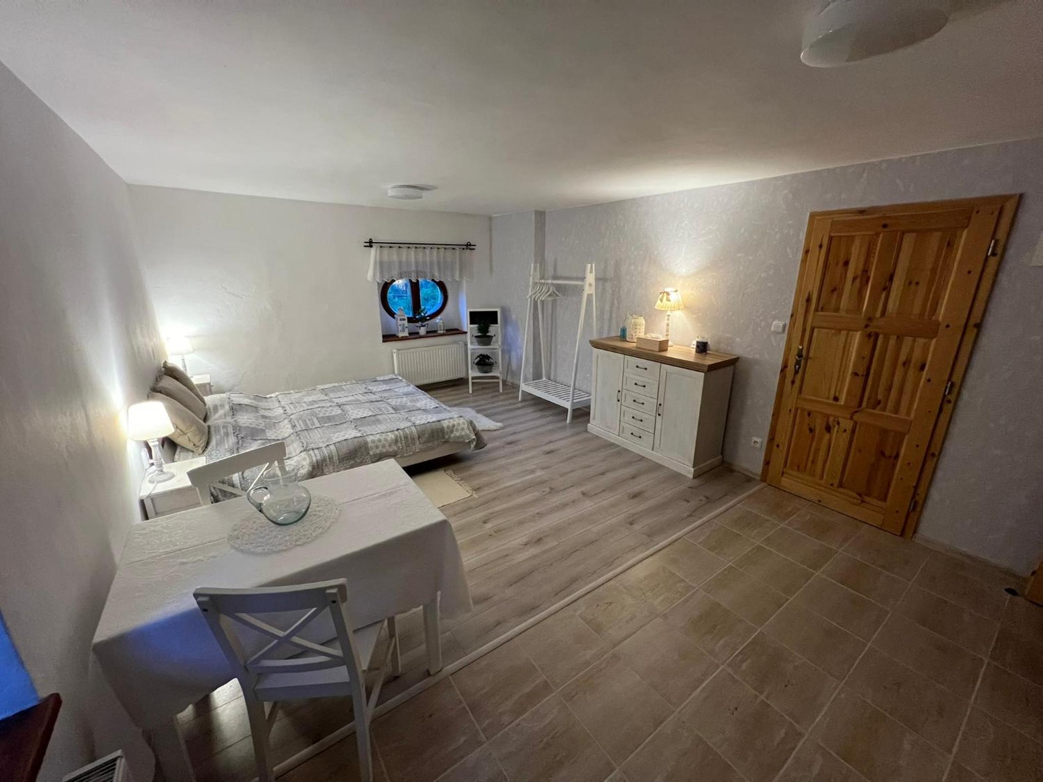 Nádhera! Byli jsme ubytovaní s manželkou a dvěma psy. Ubytování krásné,čisté a voňavé. Personál velmi ochotný a milý.Byli jsme opravdu nadšeni a rádi se tam opět někdy podíváme.