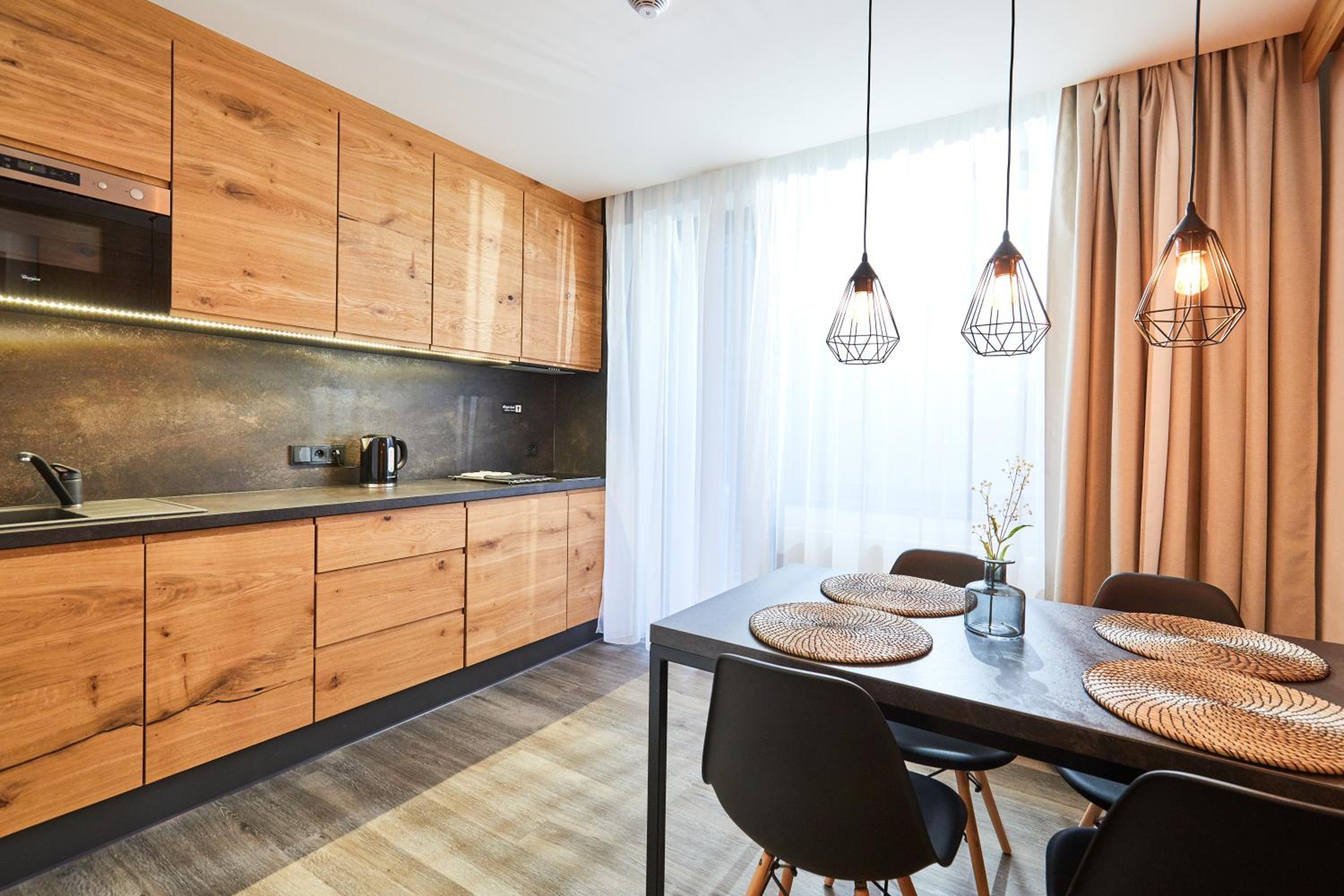 Krásný, nový resort plný dřeva a kvalitních materiálů.