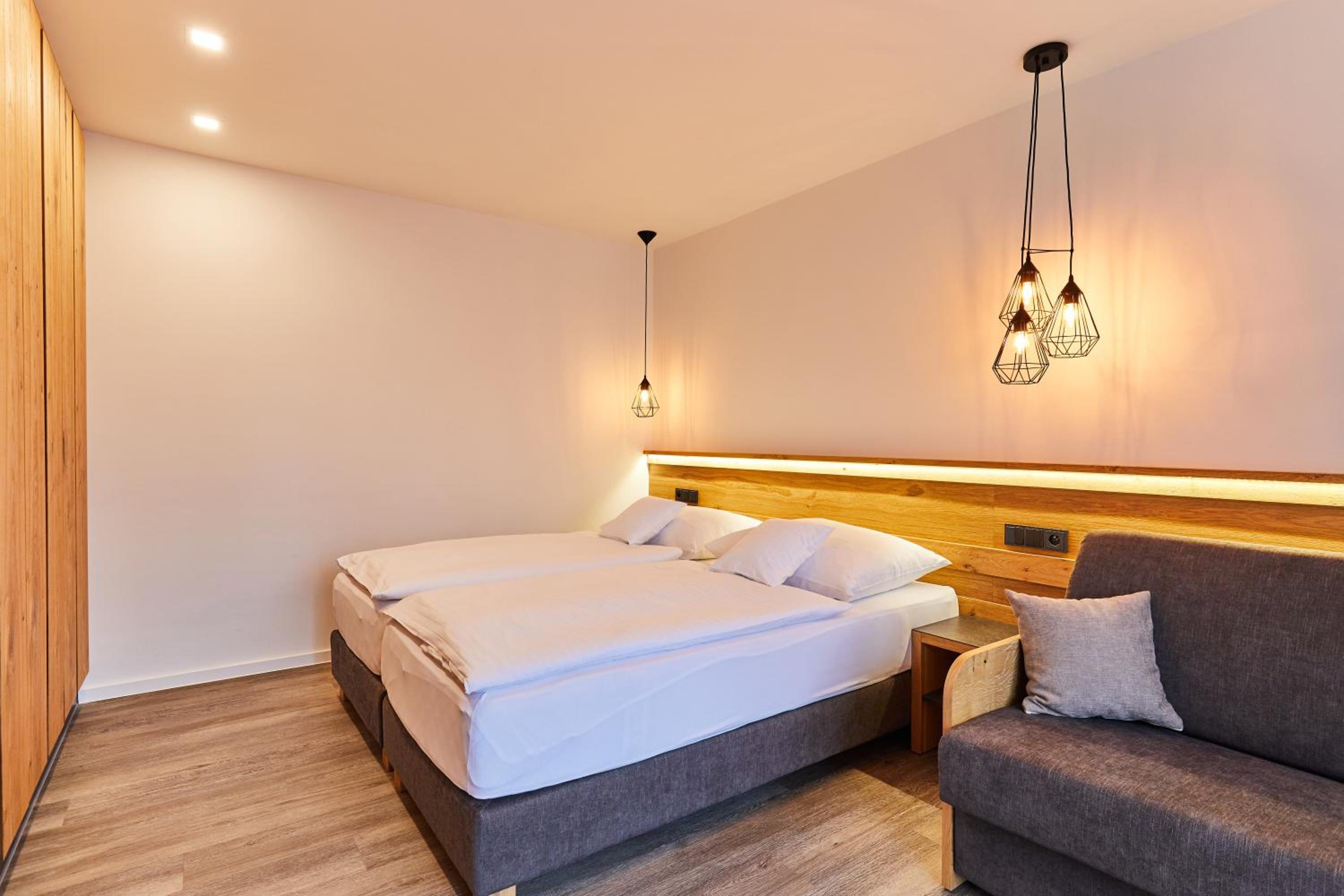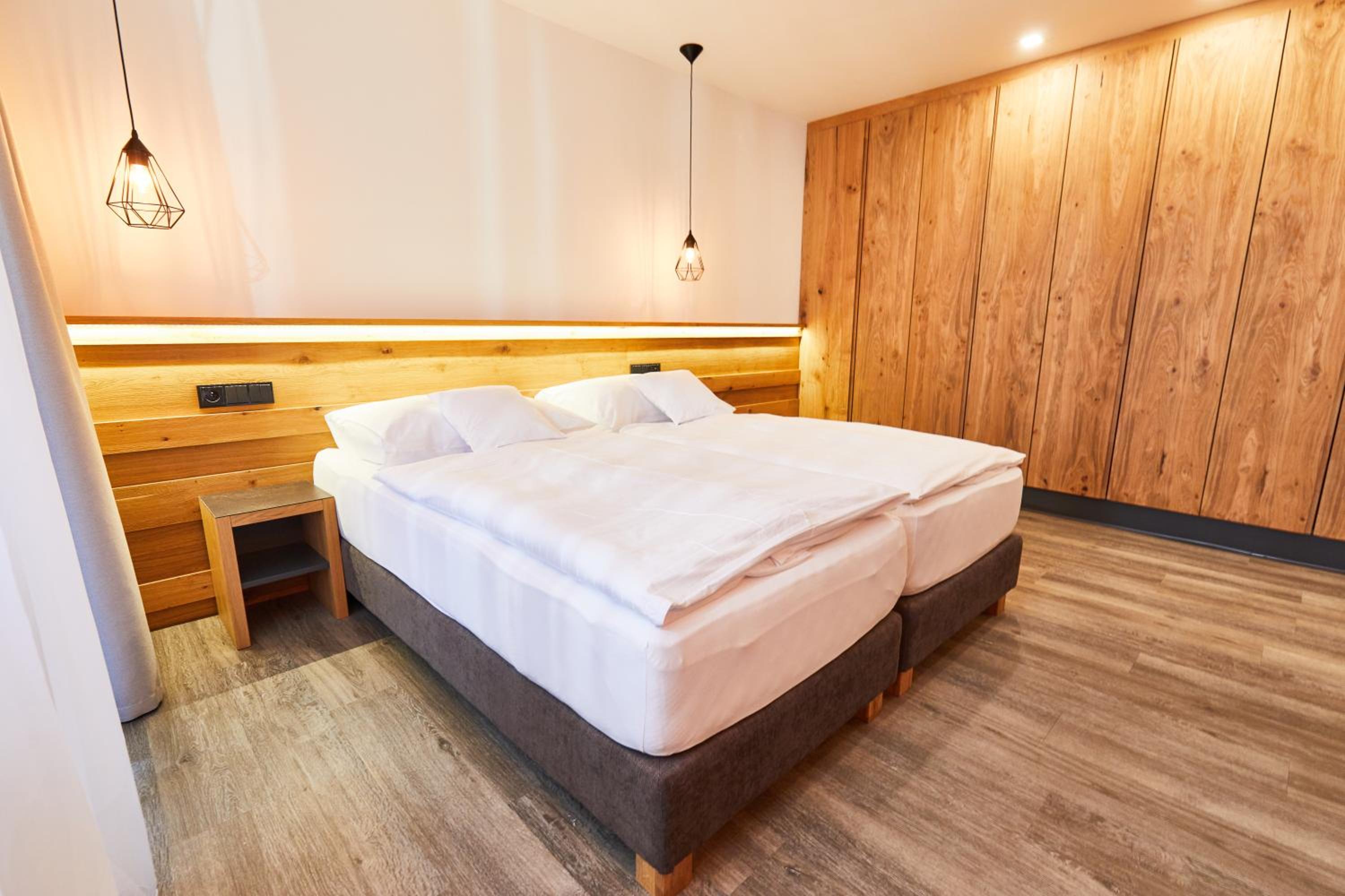 Pěkné a vkusné ubytování. Příjemné povlečení, vše čisté, dostatek místa ve skříních. Měli jsme pokoj pro 4 dospělé a místa sice nebylo moc, ale dalo se vejít. Pokoj byl s dvojlůžkem a rozloženým dvojlůžkem, lepší asi pro 2 dospělé a 2 děti.