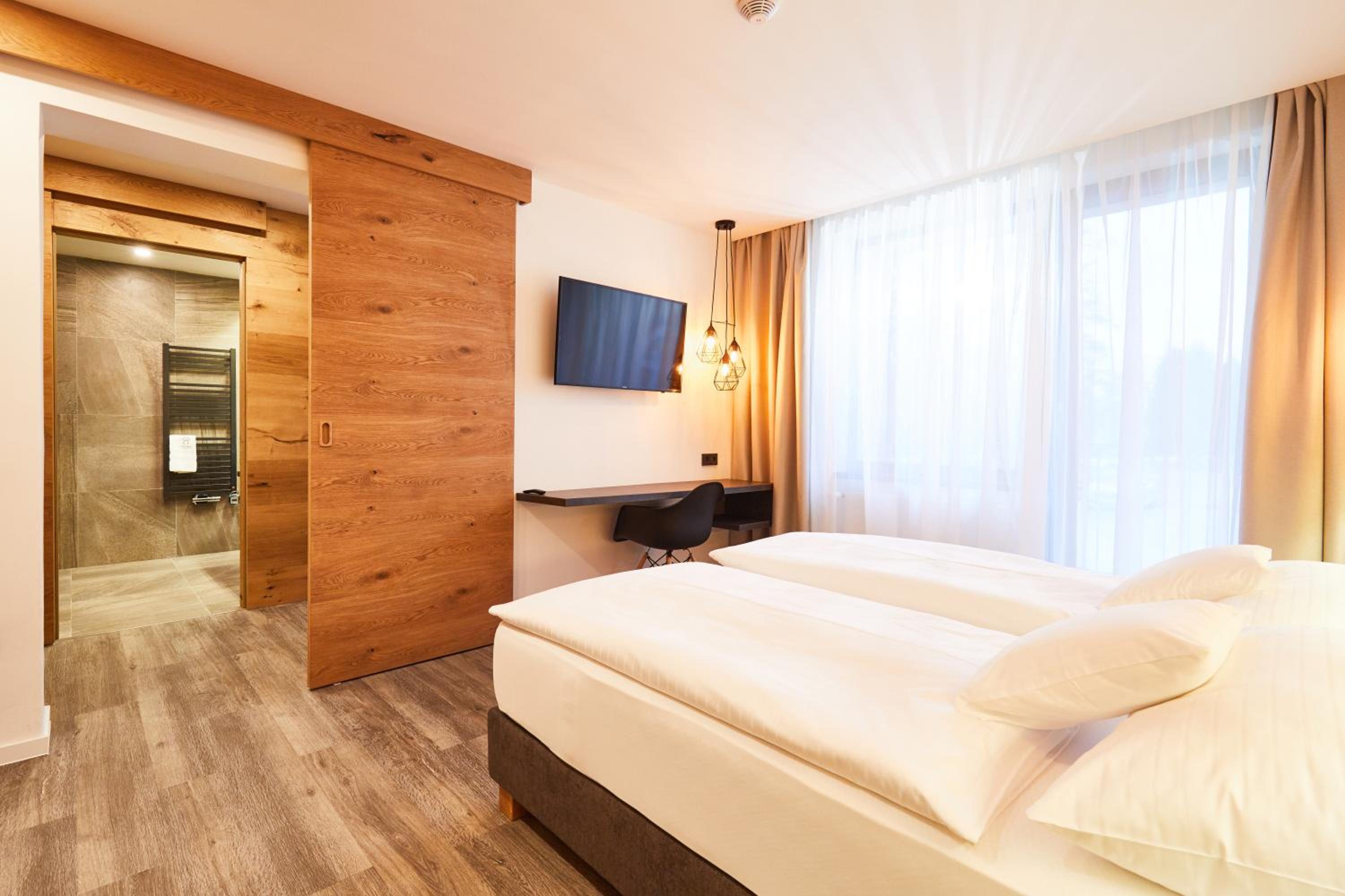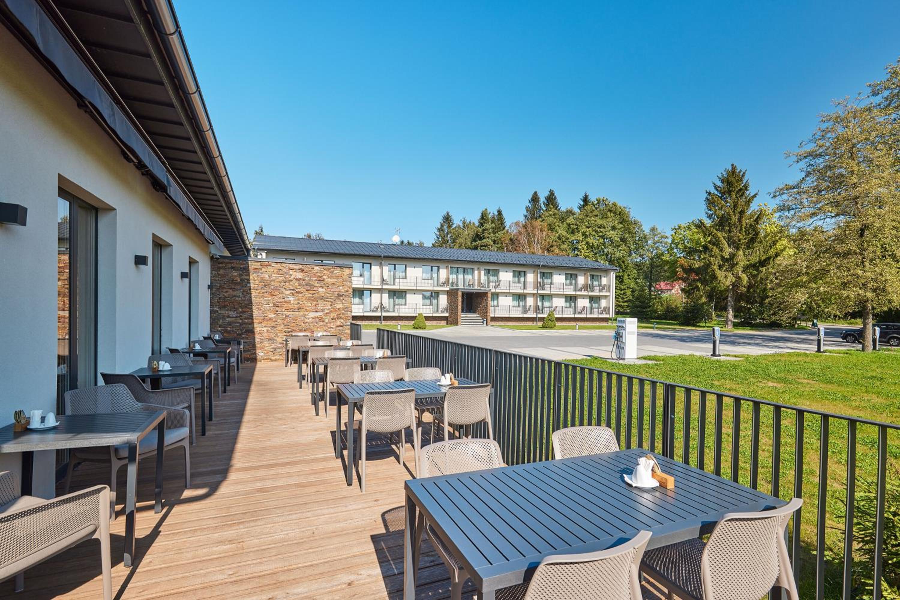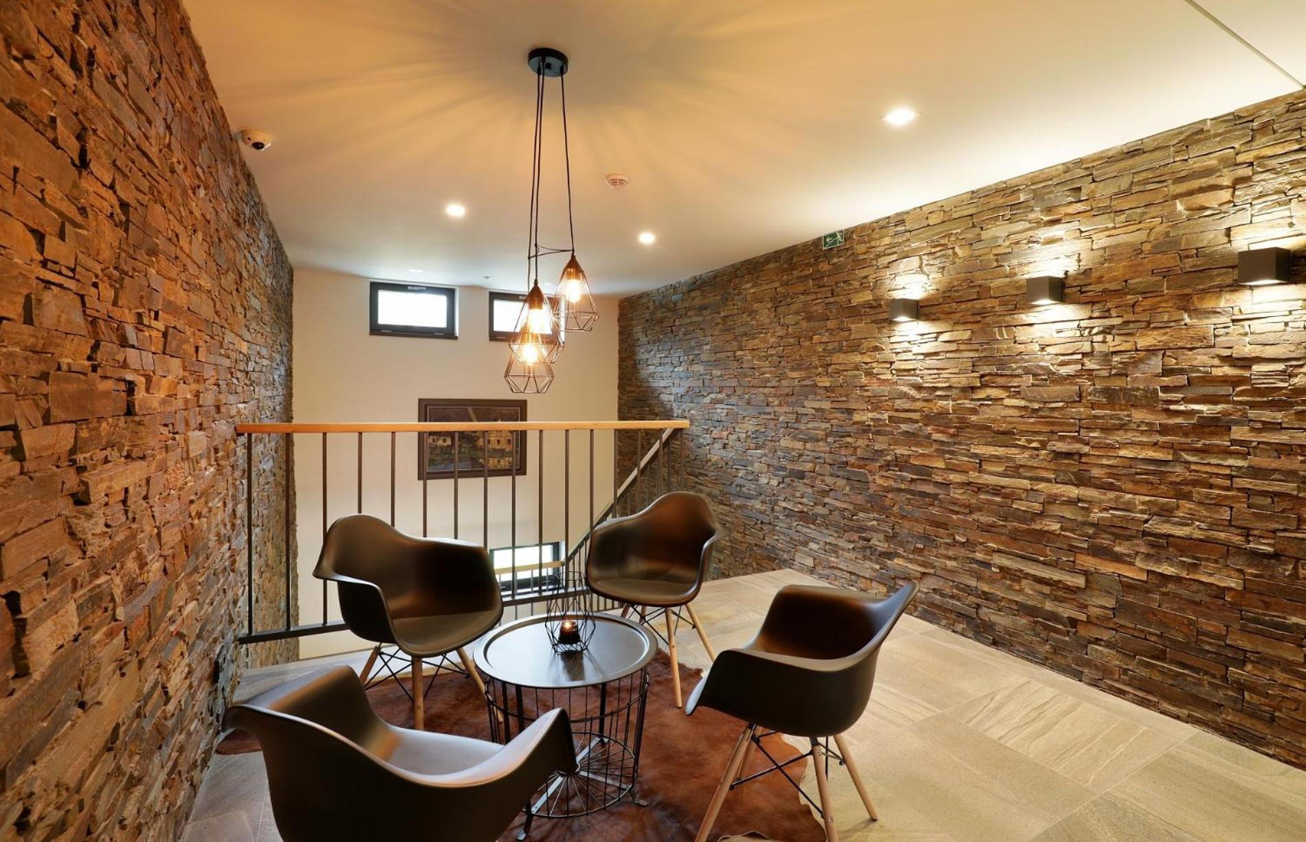 Pokoje krásné a moderní. Vše stylové a voňavé. Personál vstřícný, komunikativní. Okolí super, byli jsme v zimě, užili jsme si procházku do městečka i koulování a bobování. Restaurace pěkná s příjemným personálem, jídlo chutné, místní, sezónní. Snídaně OK.
