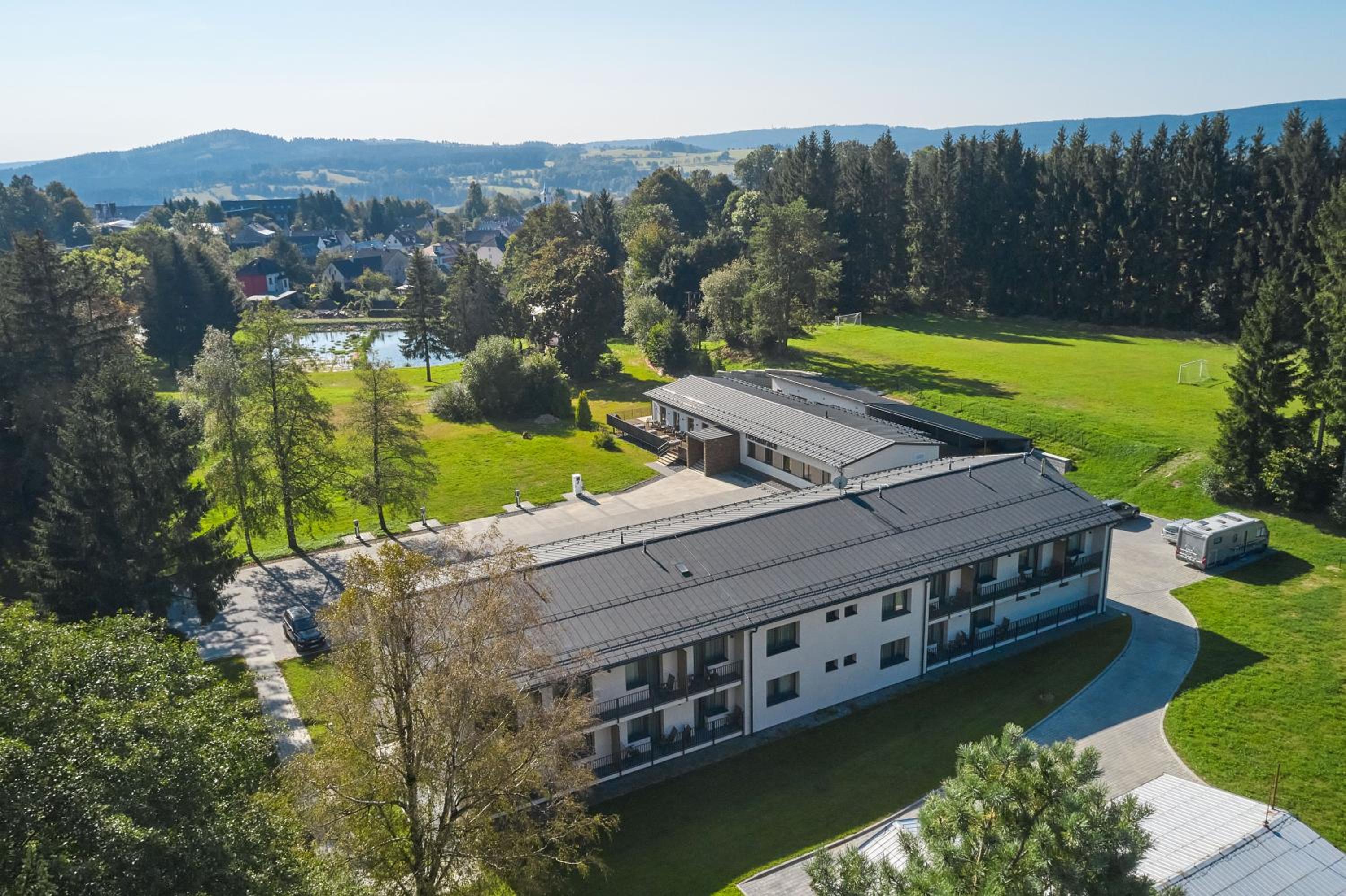 Located just 36 km from Litomyšl Castle, Resort Sněžné AMANITA offers a luxurious stay in Sněžné. The property features a terrace, a bar, and room service, providing guests with top-notch service. Amenities Galore Guests can enjoy a fully equipped kitchen, balcony with garden views, and flat-screen TV. The aparthotel also offers a modern restaurant serving delectable Italian cuisine. Fun for Everyone With a children's playground, cycling options, and an indoor play area, there's something for guests of all ages. Don't miss the chance to relax in the garden or explore nearby attractions. Book your stay at Resort Sněžné AMANITA for an unforgettable experience.