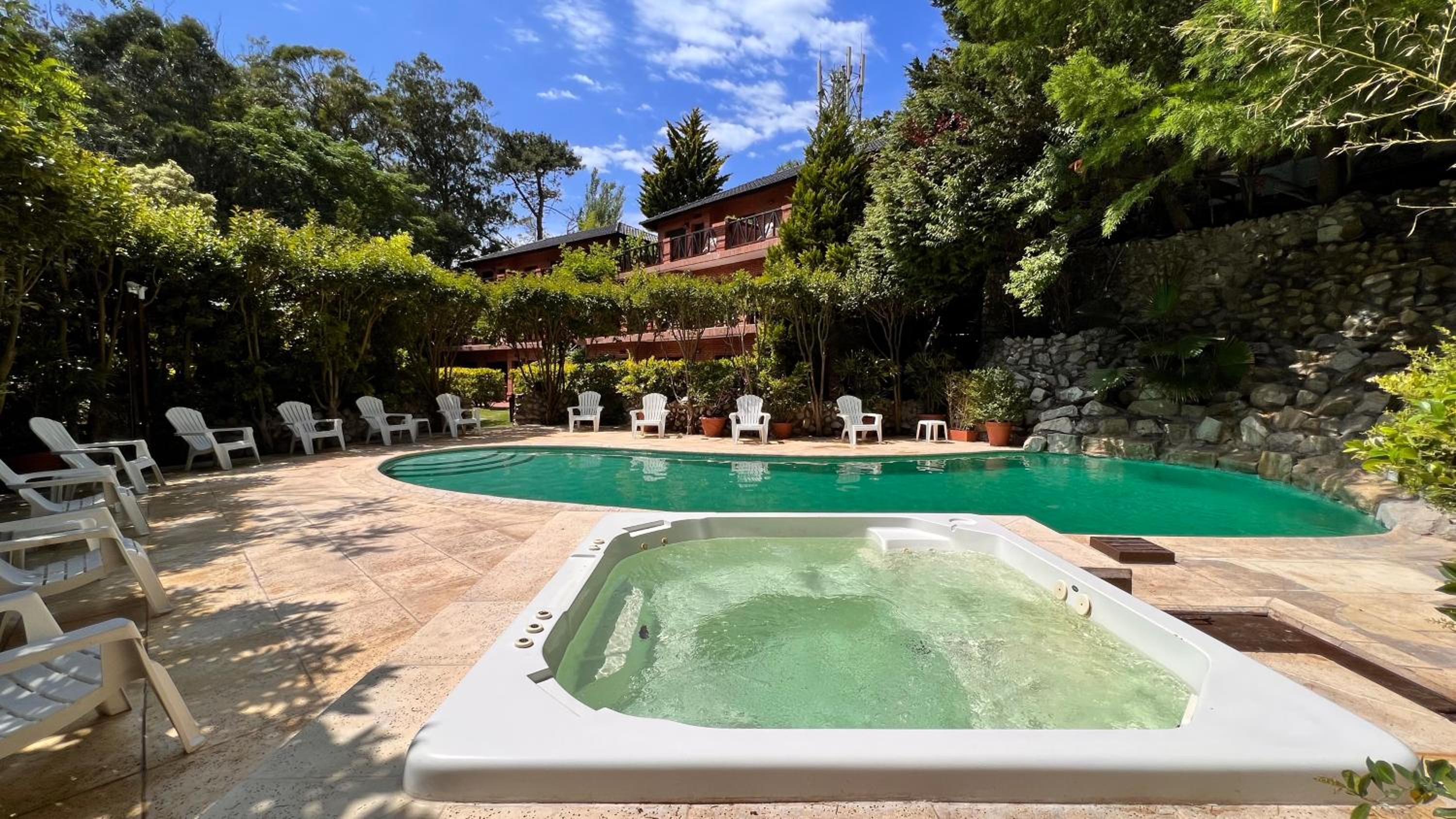 Unwind in our swimming pool, hydromassage tub, or garden. Keep the little ones entertained at the children's playground or game room.