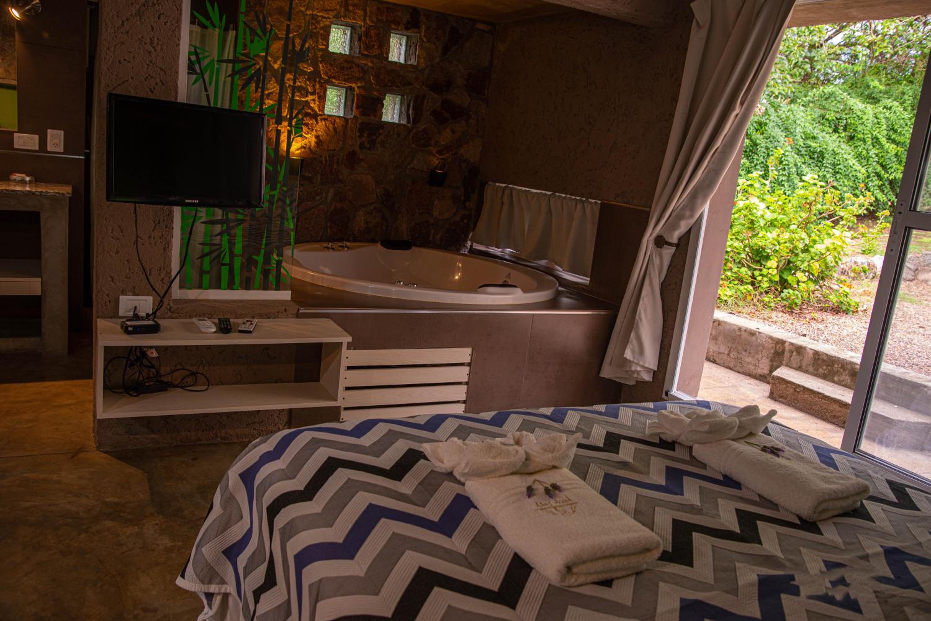 Experience a stay like no other at Pueblo Santo, Cabañas & Suites where each uniquely themed apartment offers stunning mountain views, fully equipped kitchens, and modern amenities like spa baths and flat-screen TVs.