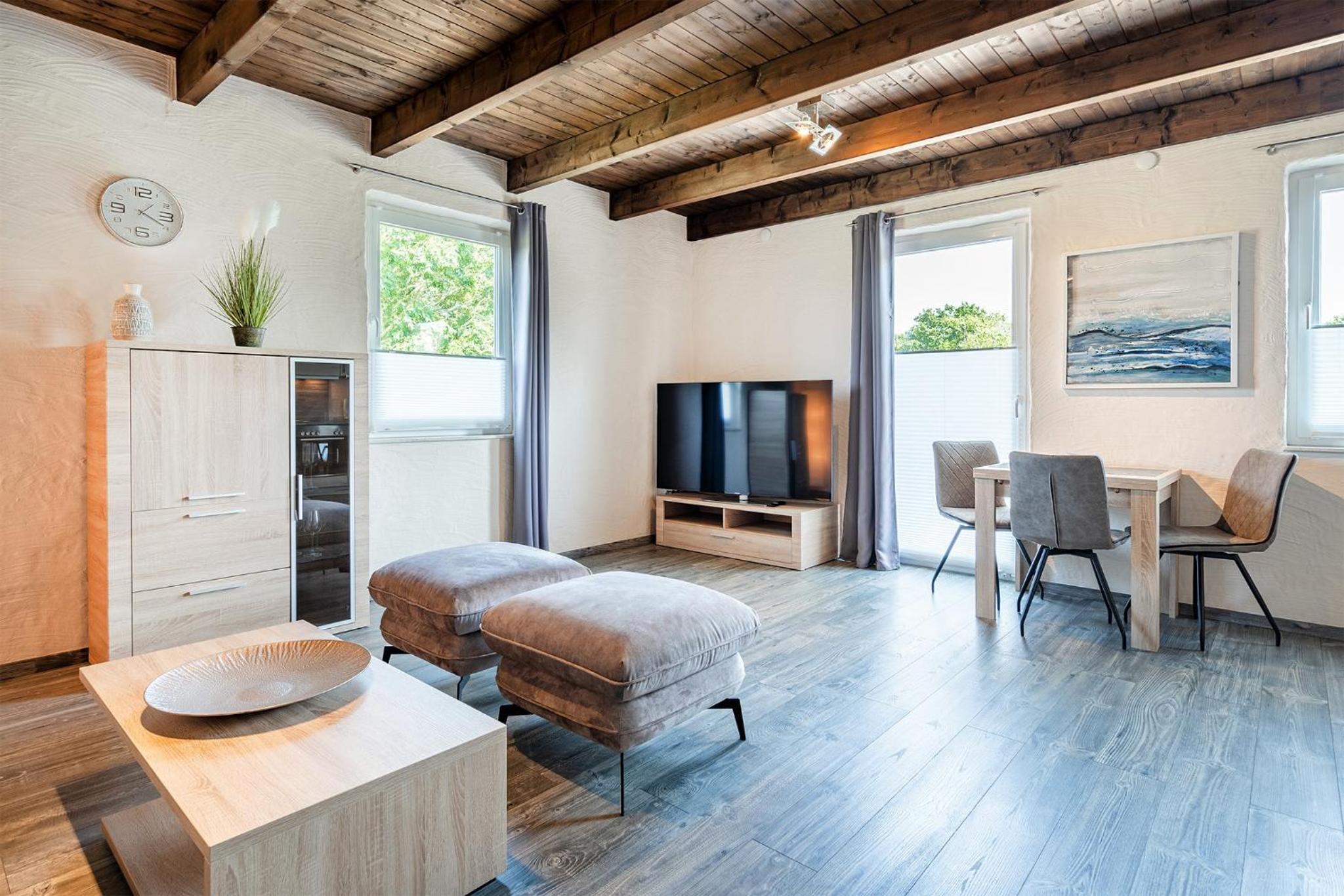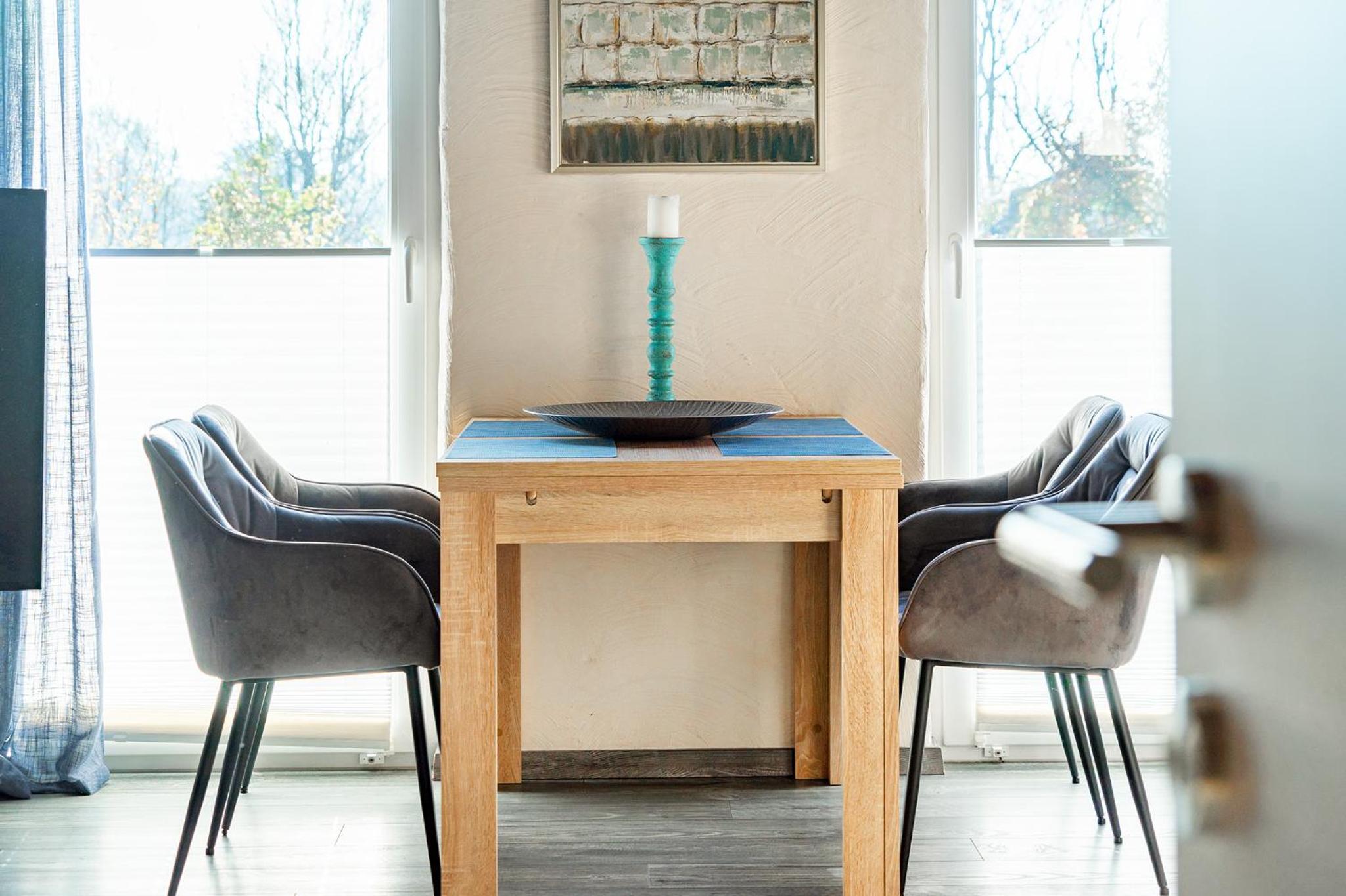 Eine sehr, sehr schöne Wohnung. Auch die Lage ist toll. Im Sommer erreicht man den Badesee in 10 Minuten zu Fuß. Drei Minuten entfernt ist die Bushaltestelle, in 15 Minuten ist man in Aurich.