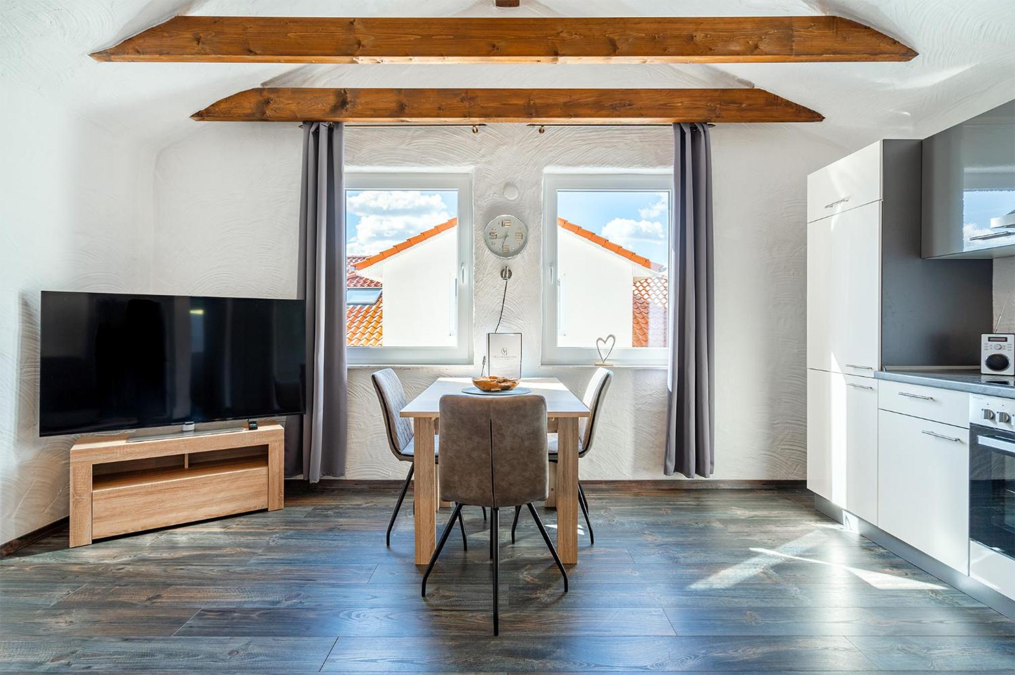 Es ist eine sehr schöne große Wohnung die richtige schön eingerichtet ist, es ist sehr gemütlich, und auch die Lage ist sehr schön und ruhig. Werden auf jeden Fall nochmals eine Wohnung buchen. Kann ich nur empfehlen.