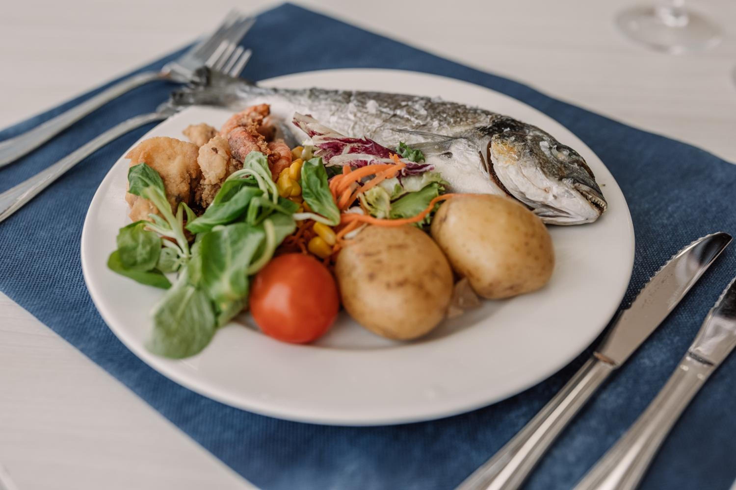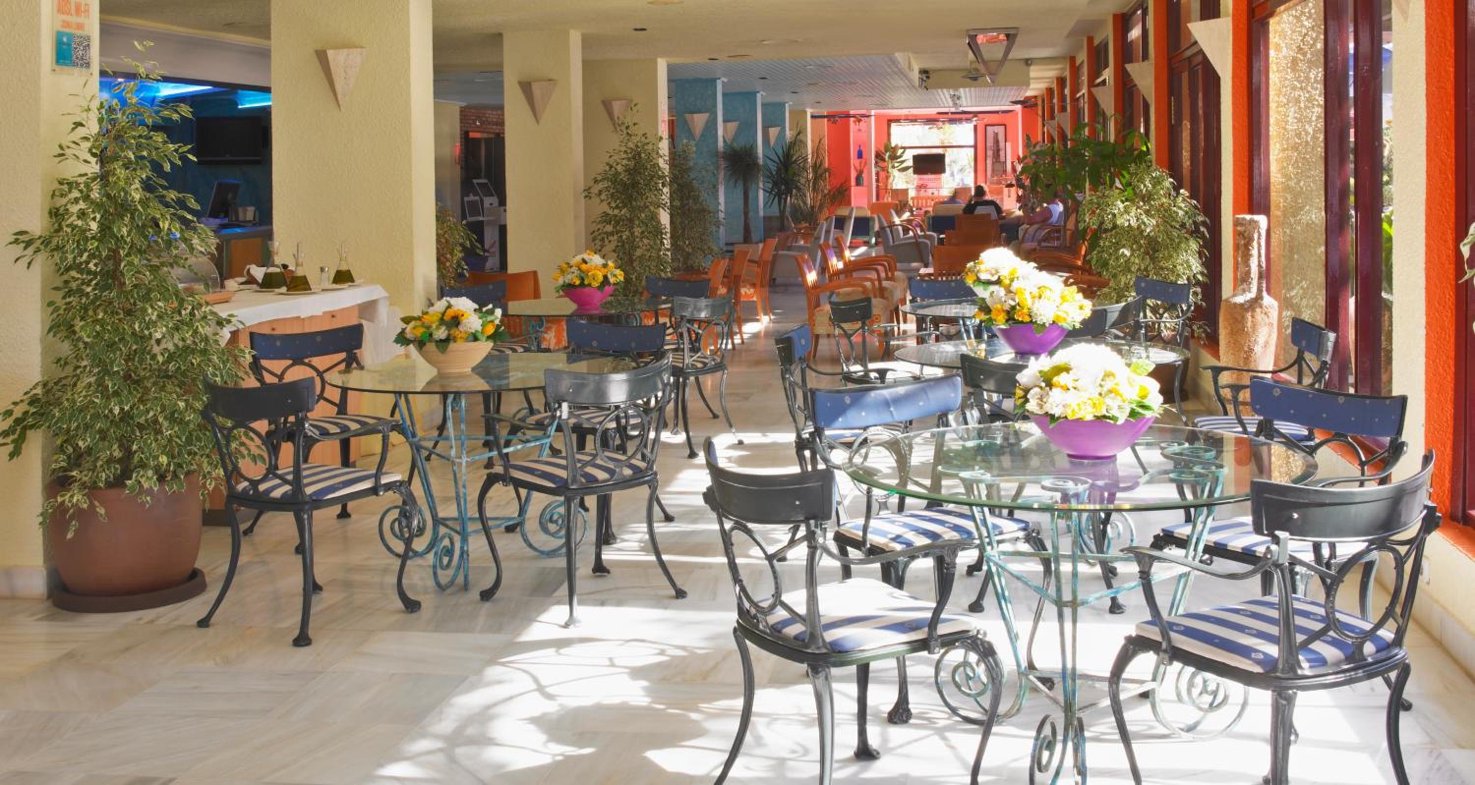 Indulge in fresh Mediterranean dishes at the hotel's buffet restaurants, one of which boasts a terrace overlooking the sea. Guests can also enjoy a variety of entertainment options including shows, live music, and activities organized by the hotel.