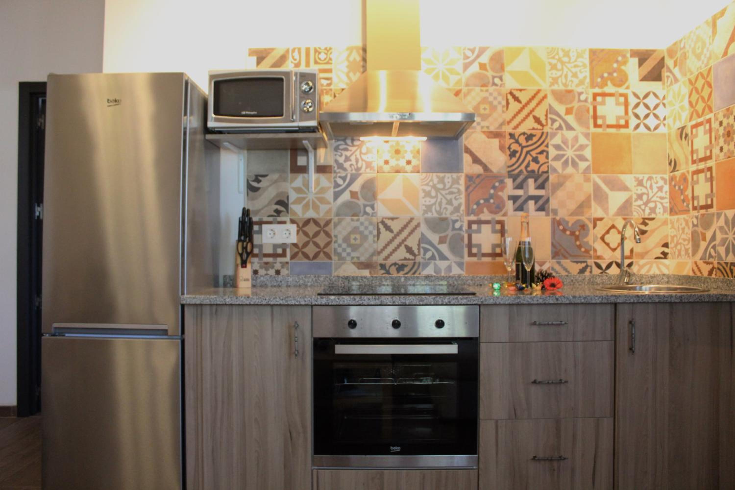 the main reason chose this property was because it has a washing machine and we are travelling around for a number of weeks. However the washing machine is a communal one between all the properties so potentially could be a problem if everyone needs to use . Luckily not all of the apartments were occupied so there were no issues. Next door there is a dog and whilst he is a lovely dog he does bark quite a lot which we find very annoying.. the shower is not very good either as you have to remove from its holder on the wall because other wise you will not get wet. water was not always hot ,just Luke warm. Also water in the bathroom sink does not run away quickly and we think there was a blockage. An information pack would be helpful.