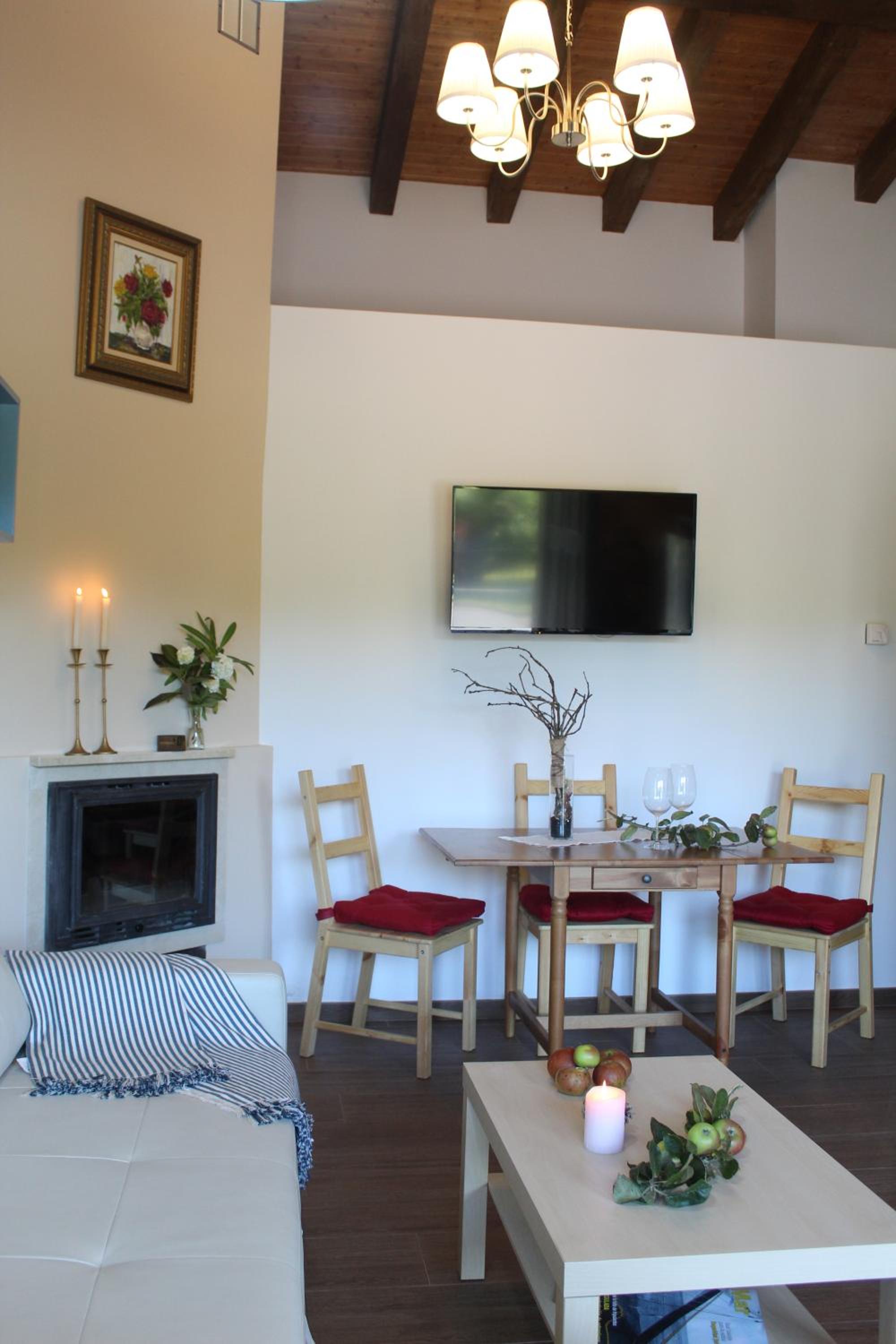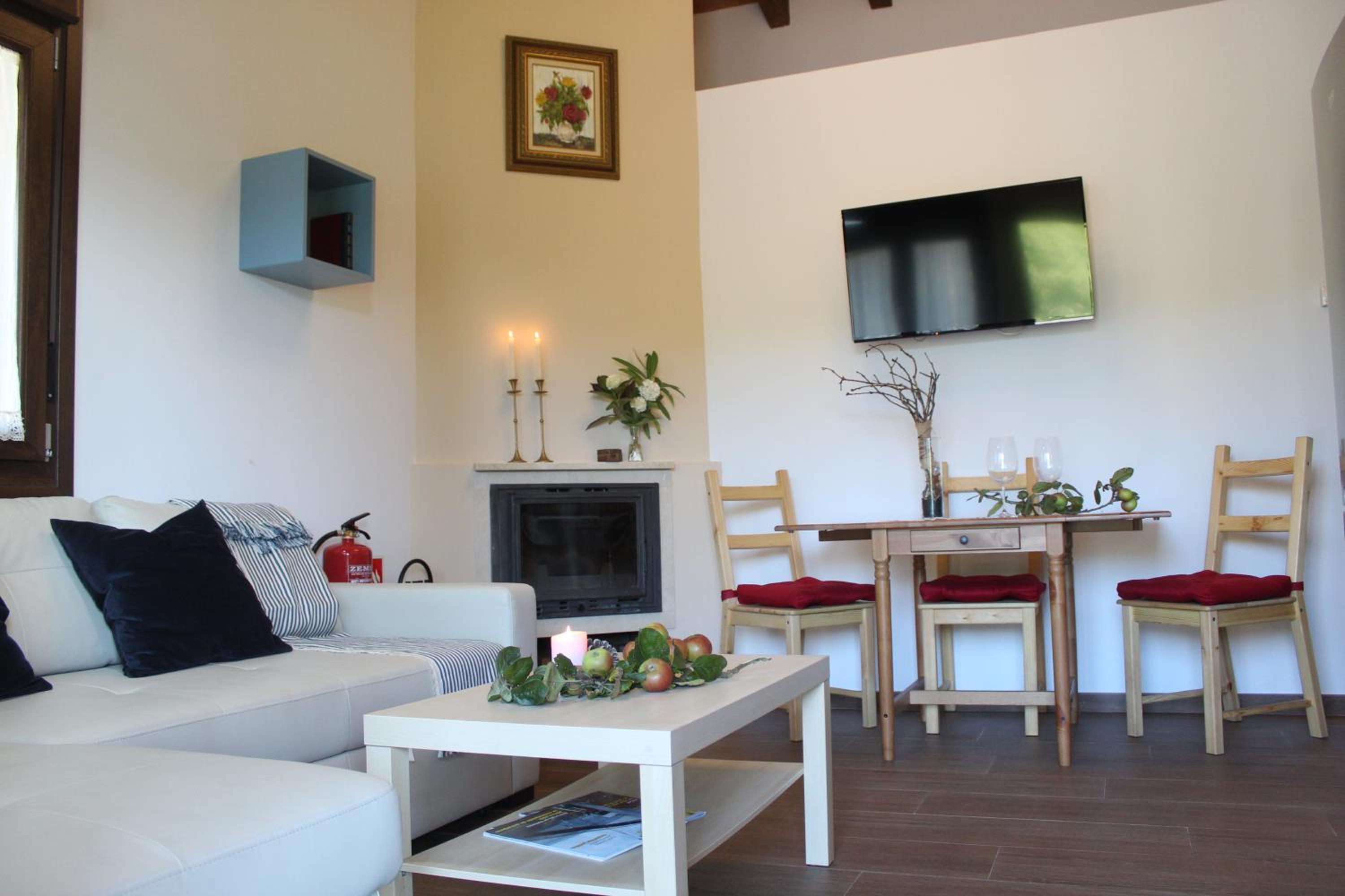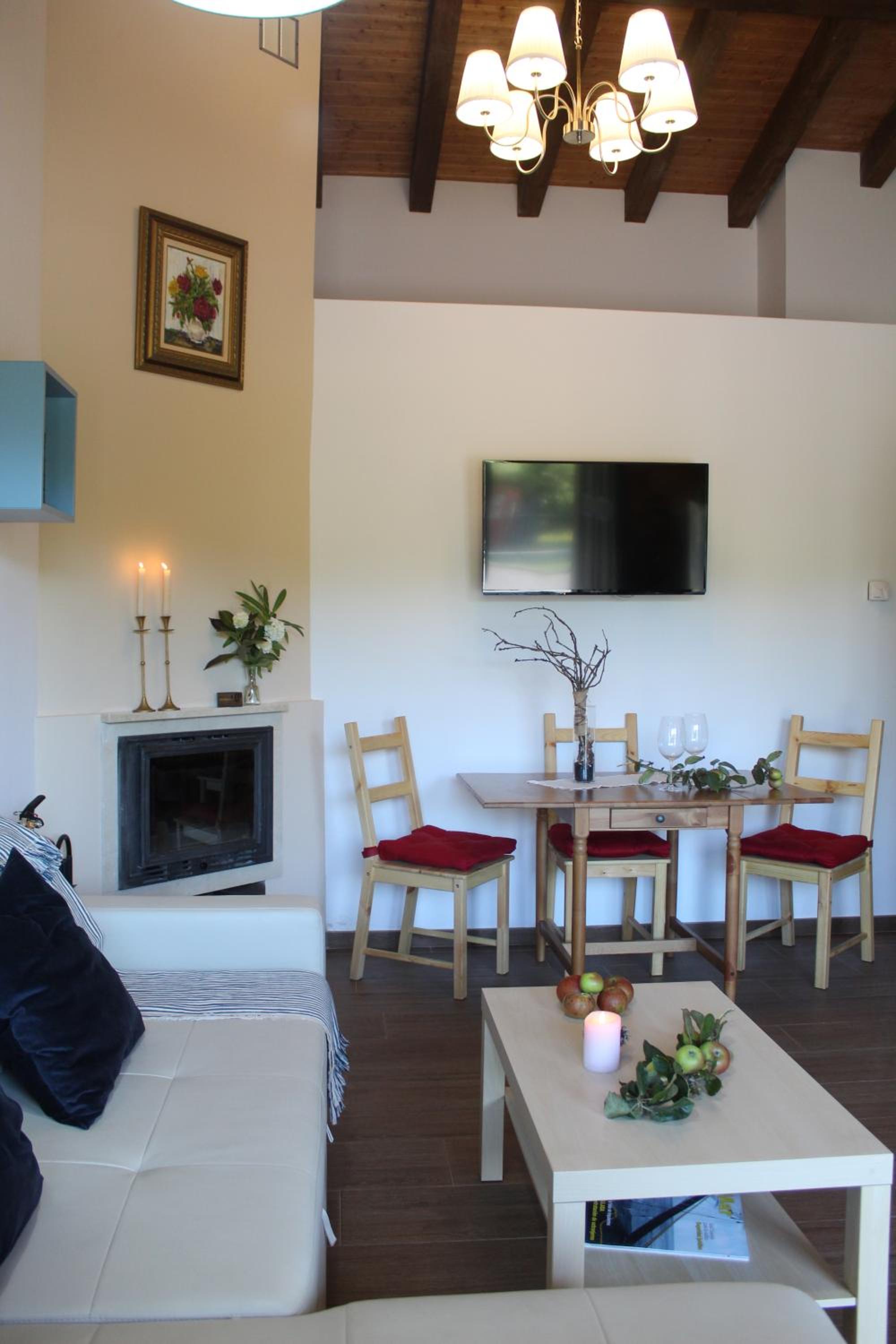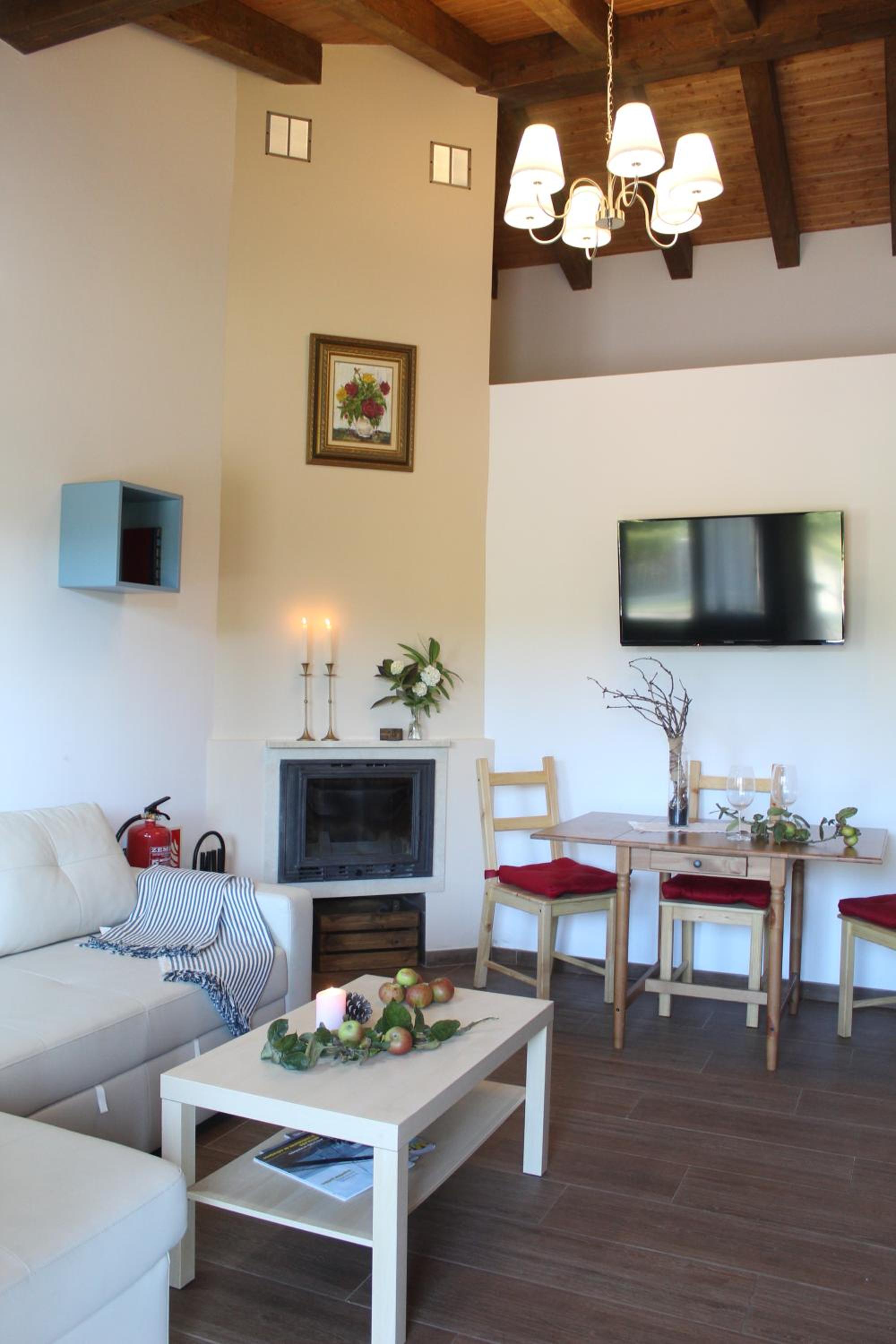 Each unit boasts a terrace, a fully equipped kitchen, a cozy fireplace, and modern amenities like a flat-screen TV and a washing machine. Relax in the walk-in shower with plush bathrobes provided.