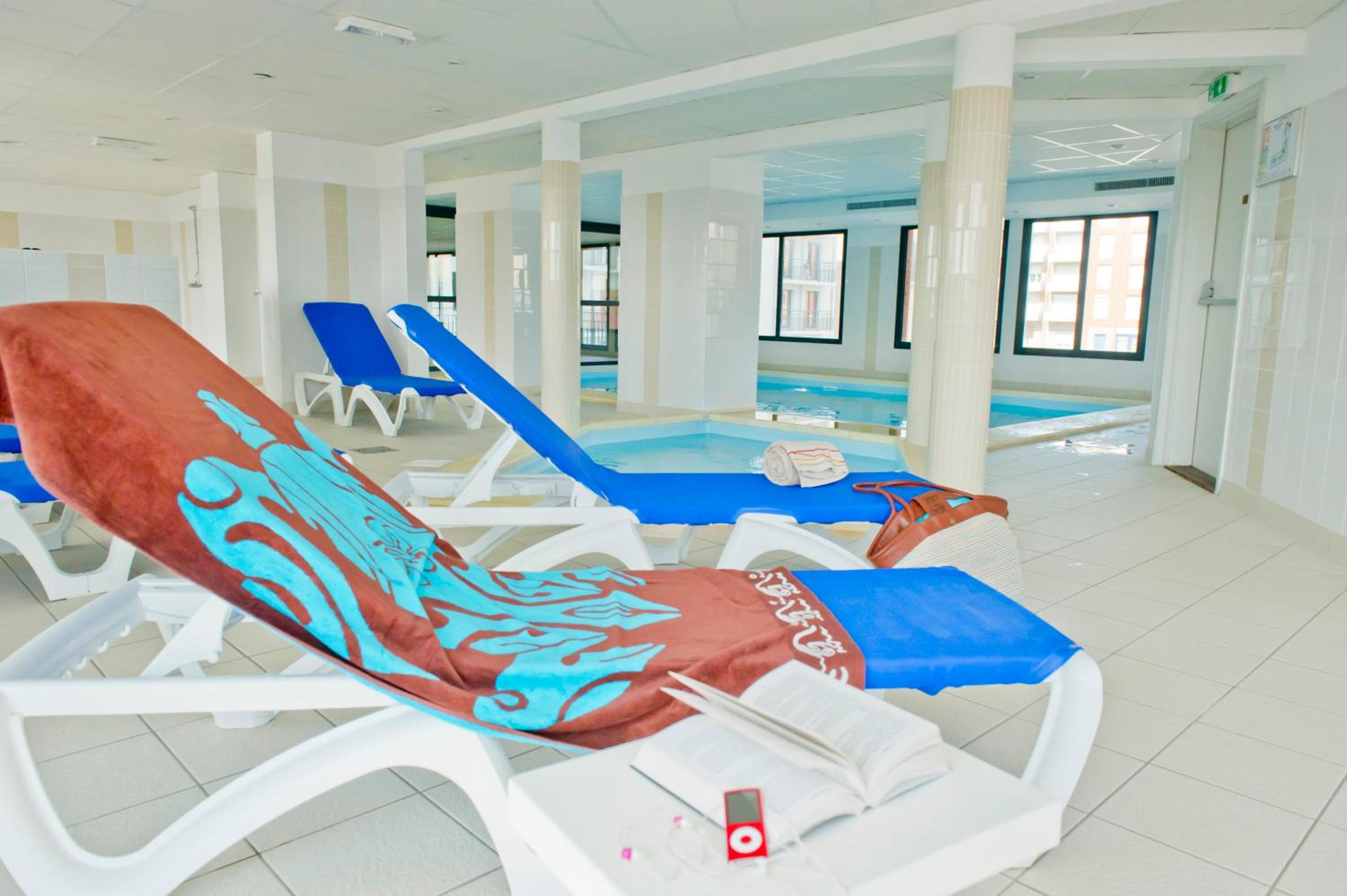 Piscine intérieure chauffée, parfait en ce qui concerne le parking, établissement fort bien situé dans la ville (prox.commerces)