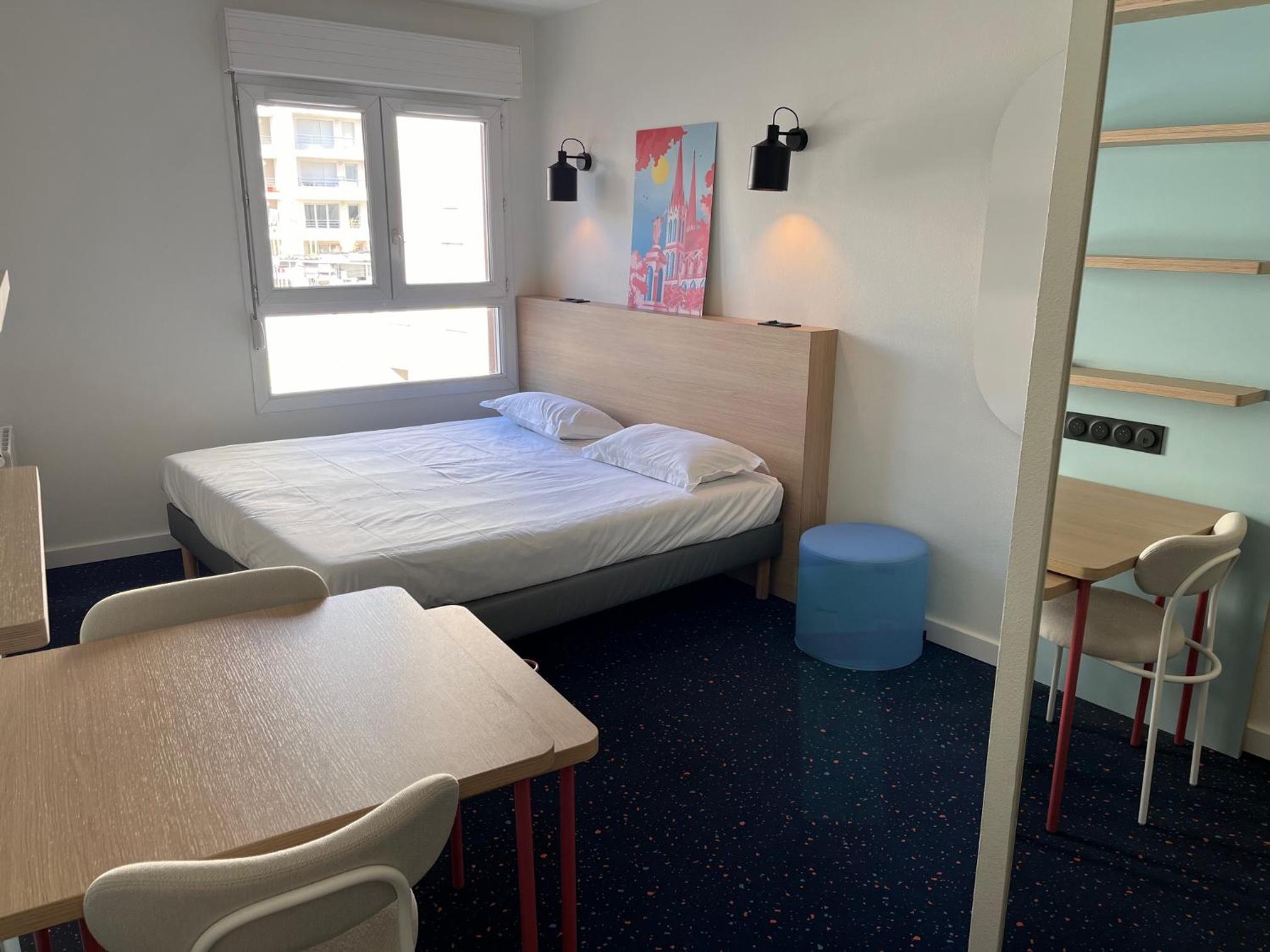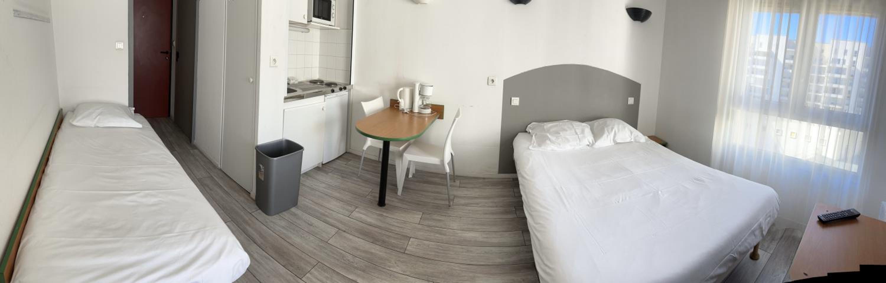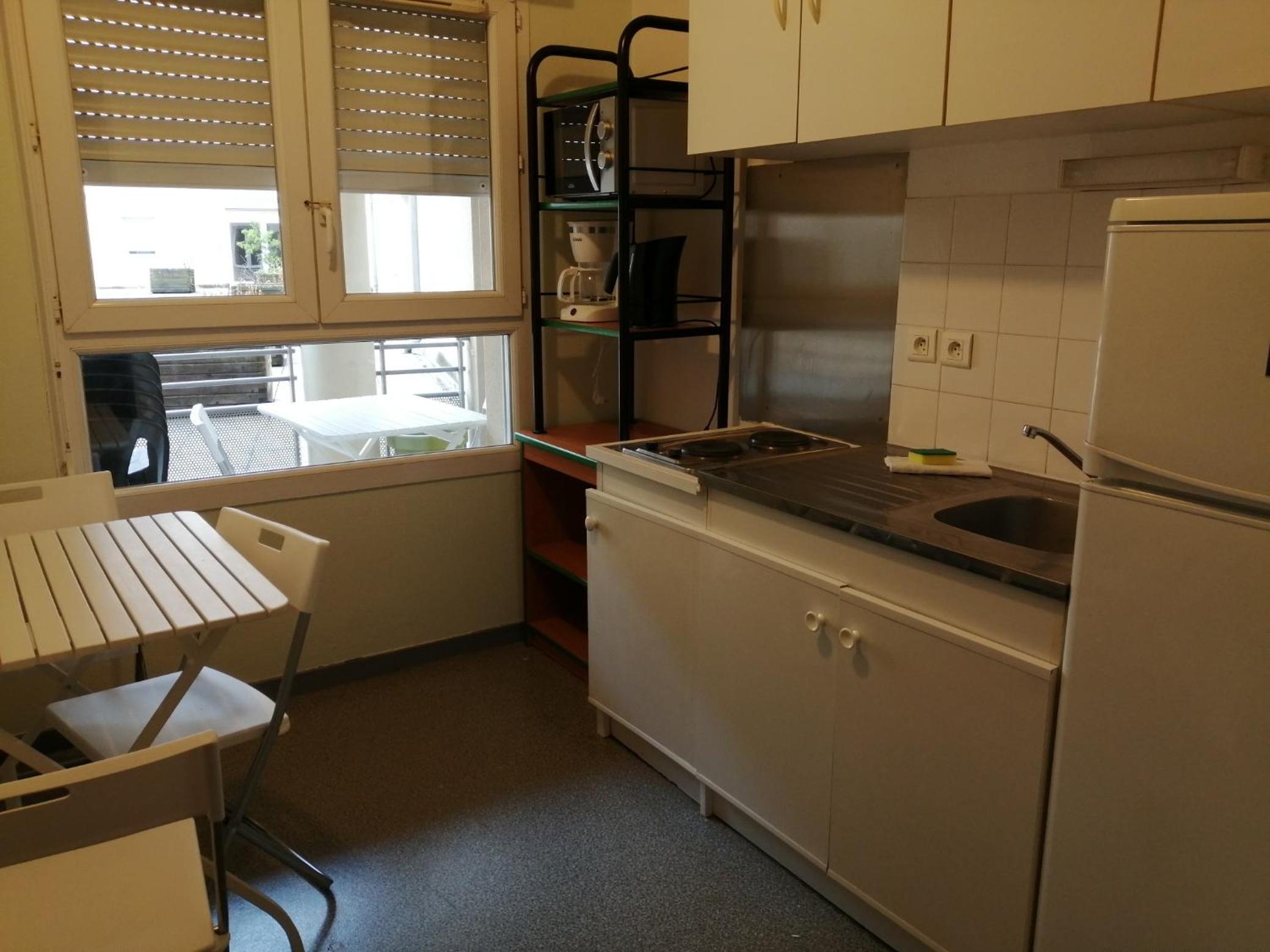 chambre très confortable et bien équipée, emplacement idéal plein centre. Frigo, Micro-onde et plaque de cuisson impeccables. Salle de bain propre.