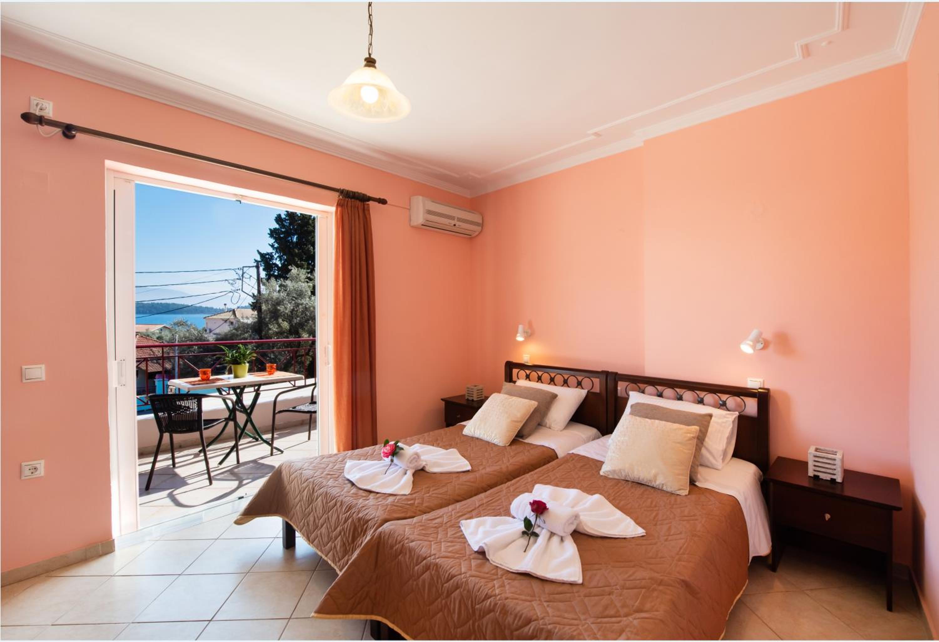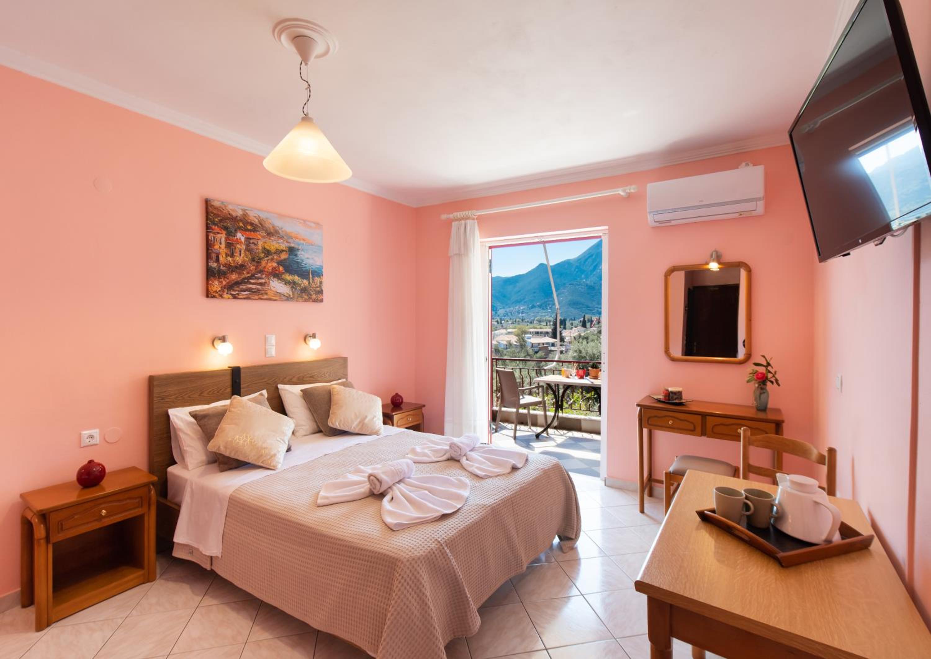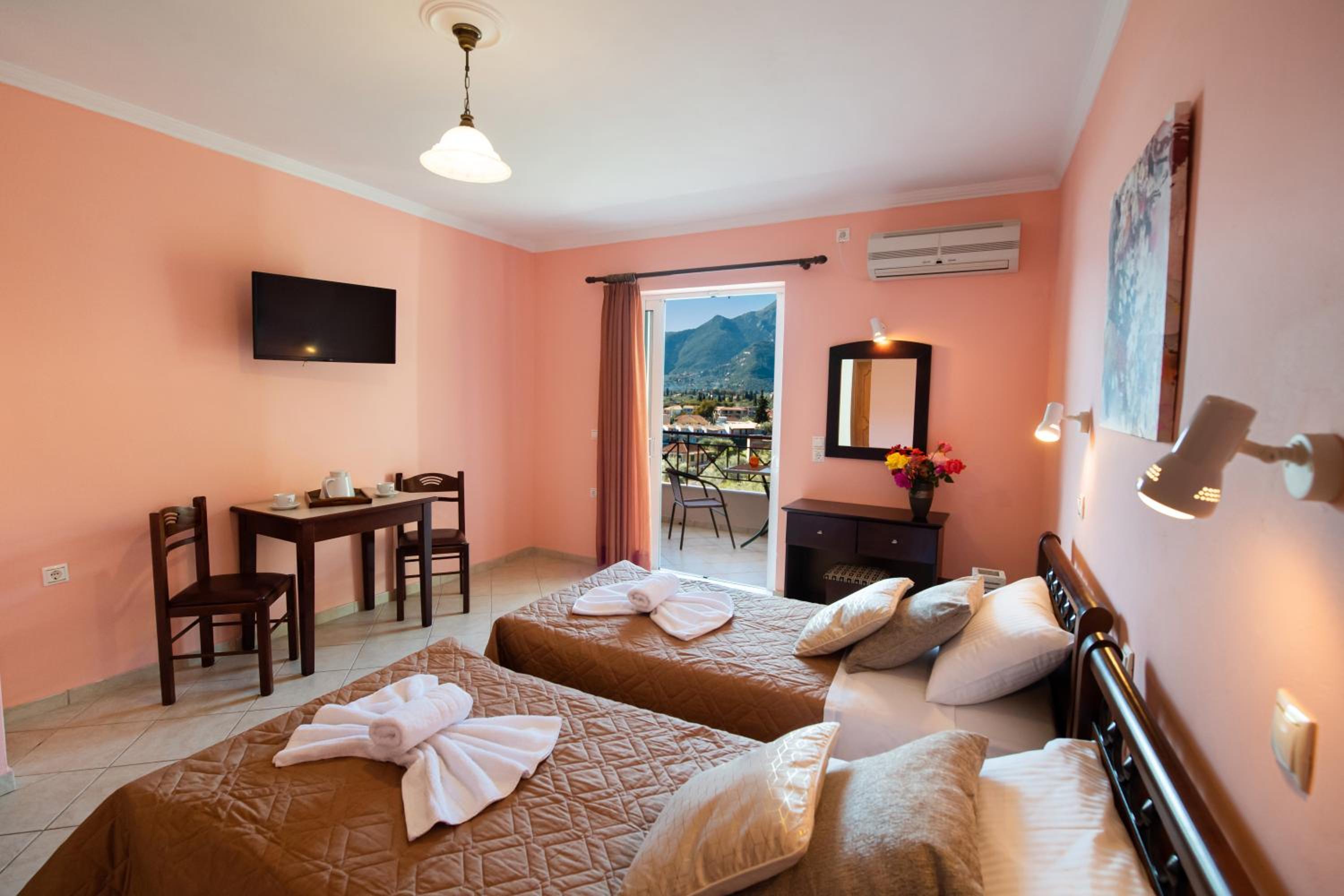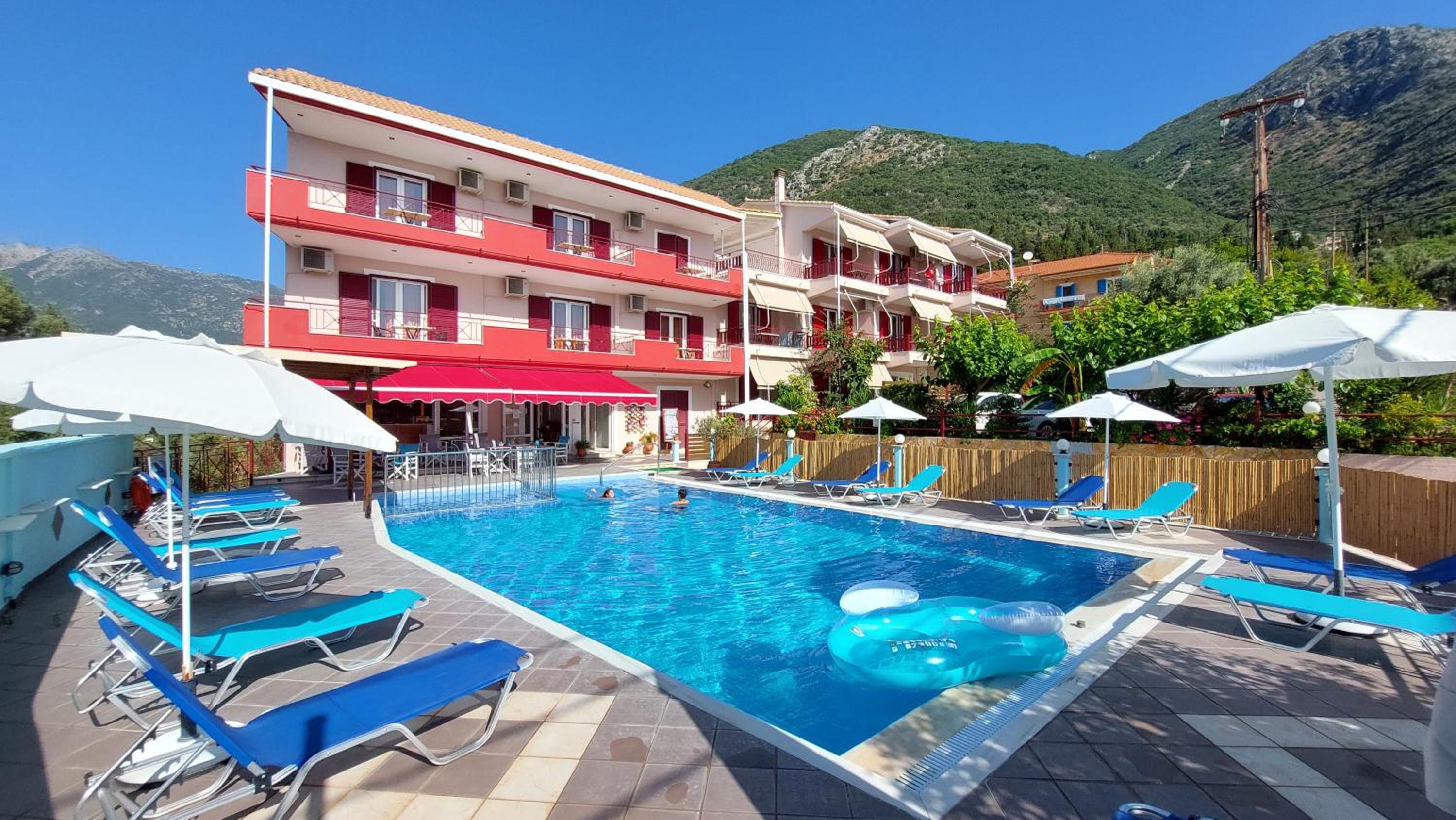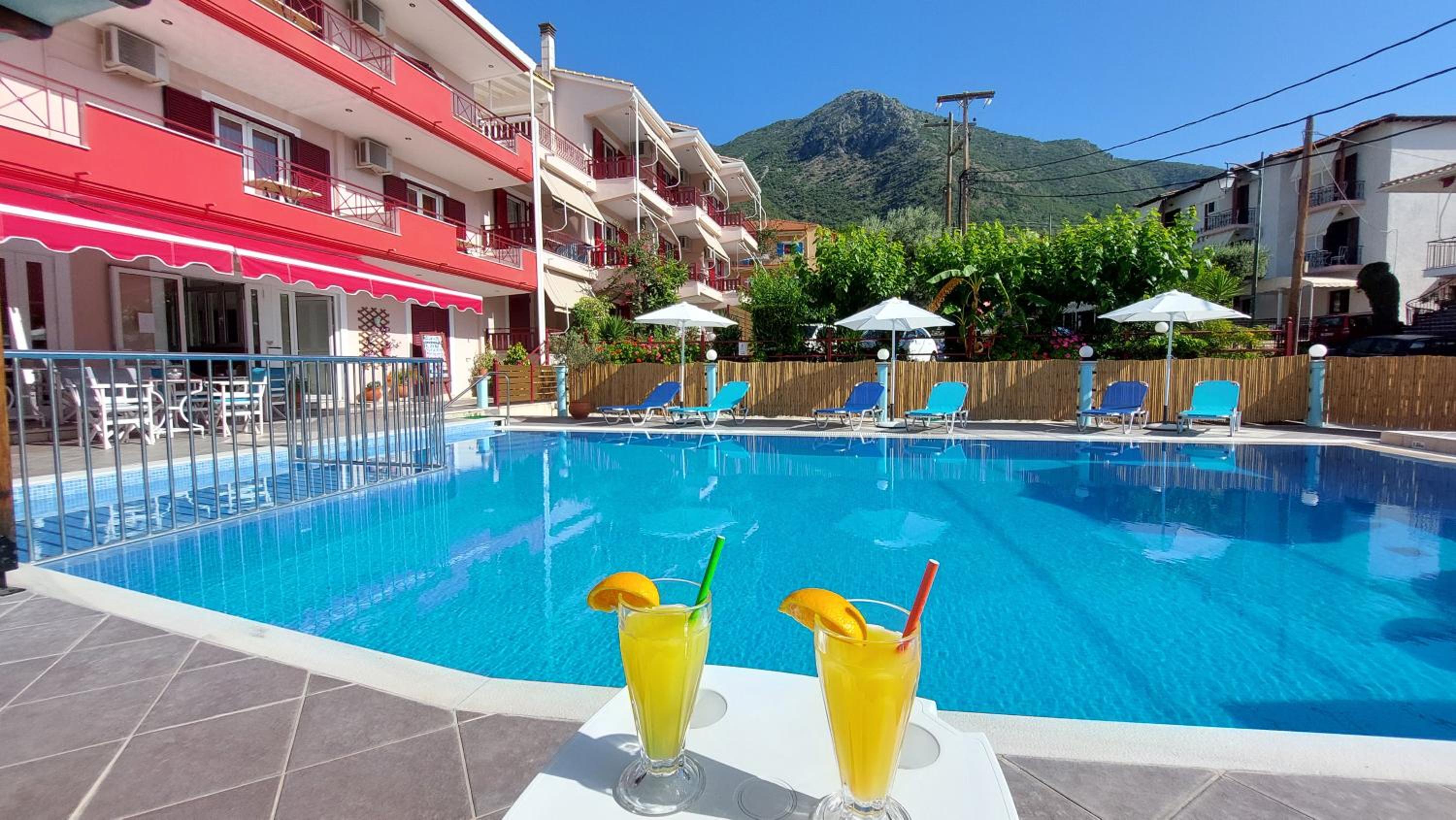 Ottima posizione, vicinissima alla spiaggia di Perigiali e poco lontana dal centro di Nidri. Ampio parcheggio disponibile. Piscina molto ben curata. Hosts sempre molto disponibili e camere ben pulite quotidianamente.