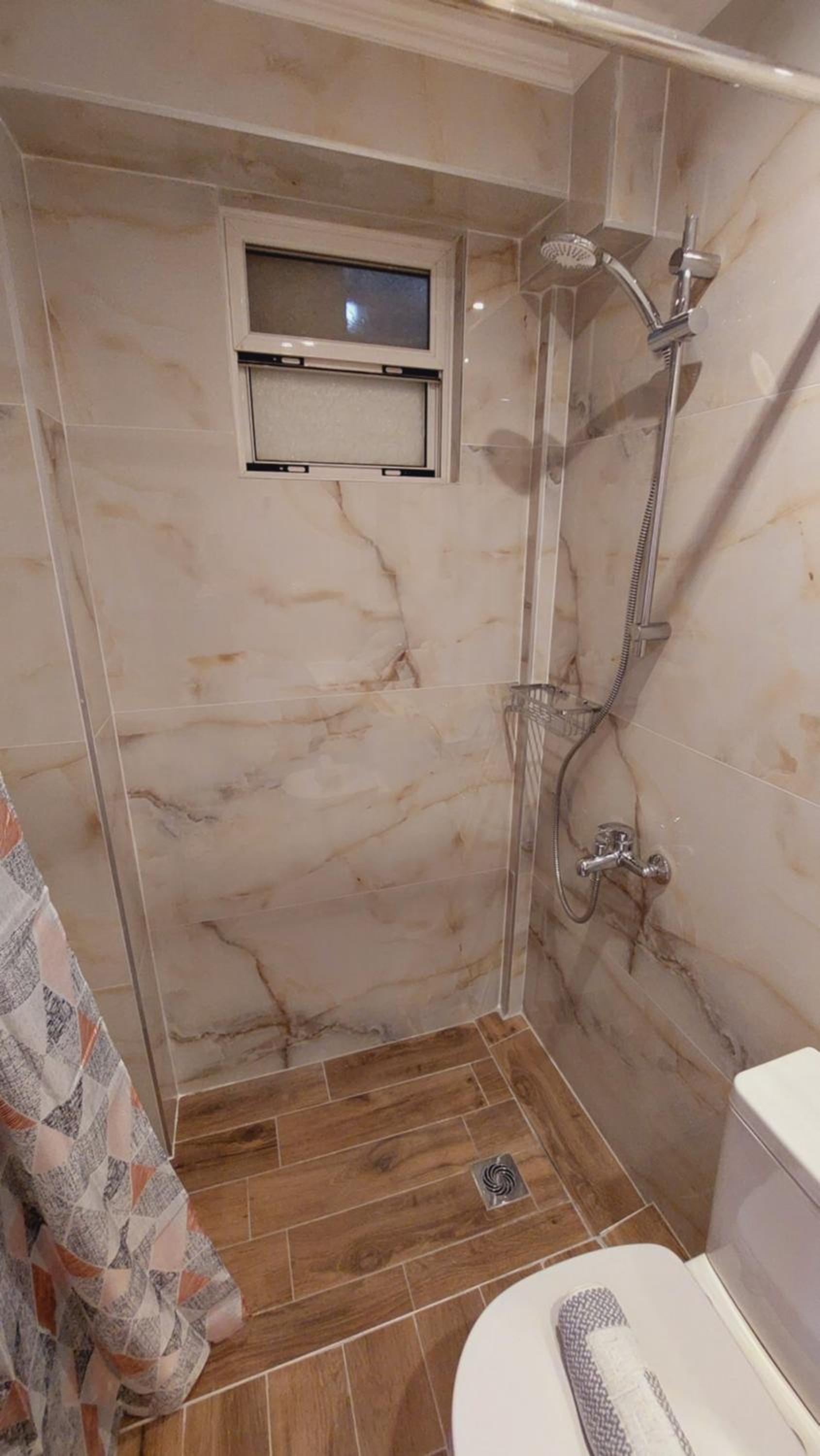 De badkamer is echt een minpunt voor ons. Deze was zo klein en douchen met een gordijn wat om je heen plakt, is echt niet van deze tijd.