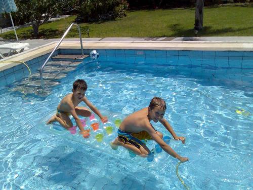 Zwembad prima, tuin met kinderspeelgoed loopauto. glijbaan,veel goede toeristische info en veel leesboeken (ook veel nederlandstalige leesboeken). Dit verwacht je eigenlijk niet. Dus heel goed. Bij aankomst troffen we een boeketje kruiden uit eigen tuin. Verder coffee,thee, vruchtensap.