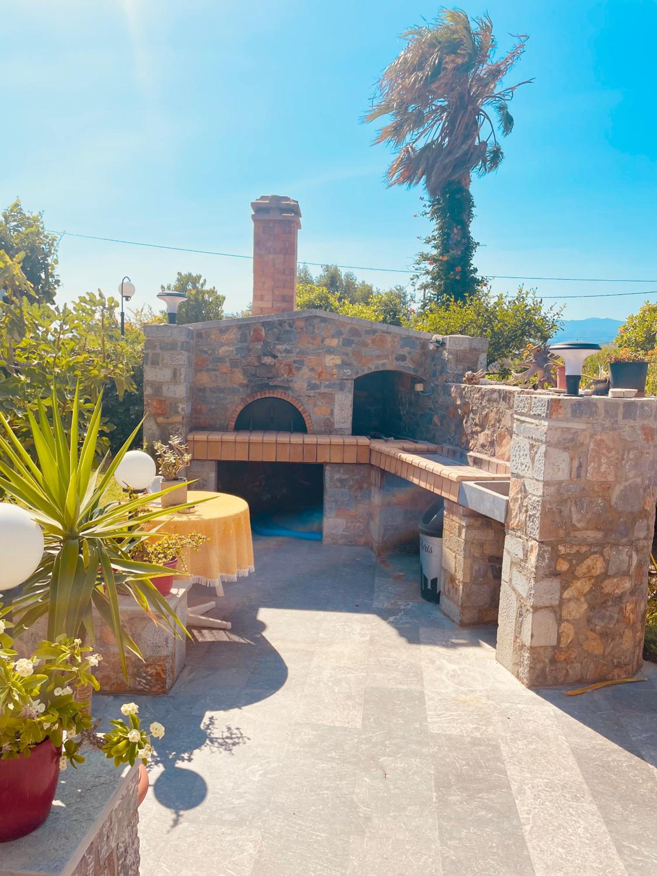 Guests can enjoy a peaceful outdoor swimming pool, a baby pool, and a spa pool nestled among the lush gardens. A barbecue area with a traditional oven is also available for guests to use.