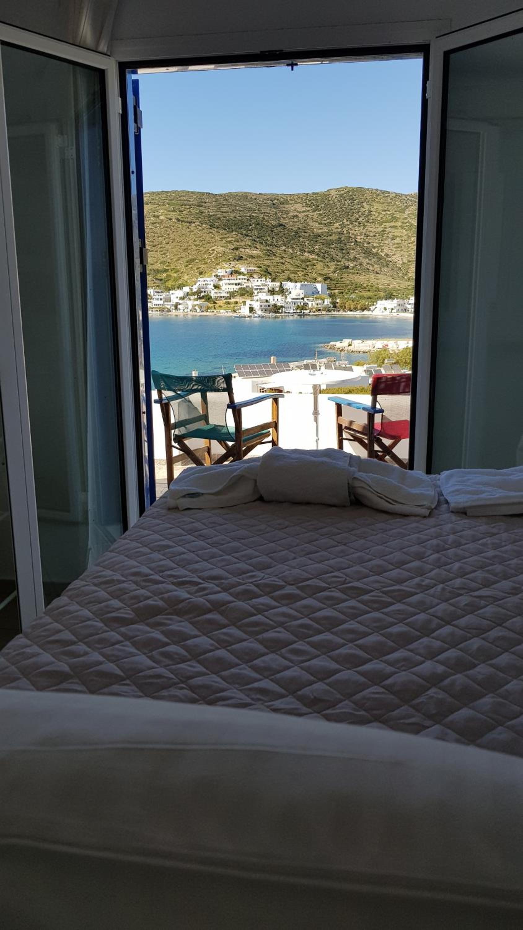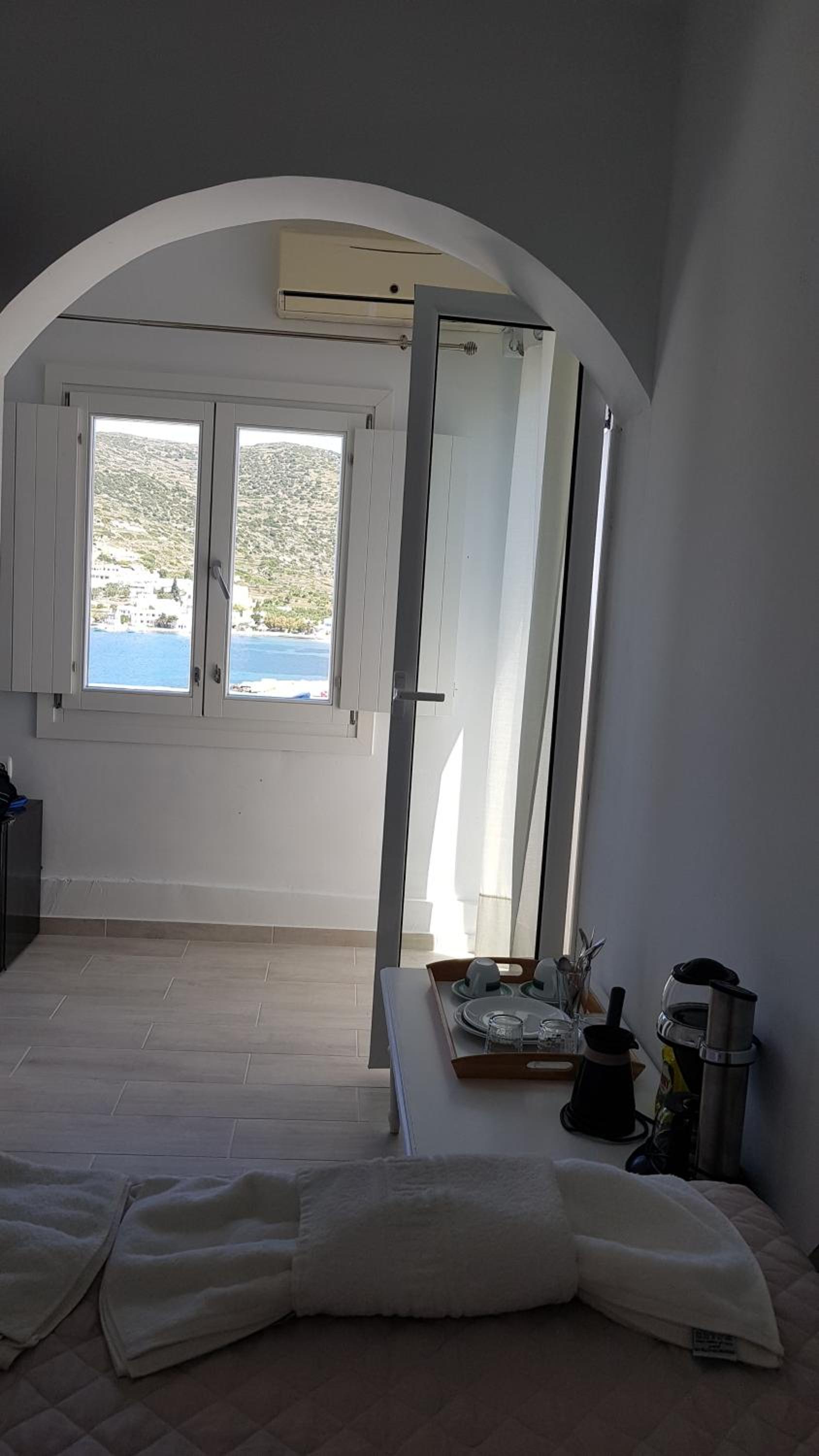 Das Zimmer hat einen schönen Blick auf den Hafen und die Bucht – habe dort viel Zeit verbracht. Selbst vom Bett aus sieht man das Meer. Es ist perfekte Unterkunft, um ein paar Tage Amorgos zu genießen. Ein Auto ist ratsam, um die schöne Insel zu erkunden. Der Hafen von Katapola bietet auch am Ende der Saison eine ausreichend große Anzahl an Tavernen, um kulinarisch abwechslungsreich zu speisen.