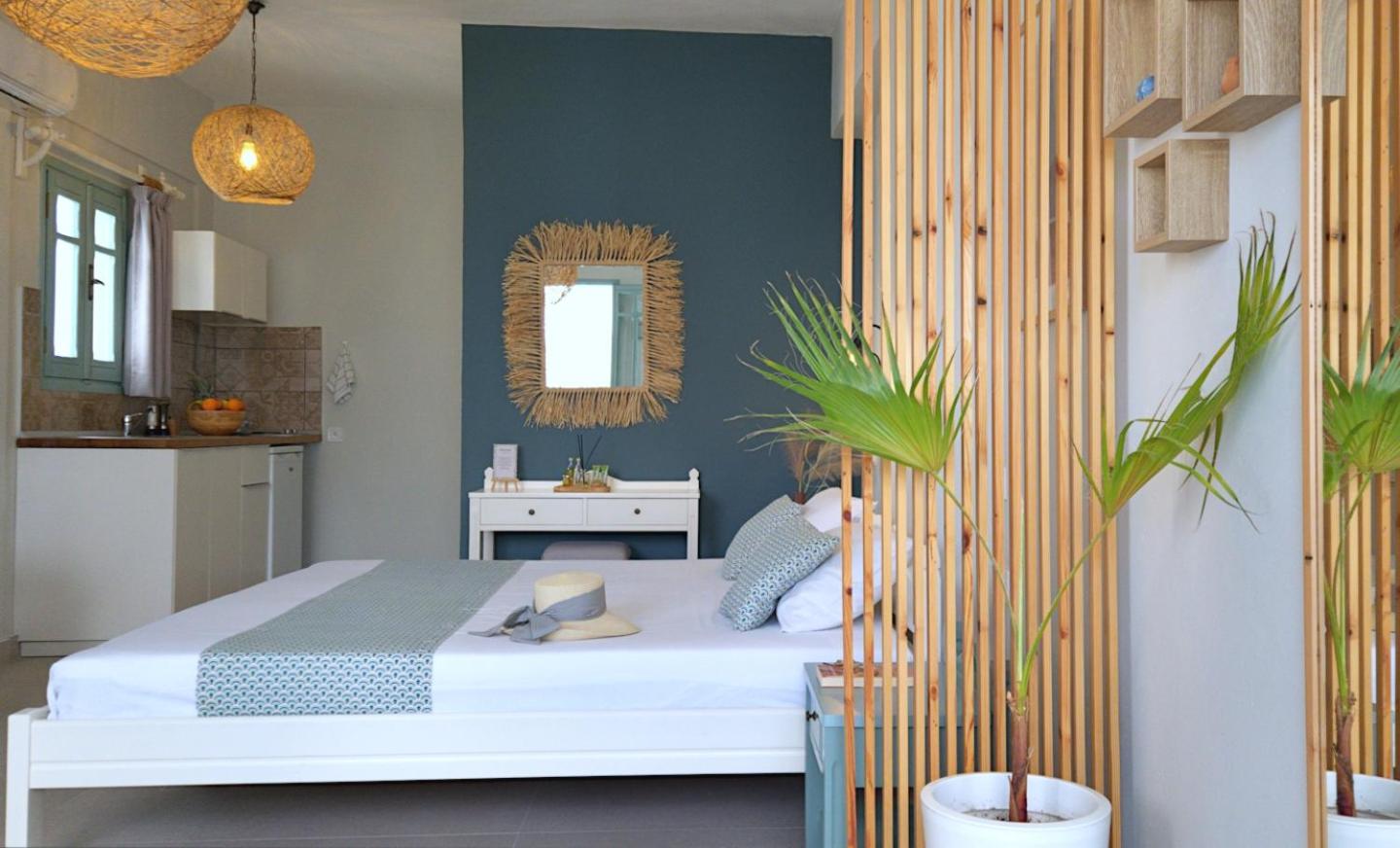 'Kurmulis Studios' in Stalos offers spacious and well-equipped rooms, ensuring a comfortable stay for all guests.