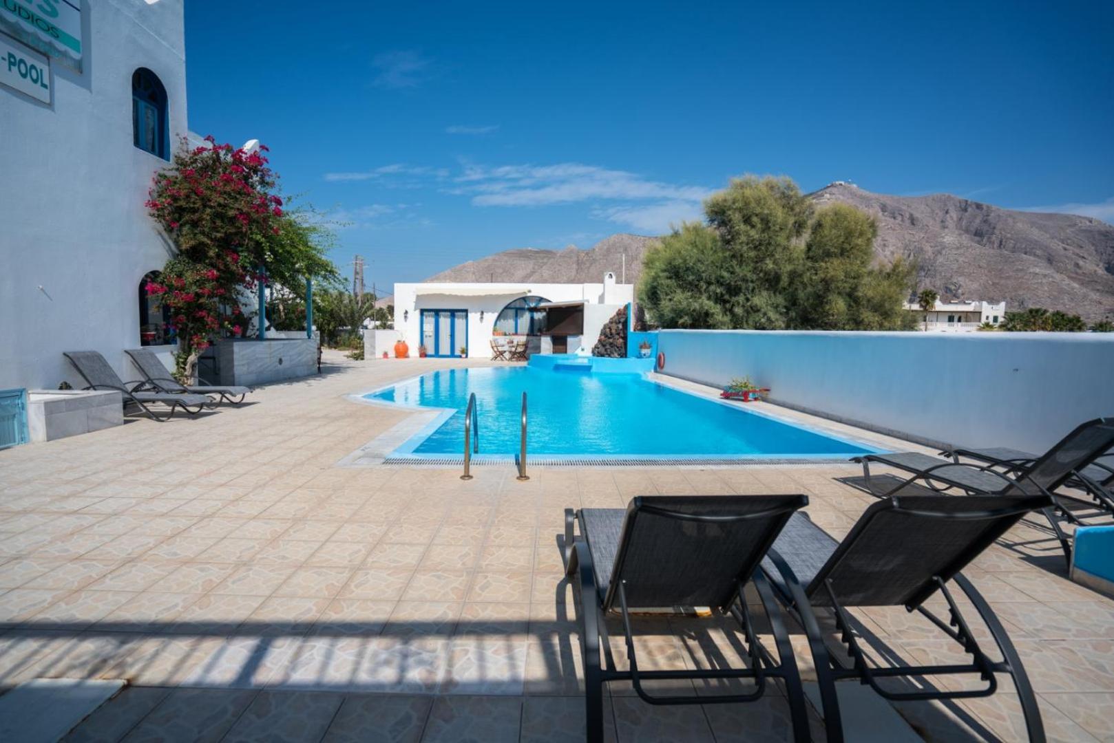 At Villa Limnes, indulge in breathtaking mountain views and enjoy the convenience of being just 500 meters away from the beautiful Perissa Beach. The air-conditioned rooms feature private bathrooms, with some offering terraces and garden views. Families can relish the comfort of spacious family rooms and take advantage of the year-round outdoor pool.