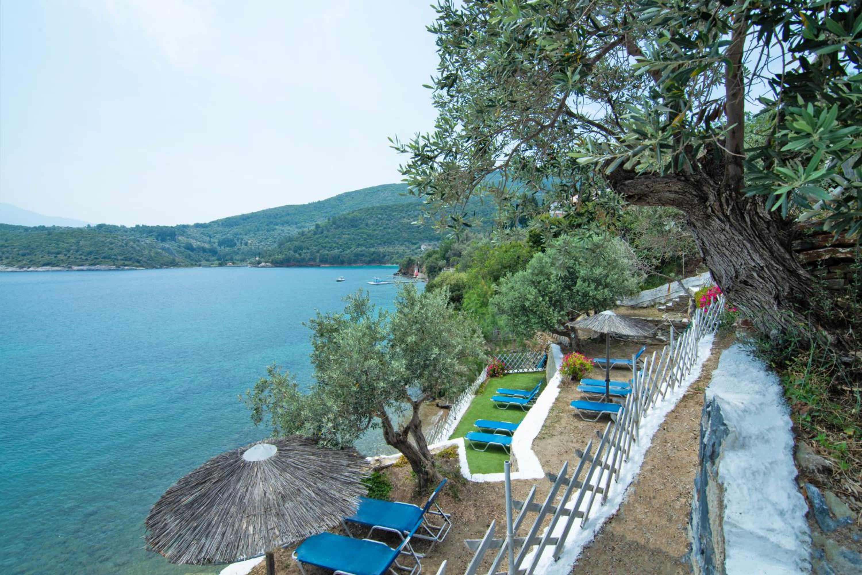 Araba ile 15 dk mesafede Posidinio koyu var. Çok sevimli bir yer, denizi sakin ve berrak.