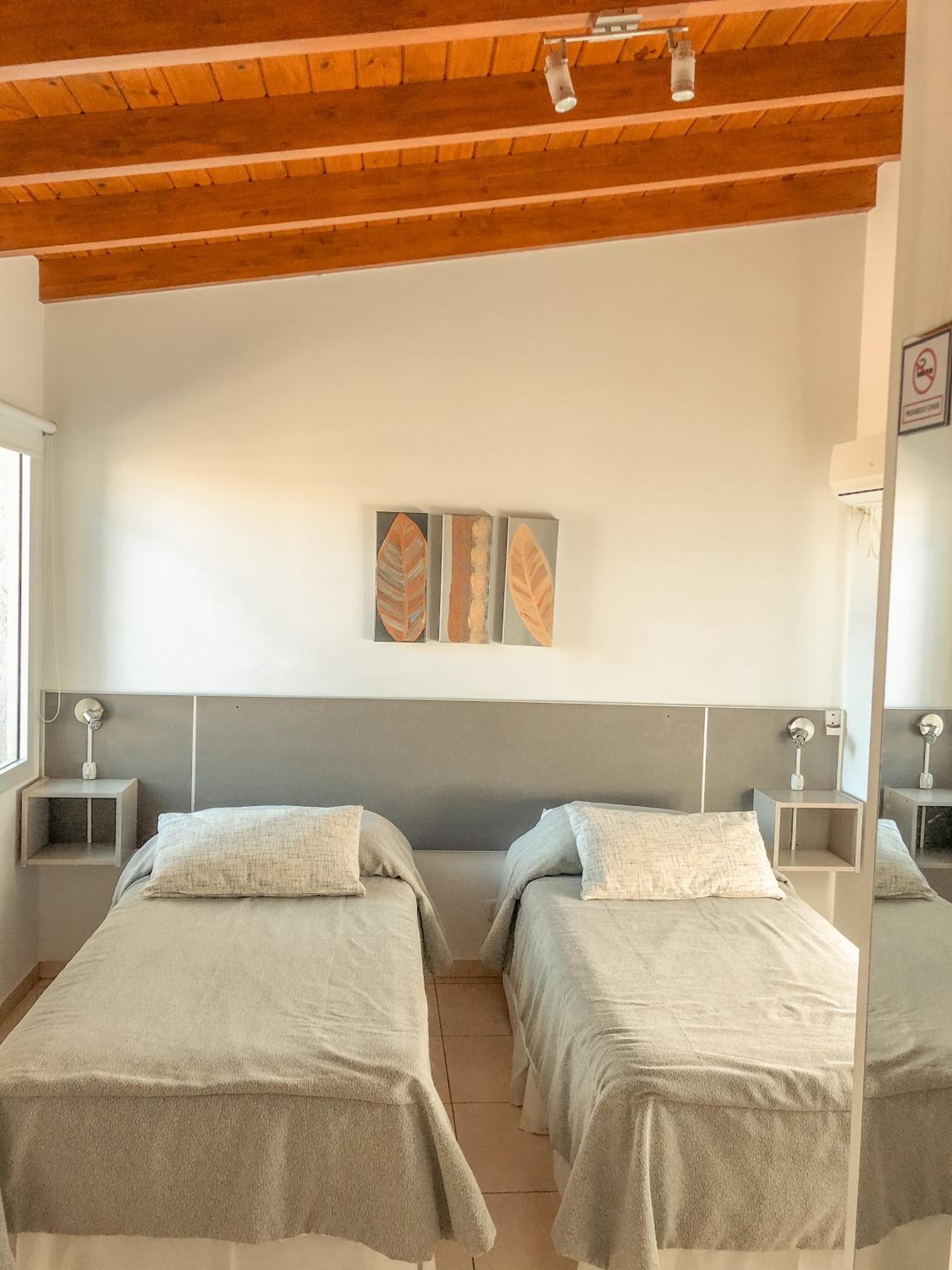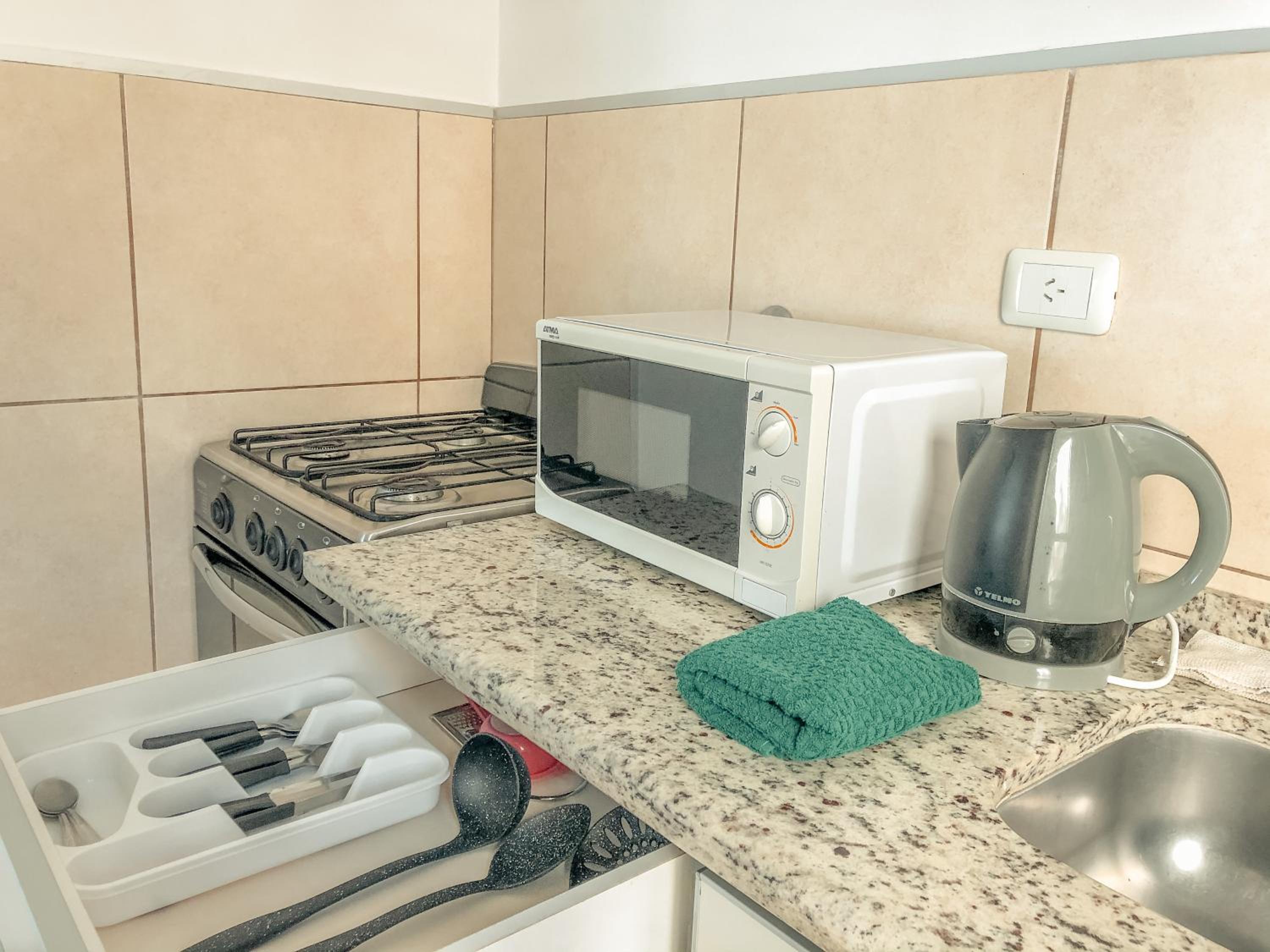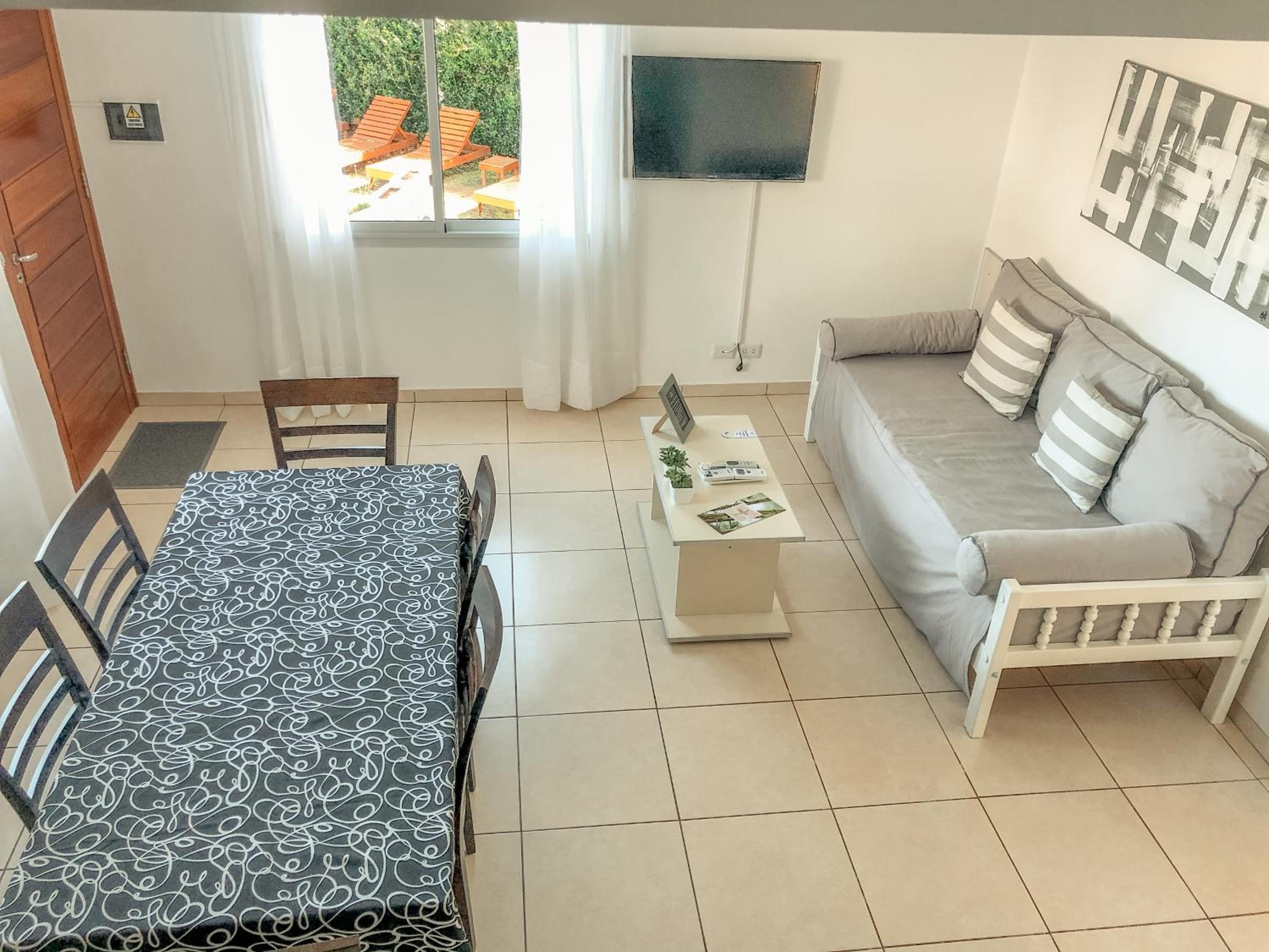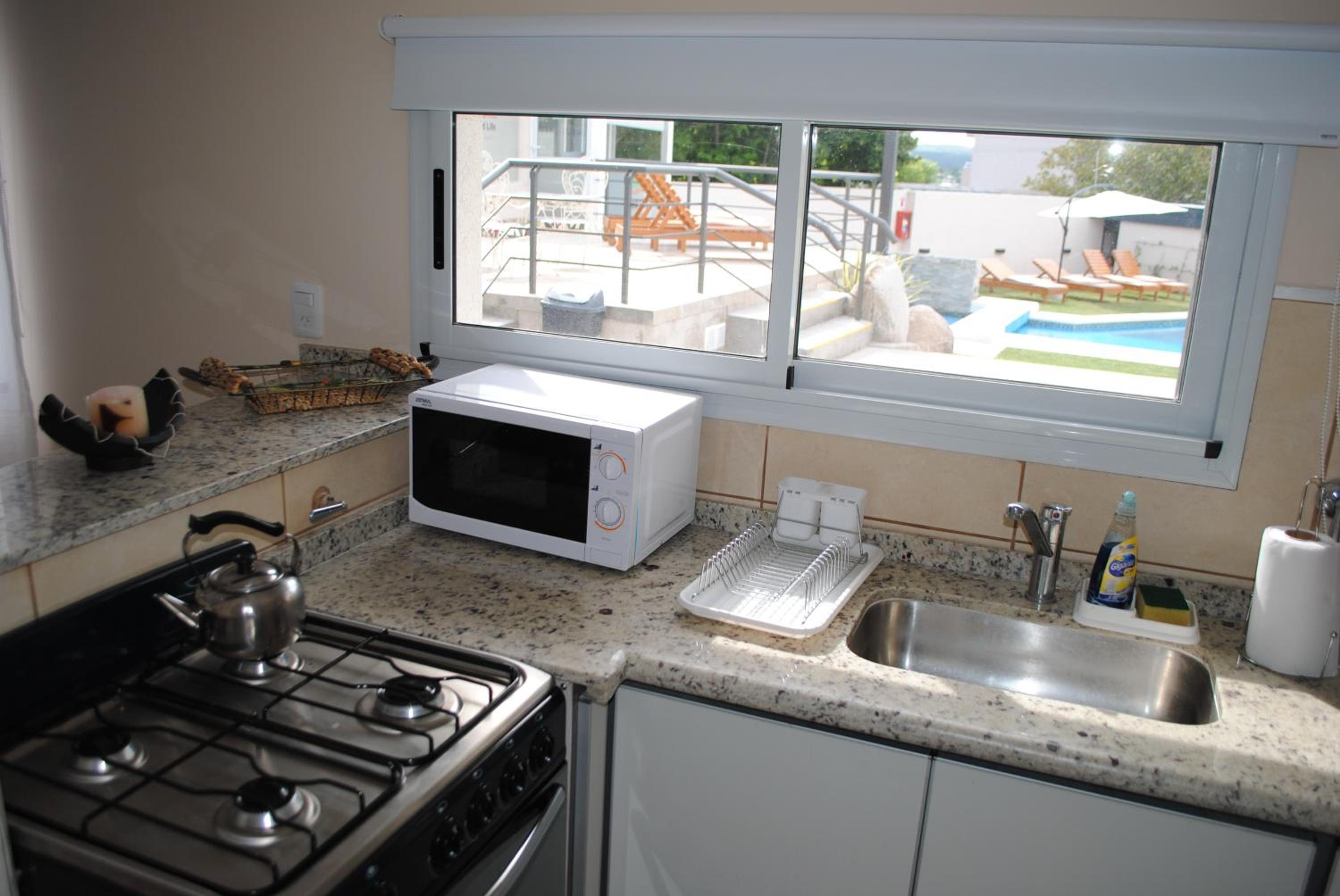 La ubicación es fantástica y las camas realmente cómodas. El personal, impecable. La pileta, cómoda y linda. El aparcamiento, también muy bien. La cocina, con lo necesario.