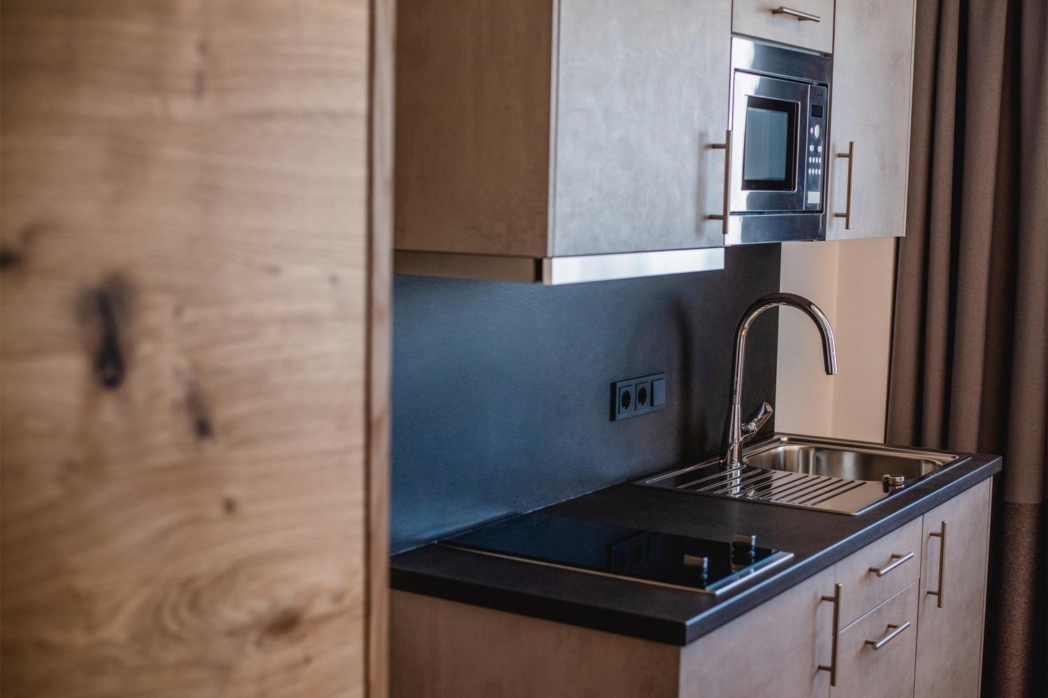 Hab noch nie so ein gutes ausgestattetes kleine Küche beim Studio Apartment gehabt. War sehr beeindruckend.