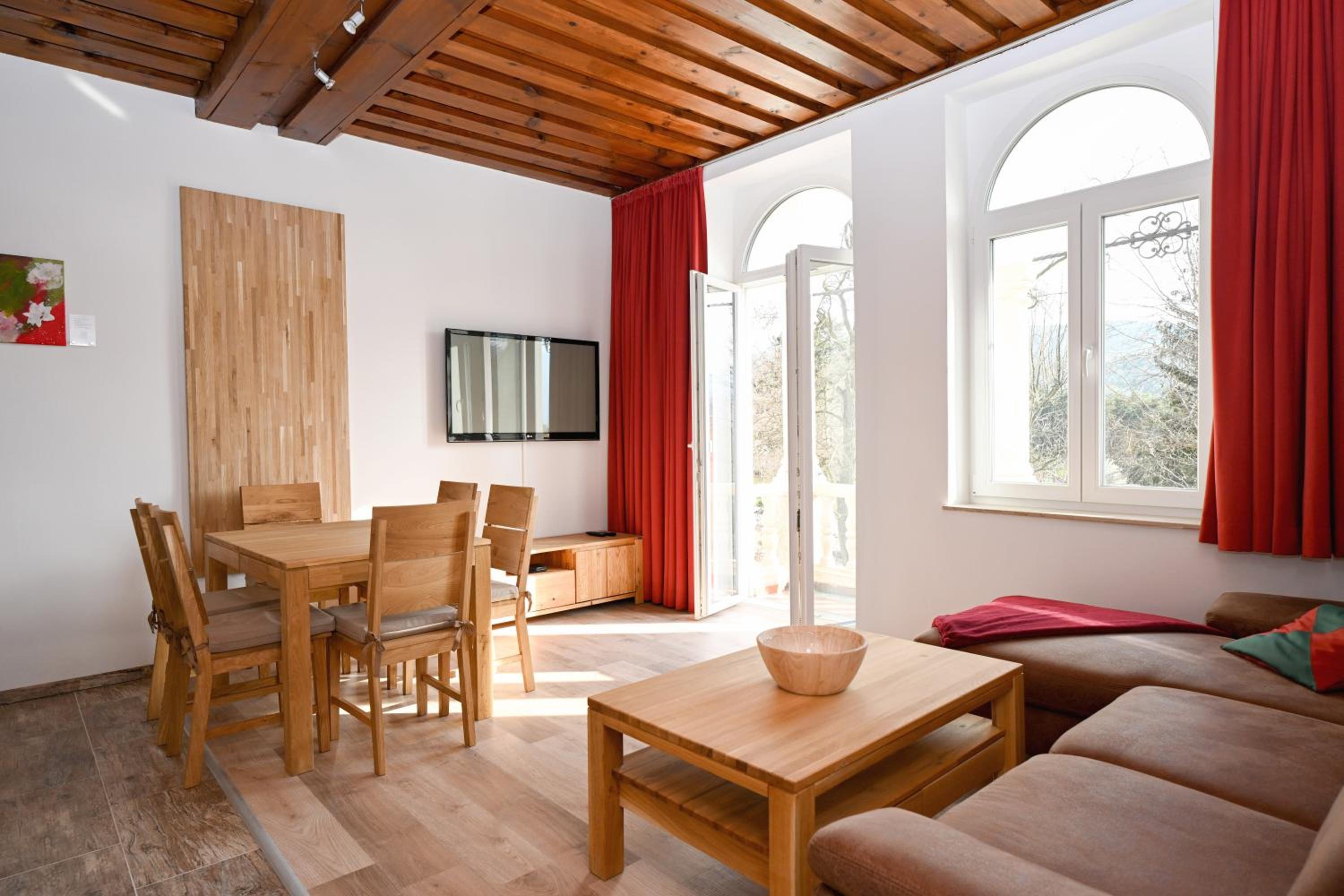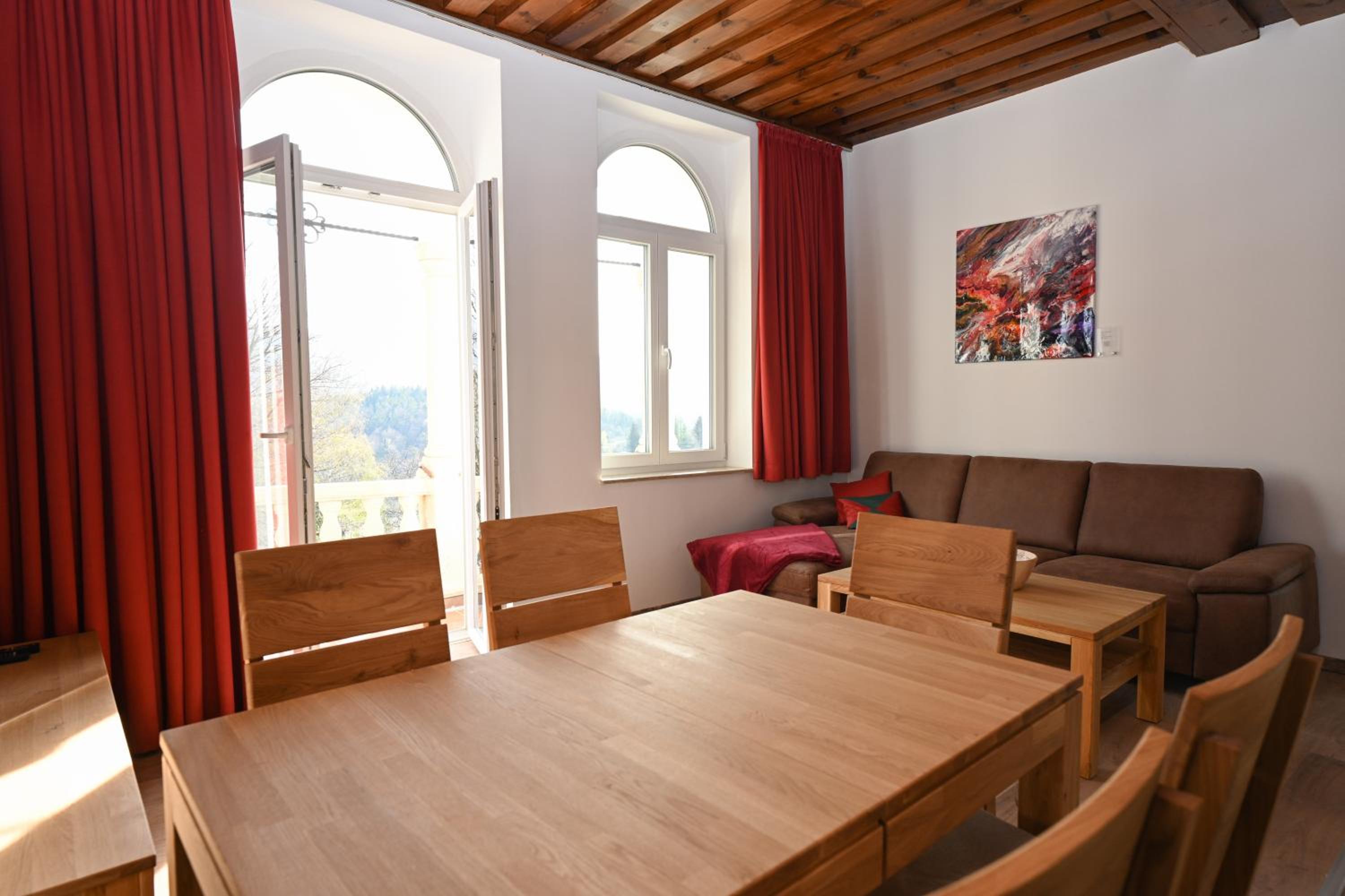 Sehr schönes, modernes und geräumiges Apartment (Rax) mit herrlichem Südwest-Balkon, geräumigen Zimmern, großen Kleiderschränken. Ruhige und idyllische Lage mit tollem Bergblick. Besonders hervorzuheben ist die sehr gut ausgestattete Küche, riesiger Kühlschrank, spitzenmäßige Kaffeemaschine (Siebträger-Barista + elektrische Kaffeemühle, ganze Bohnen kostenfrei vorhanden). Ausreichend freie Parkplätze auf dem Gelände.