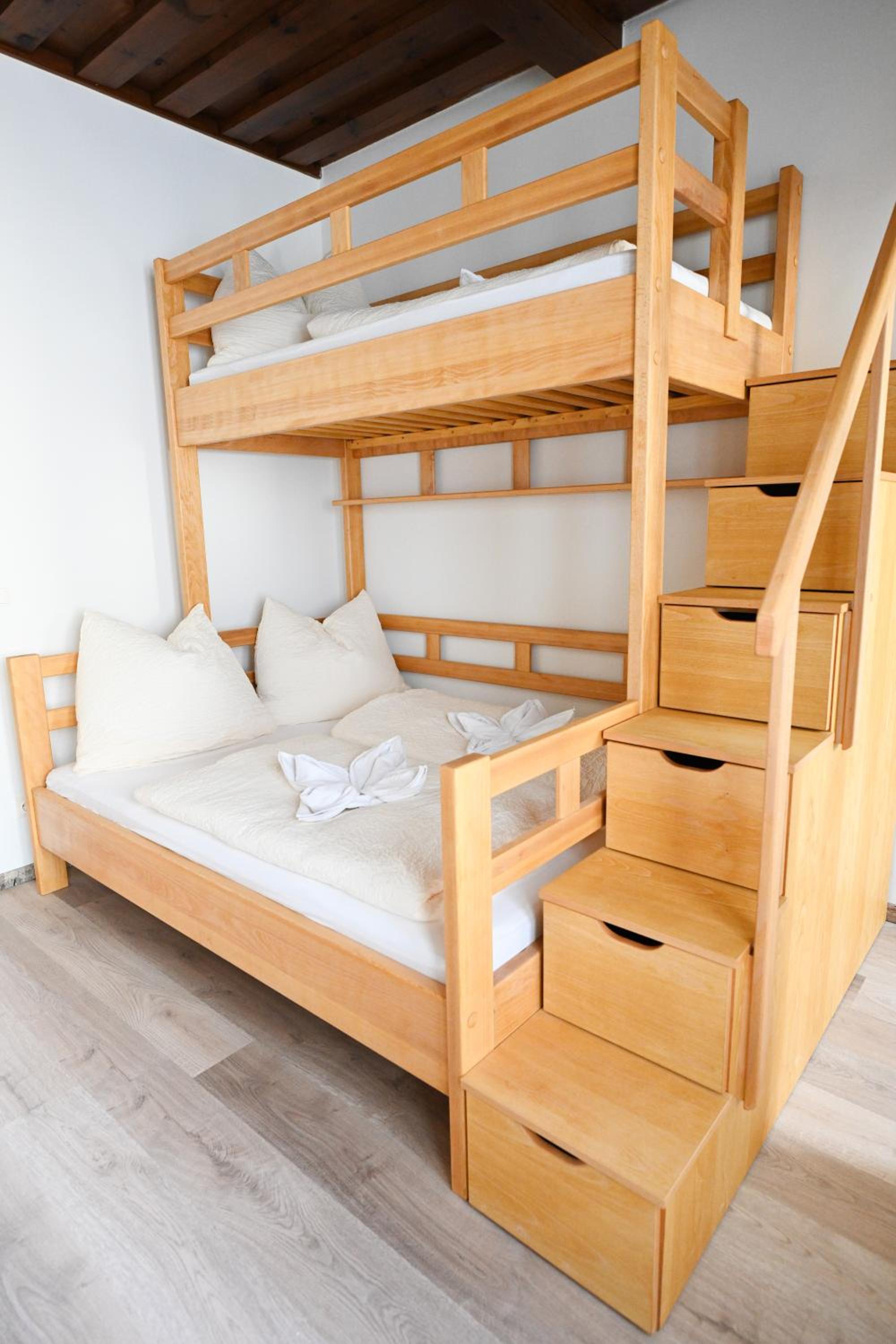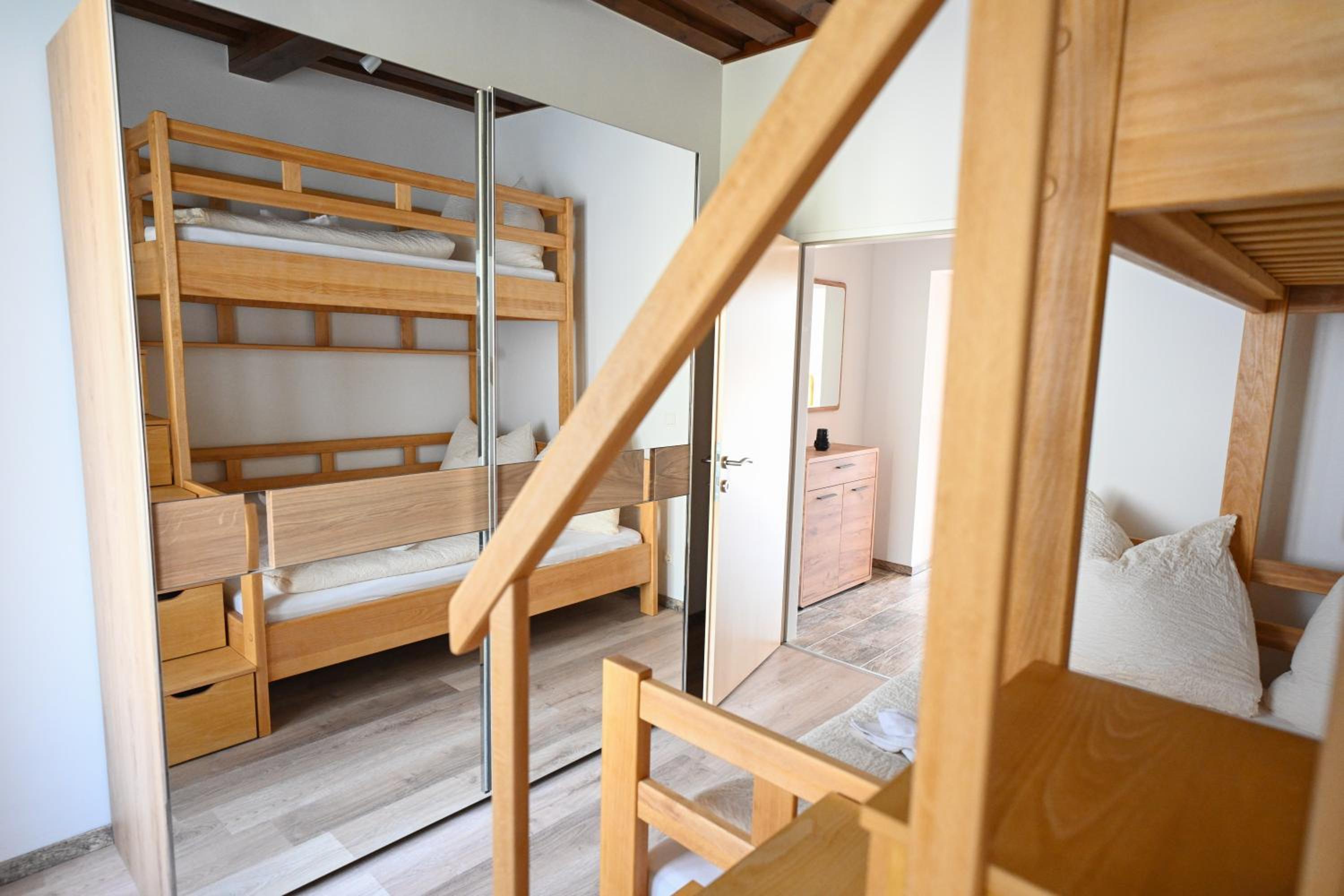 Trotz des insgesamt wirklich positiven Eindrucks muss ich leider ein paar Punkte anführen: Es fehlt eine Couch oder gemütliche Sitzecke. Es fehlt ein Wohnzimmer, gibt nur eine Küche mit großem Küchentisch als einzige Sitzmöglichkeit. Will man TV schauen bekommt man Genickstarre, weil dieser sehr hoch an der Wand befestigt ist. Die Matratze des Doppelbetts ist sehr hart und nach mehr als einer Nacht regelrecht schmerzhaft. Es gibt keinen TV im Schlafzimmer, nur einen in der Küche. Die recht steilen Stufen zum sehr weit oben unter der Zimmerdecke gelegenen oberen Kinderetagenbett sind komplett ungesichert, für kleinere Kinder, die Etagenbetten nicht gewohnt sind, ist das doch grenzwertig. Das kombinierte Bio-Duschgel/Seife/Shampoo löste bei uns leider die Haut von den Händen, vermutlich vor allem dann, wenn man es nicht gewohnt ist (ist also nicht gerade hautfreundlich - Bio hin oder her). Nächste Verpflegungsmöglichkeit (Restaurant, Café) mind. gute 20 Minuten entfernt, Auto ist ein Muss, aber das sollte vorher sowieso klar sein.