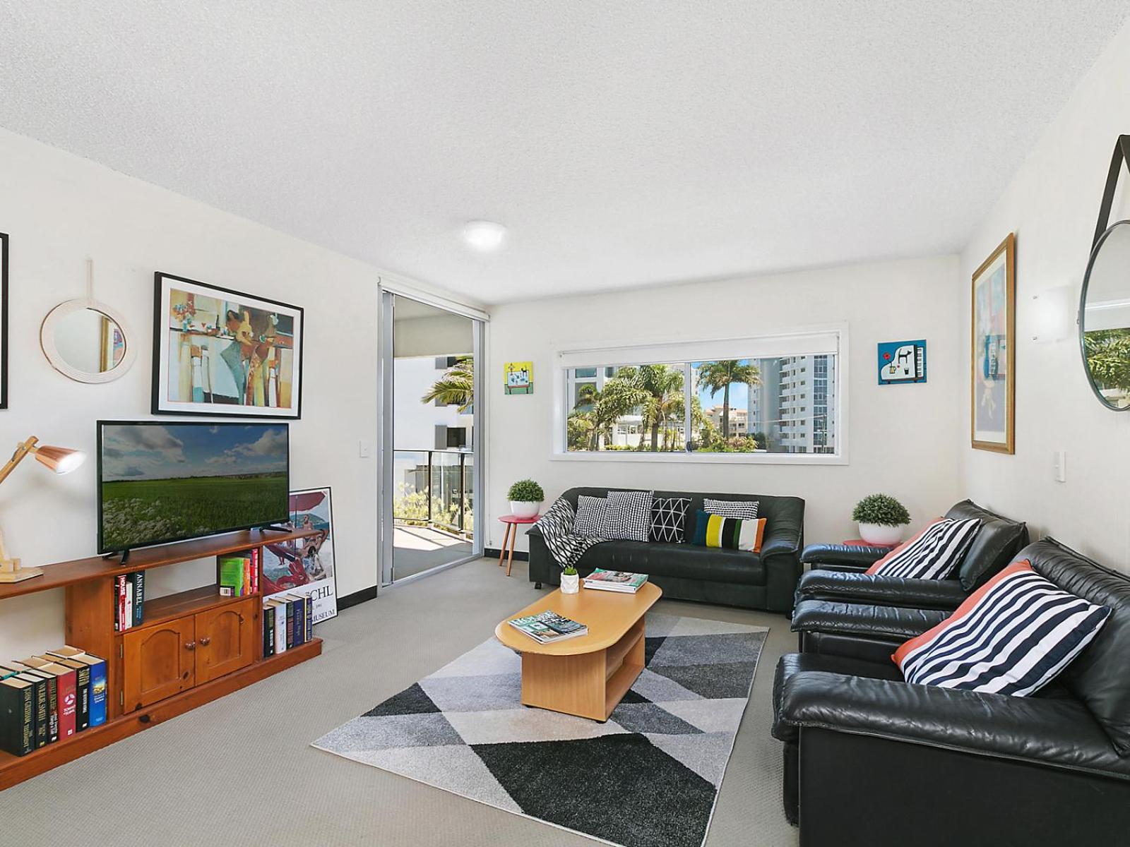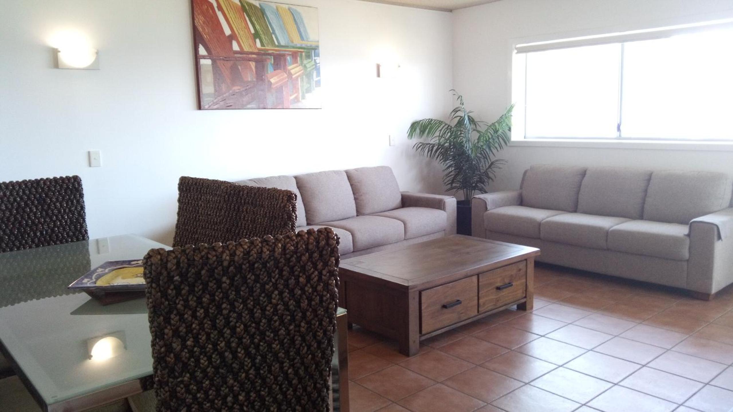 Relax in style in our self-contained apartments featuring a private balcony, fully equipped kitchen, and laundry facilities. Unwind in the spacious dining and lounge area with a TV offering cable channels.