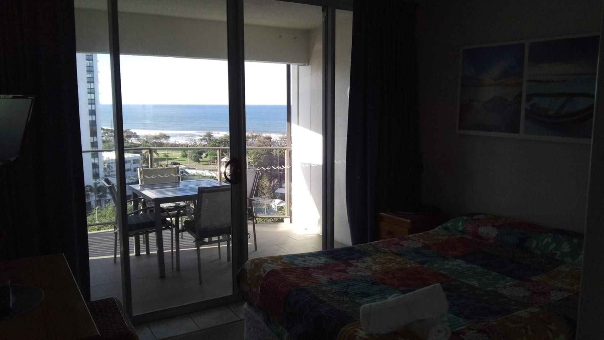Spacious two bedroom apartment with a large balcony with great ocean views.. Great location..