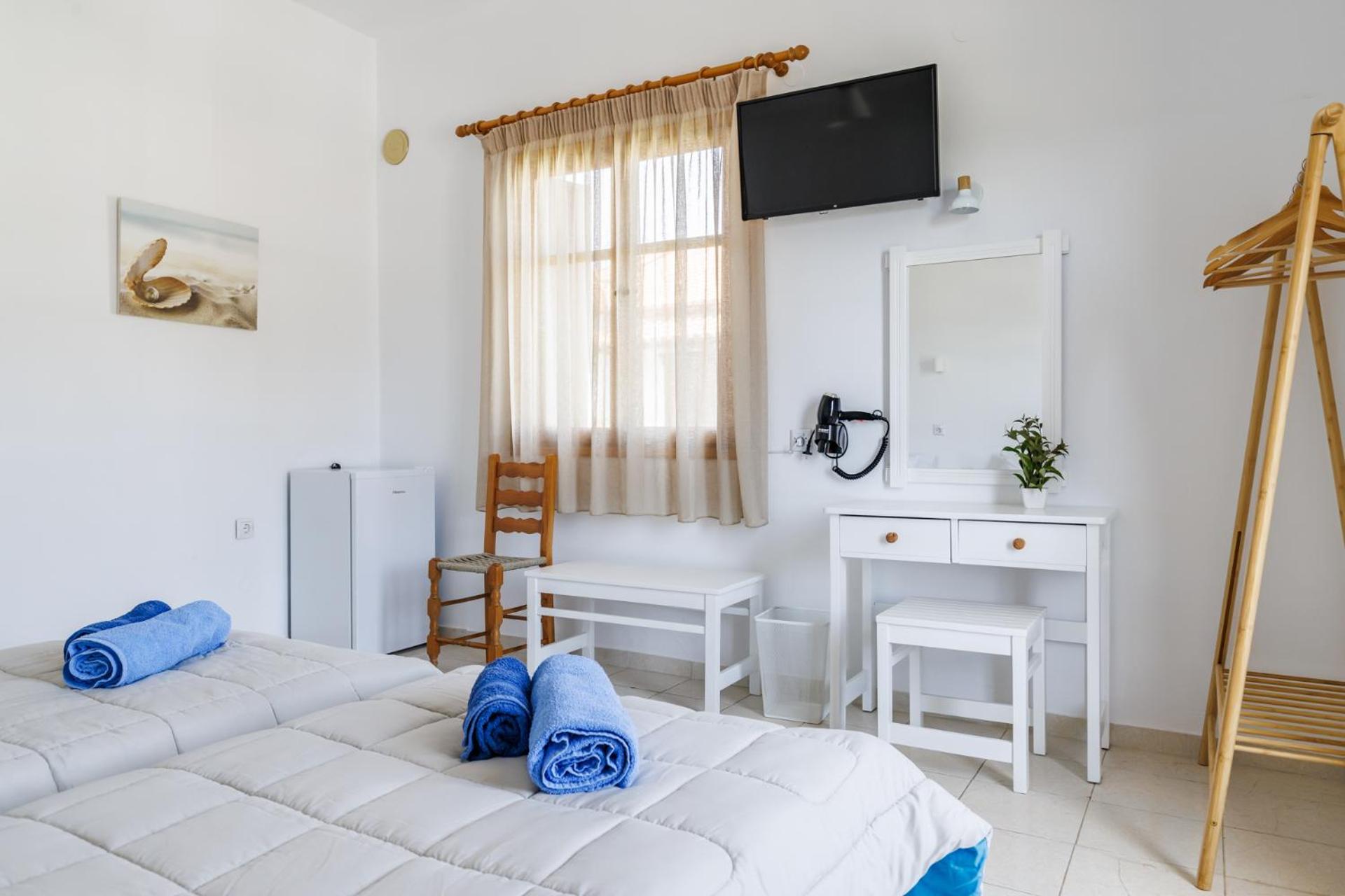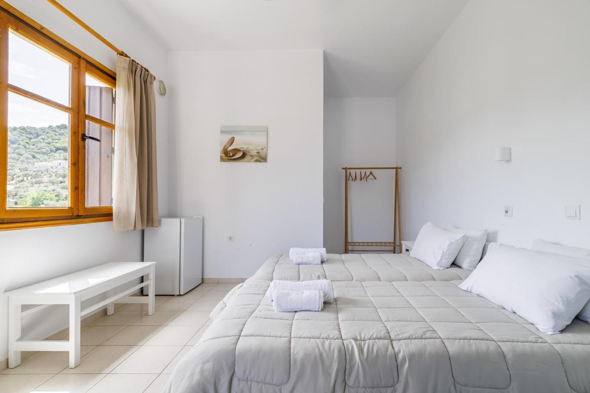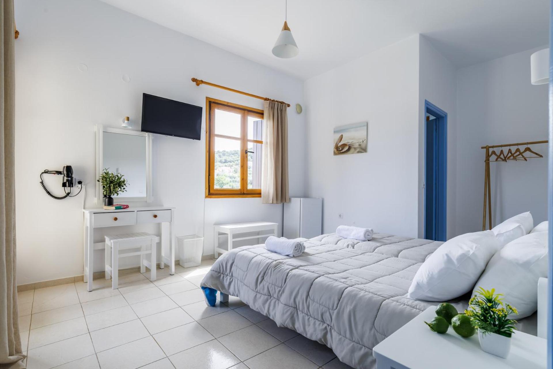 The room was not equipped with window screens to ensure insects would stay out (although we did not face such a problem, apart from one mosquito, witch is normal for Greek countryside)