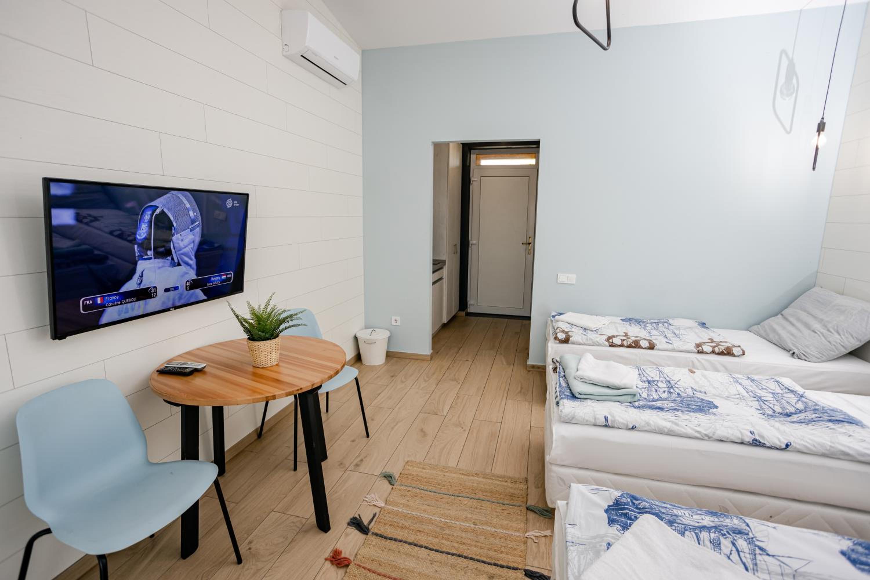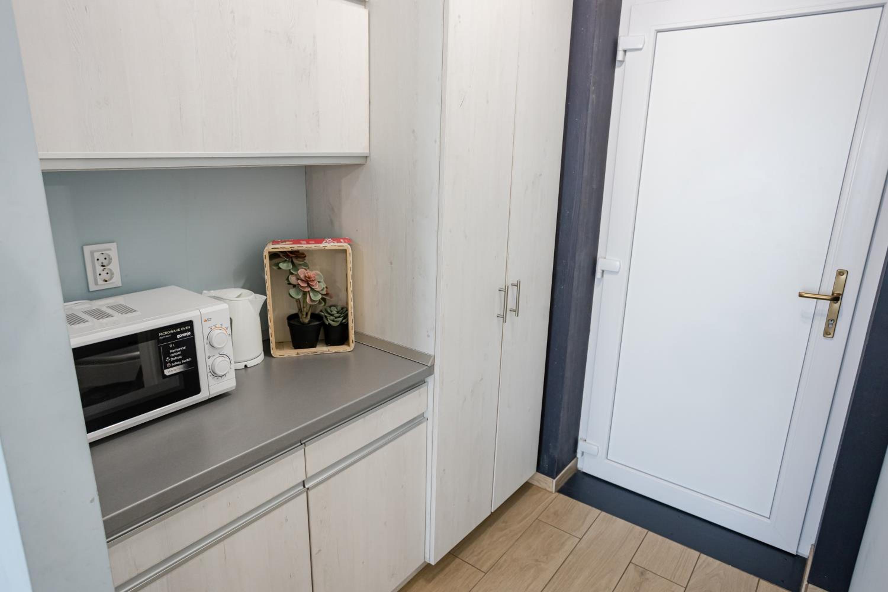 A kiegészítő egység hiánya mint például konyha pult hiányoltam. Hűtőszekrény és mikrohullámú valamint vízforraló van, de ezt egységesen egy konyhapulton össze rendezve étkészletekkel, mosogatási lehetőséggel, szívesen venném. Így egy könnyű reggelire vagy vacsorára is volna lehetőség az apartmanban.