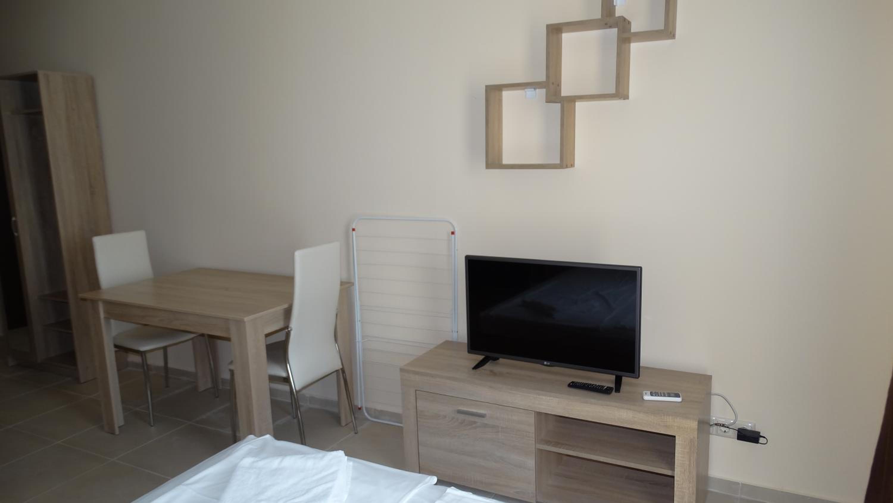 It was right next to the Black Sea., roomy apartment, with balcony. Beach area close by for swimming. Pool was lovely and clean. Our building complex had private, gated and locked parking. About 40 mins walk to the Nessebar old town. The local shops 10 mins walk away, supermarket and restaurants there. Also a couple of restaurants close to the hotel.
