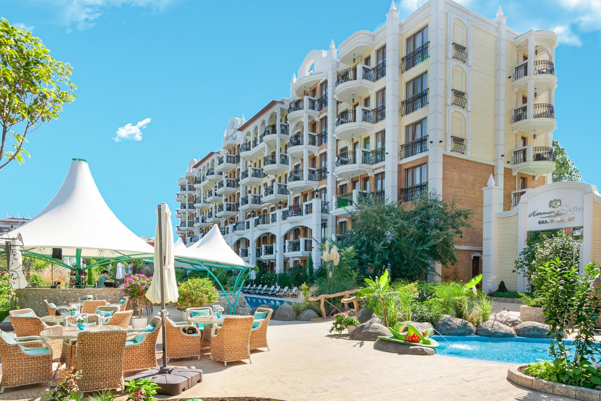 Book now at Harmony Suites Grand Resort for a delightful and convenient stay in Sunny Beach!