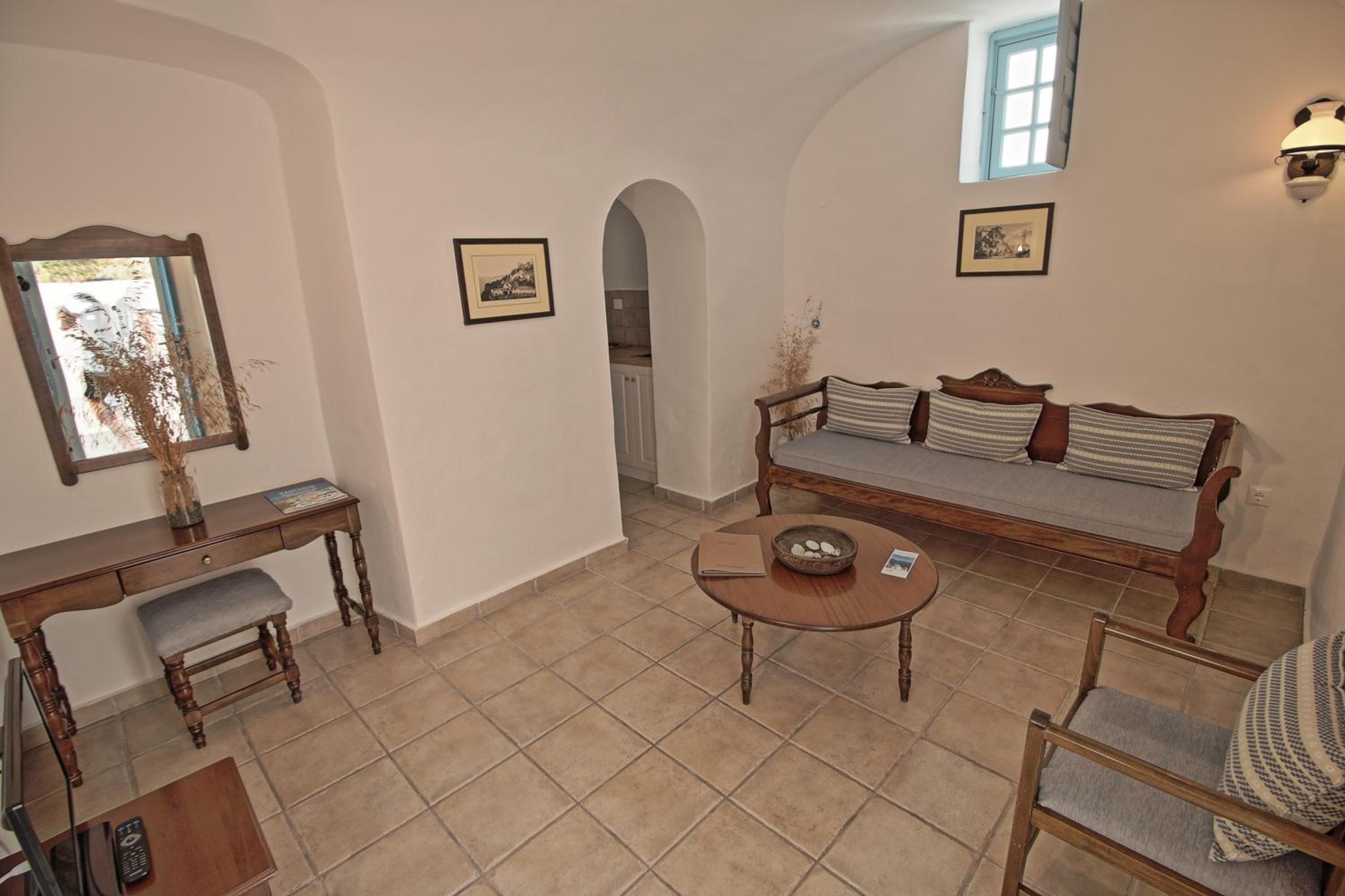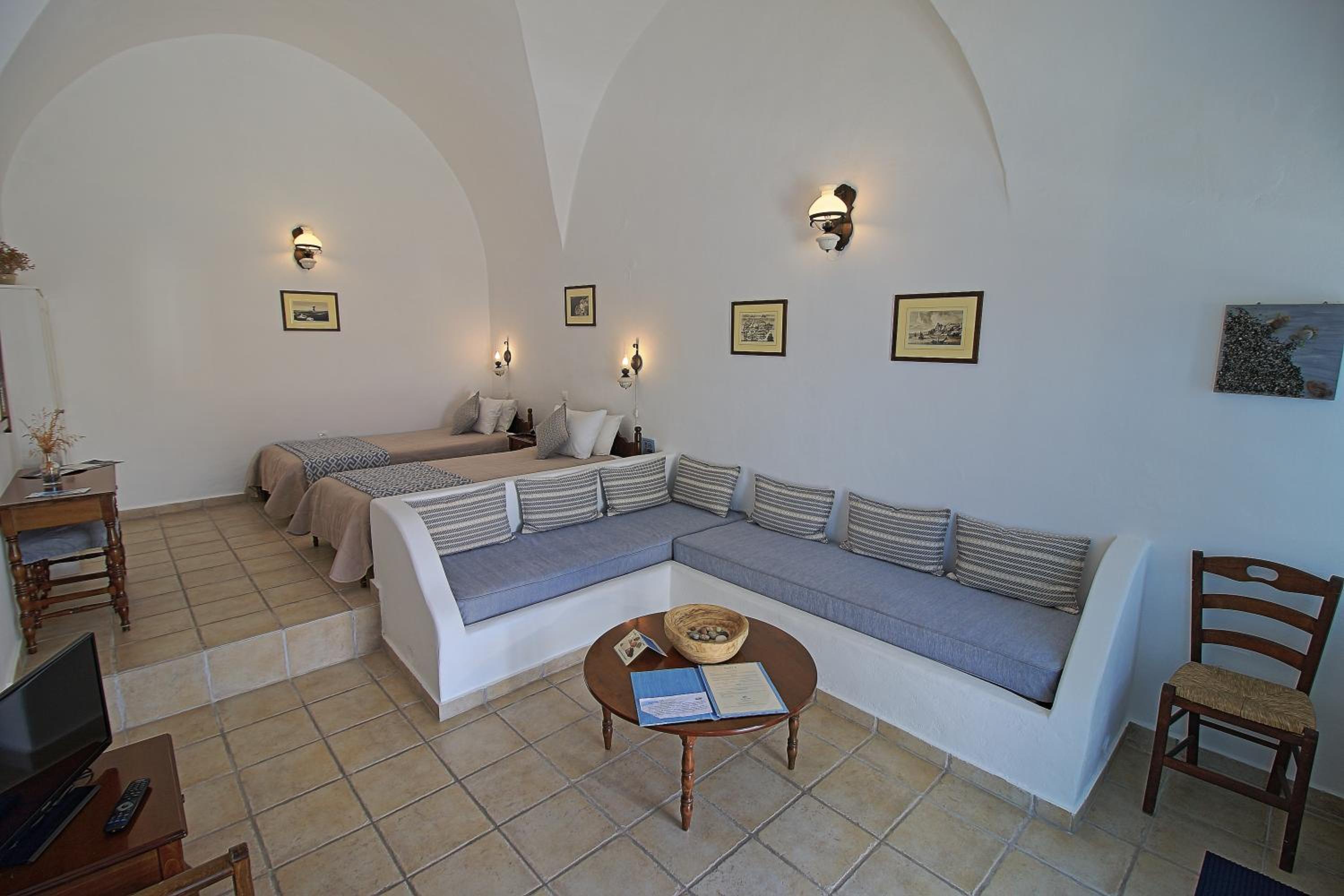 Relaxation and Leisure: Guests can enjoy a large swimming pool, a cozy breakfast room, and a lounge area with satellite TV. The rooftop terrace provides a serene spot to bask in the Santorini sun with breathtaking sea views.