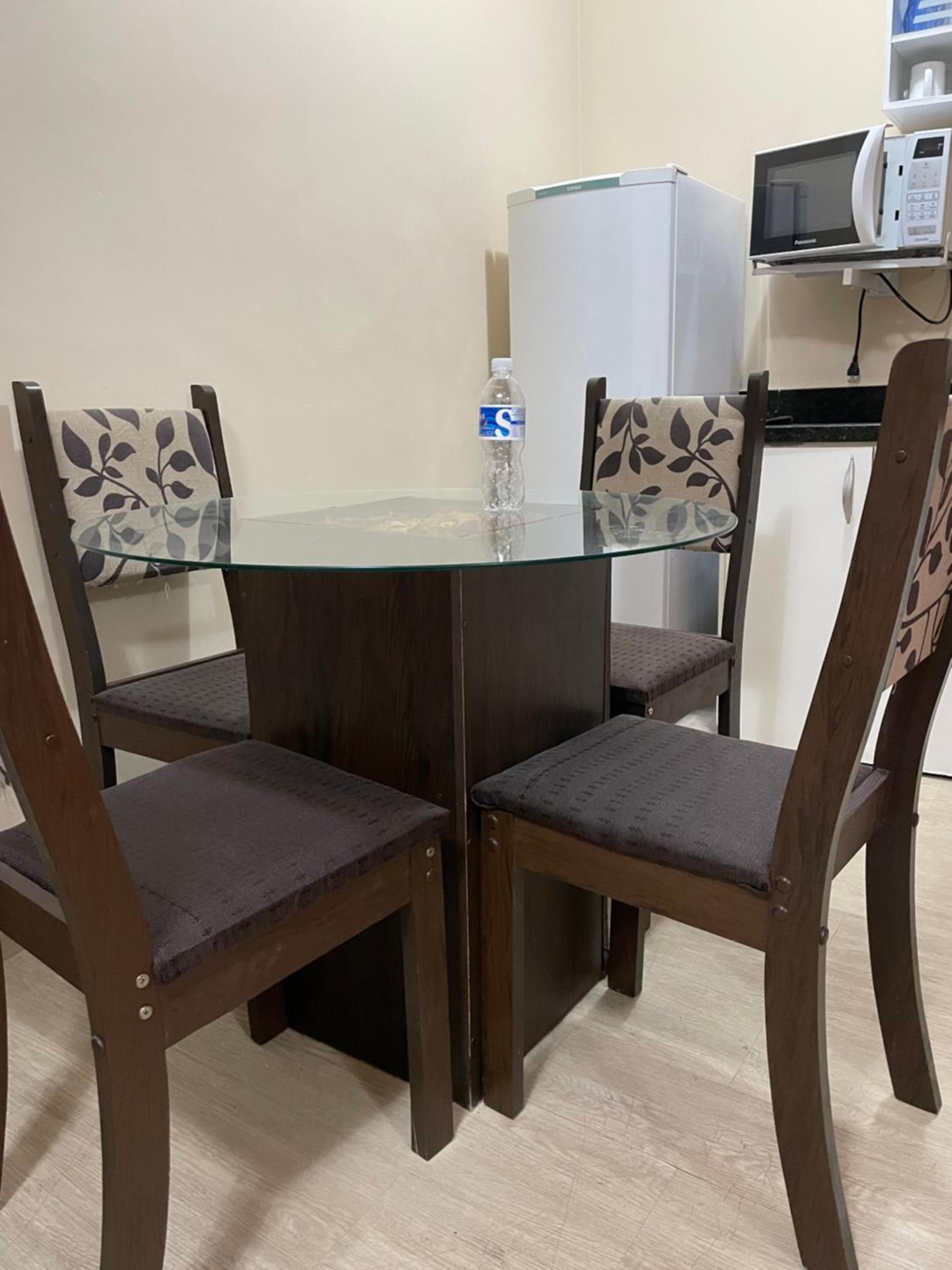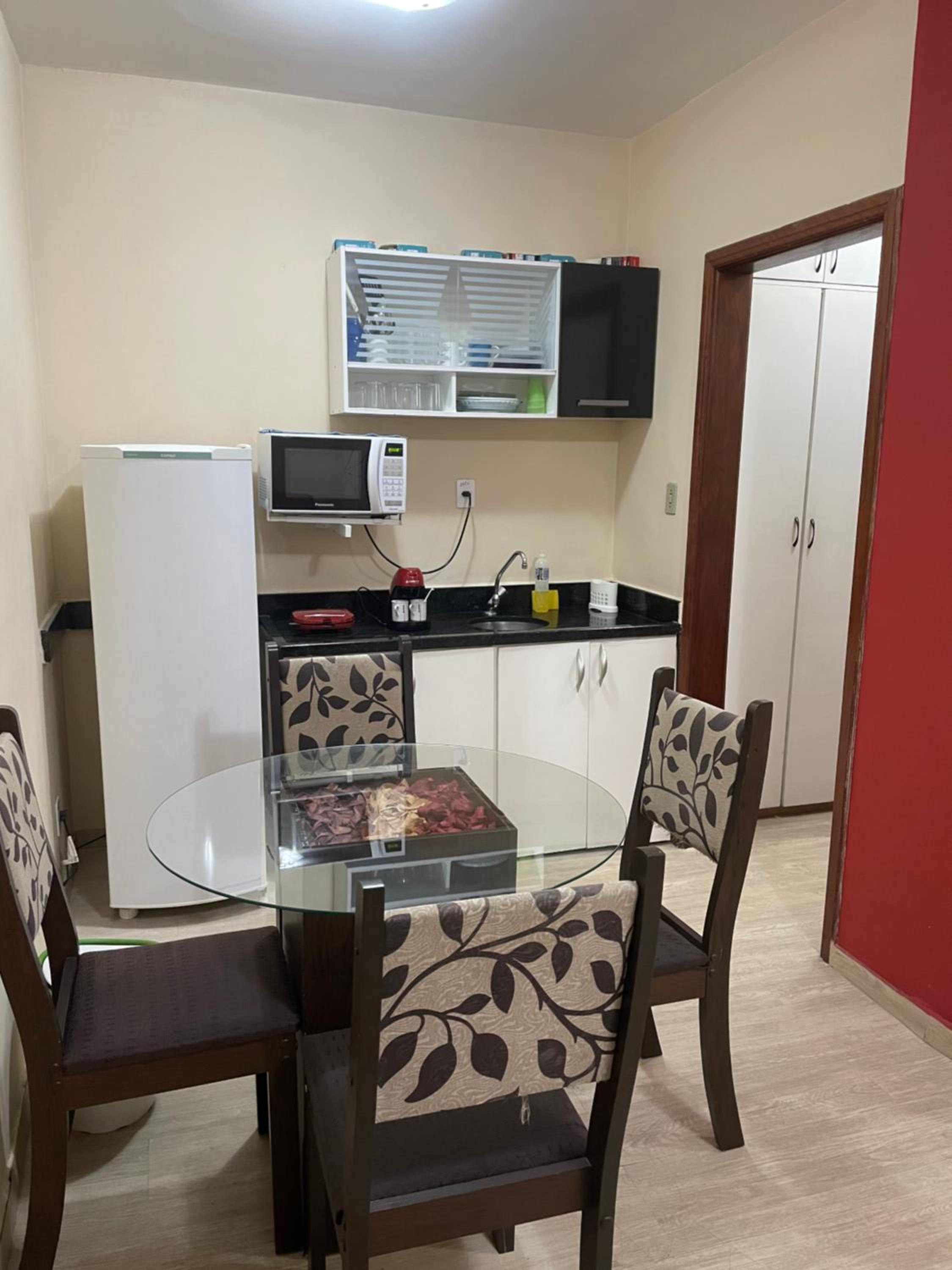 Na cozinha faltam vários itens básicos. Há panelas, porém não há fogão, nem mesmo um cooktop elétrico, o que torna o lugar pouco funcional para estadias mais longas.