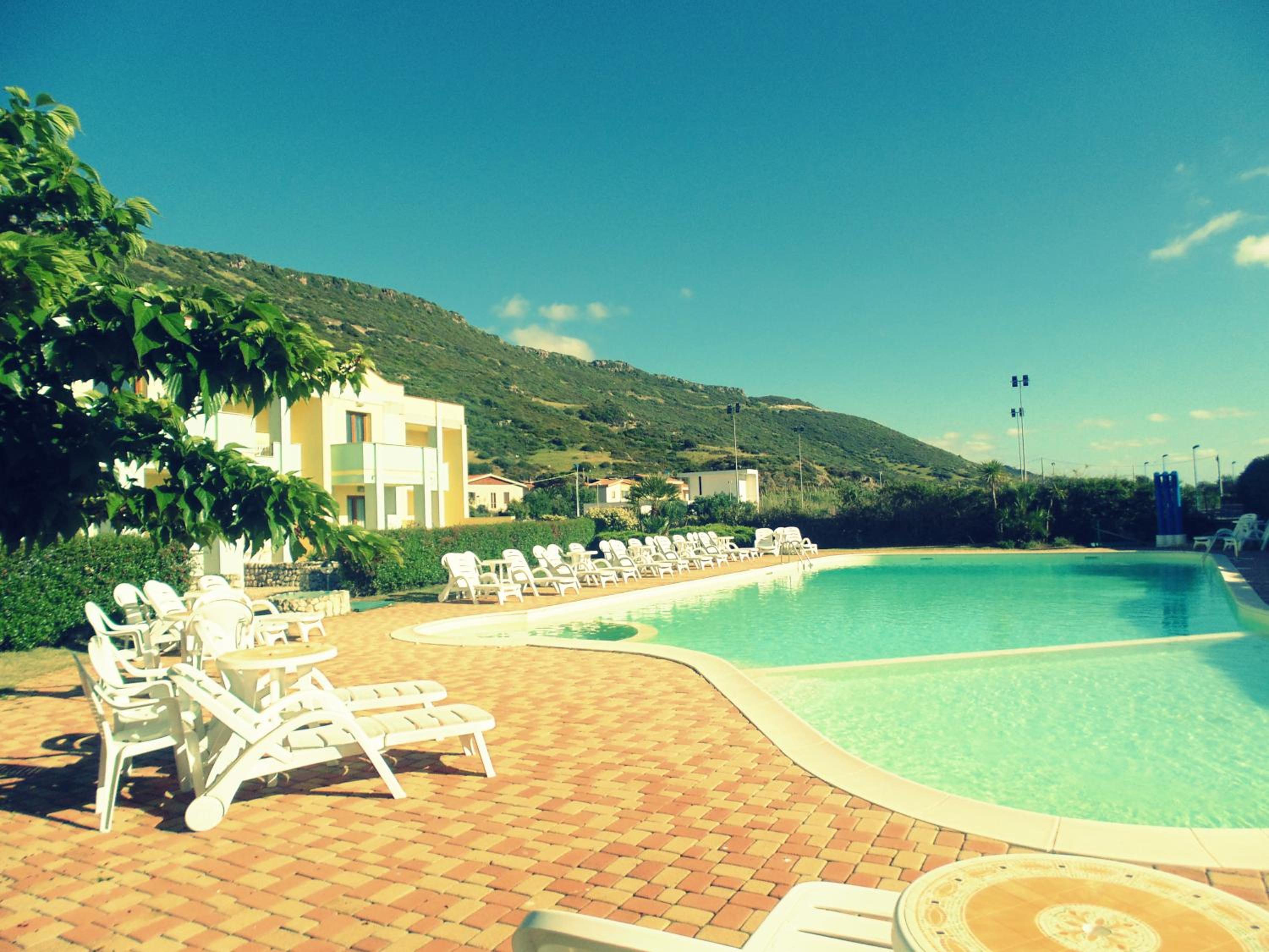 Die Gartenanlage und der Pool waren sehr angenehm. Der Strand ist fußläufig eine Straße entlang gut zu erreichen, die Altstadt von Bosa eher mit dem Auto.