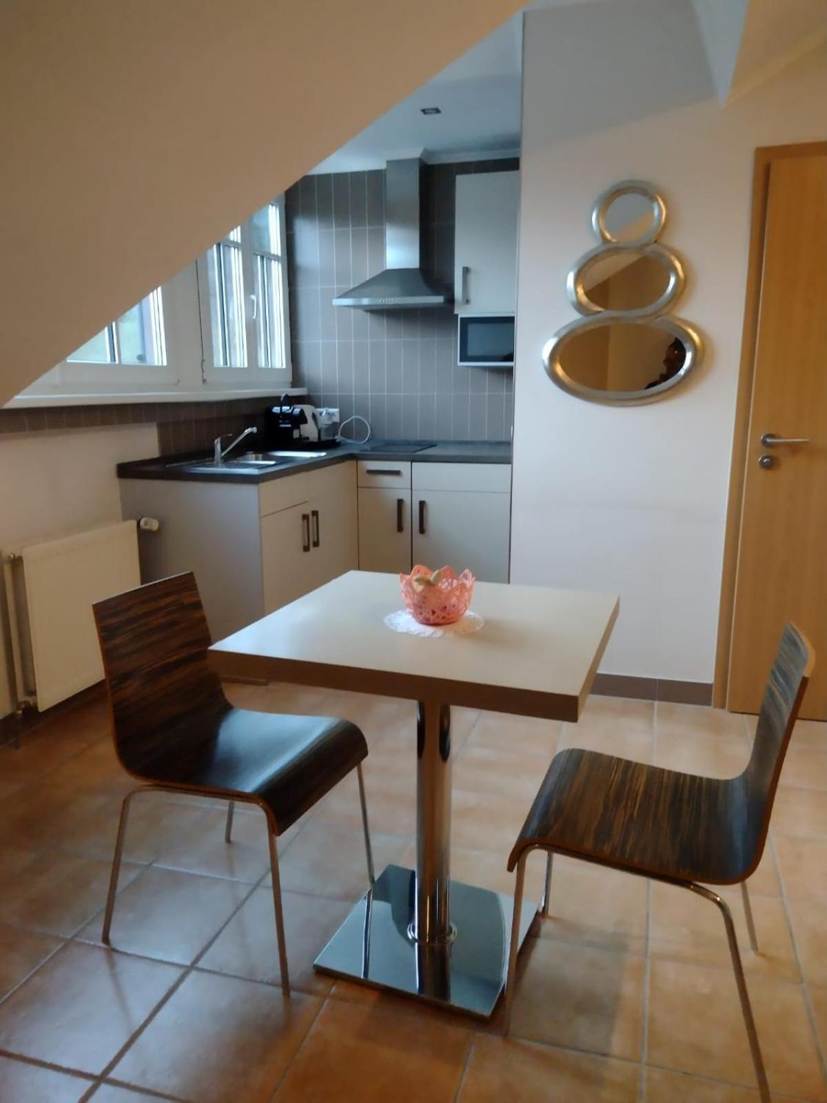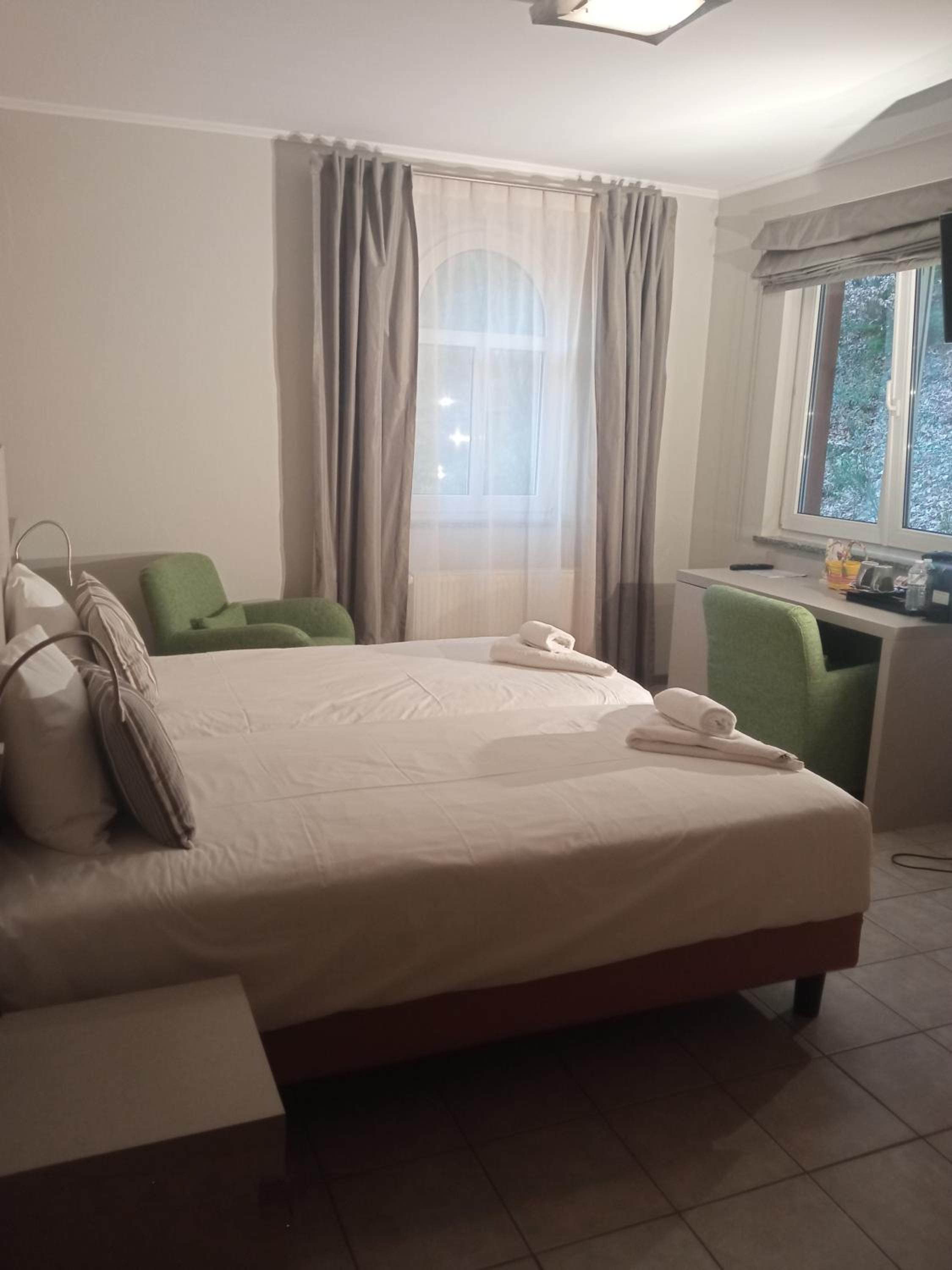 L'accoglienza all'arrivo, la simpatia e la disponibilità del receptionist, che ci ha fornito tutte le info utili per il nostro soggiorno in Lussemburgo. L'hotel è situato in un contesto tranquillo, ai piedi di un bosco, in posizione strategica per ogni direzione e autobus (gratuiti). Le camere erano estremamente pulite e dotate di ogni comfort, soggiorno con cucina attrezzata, caffè, tè e acqua che vengono riforniti quotidianamente. C'era persino del cioccolato. A fianco dell'hotel, c'è un minimarket molto ben fornito, fast food e distributore di carburante. Ristoranti vicini, a pochi km.