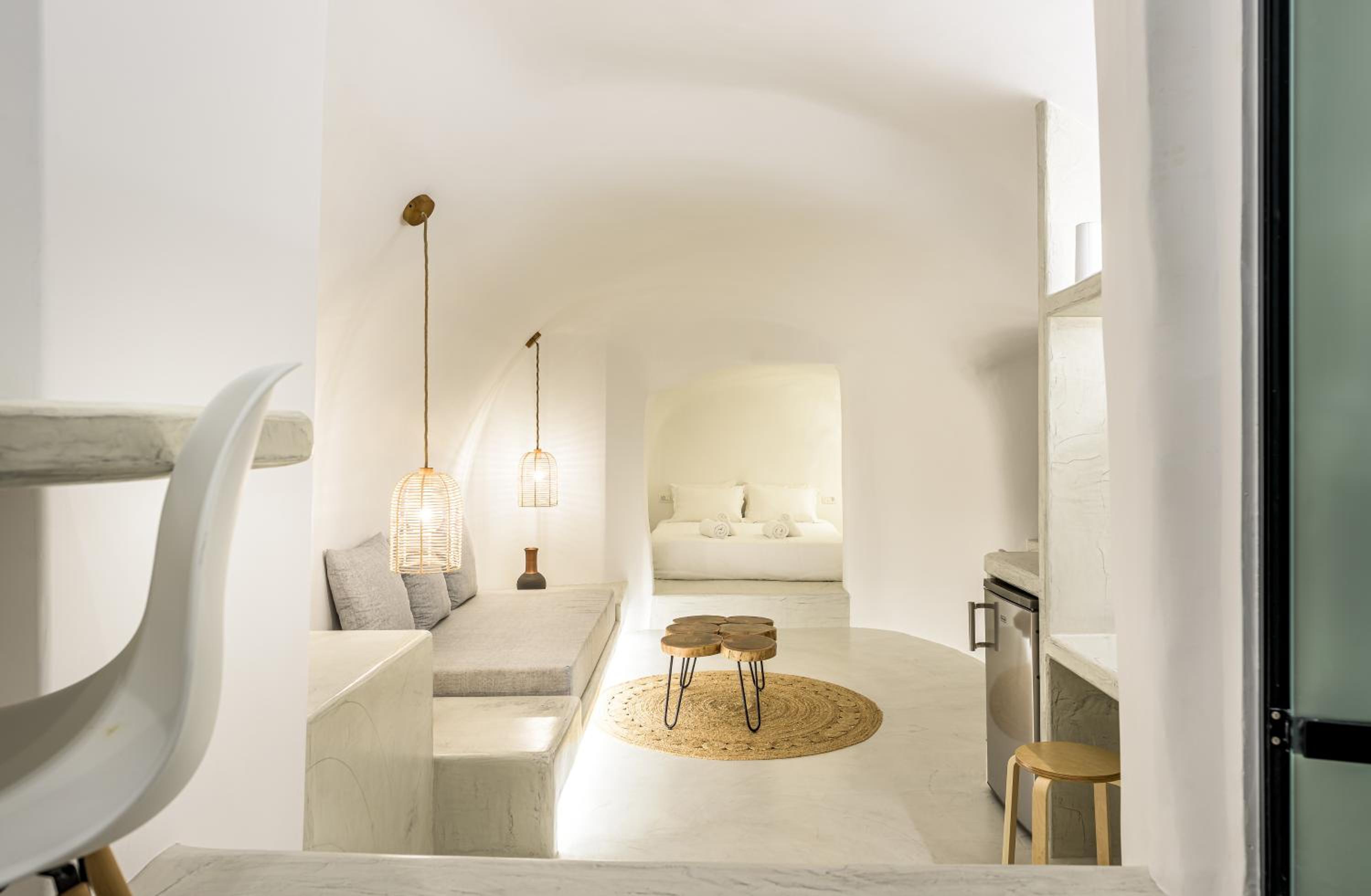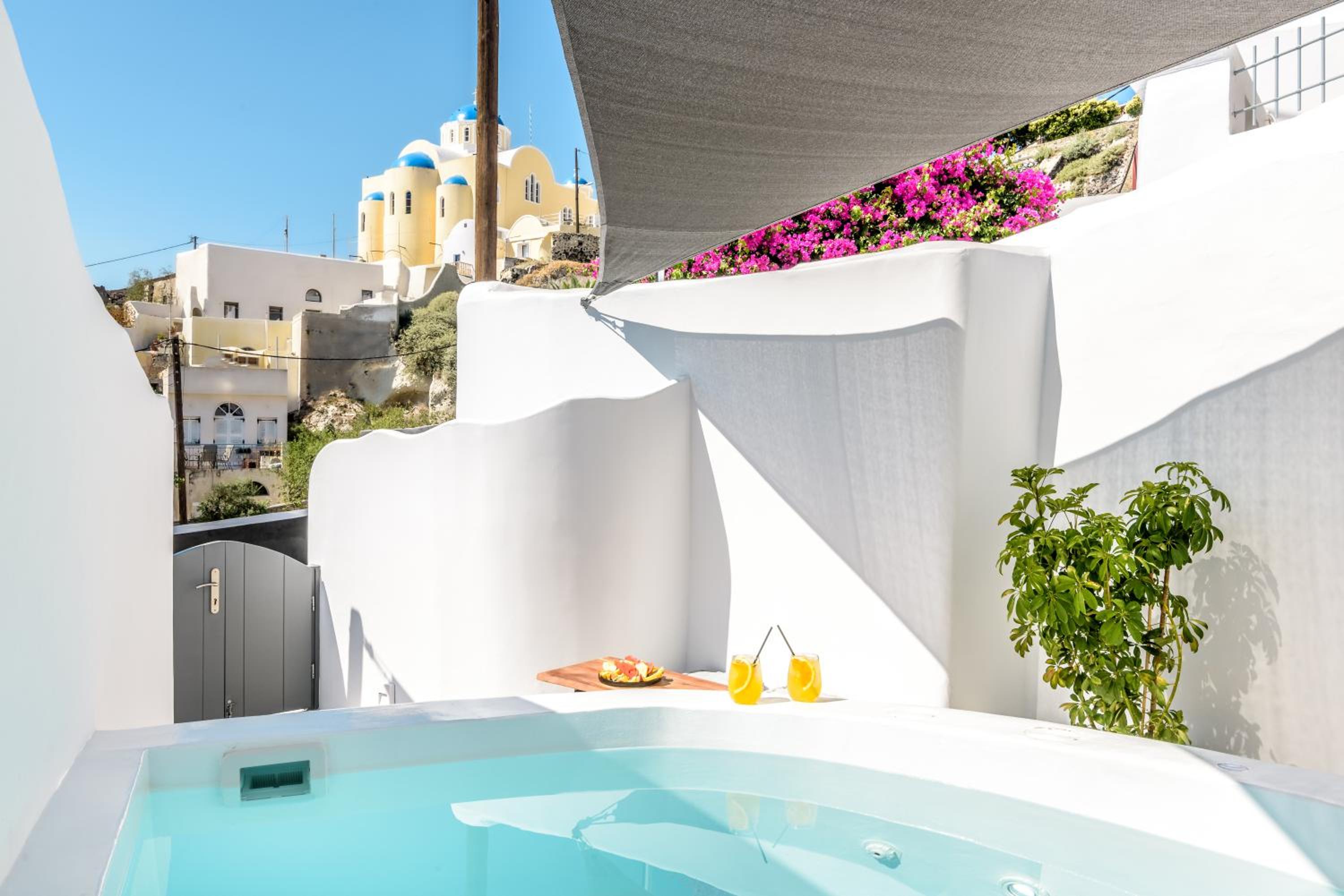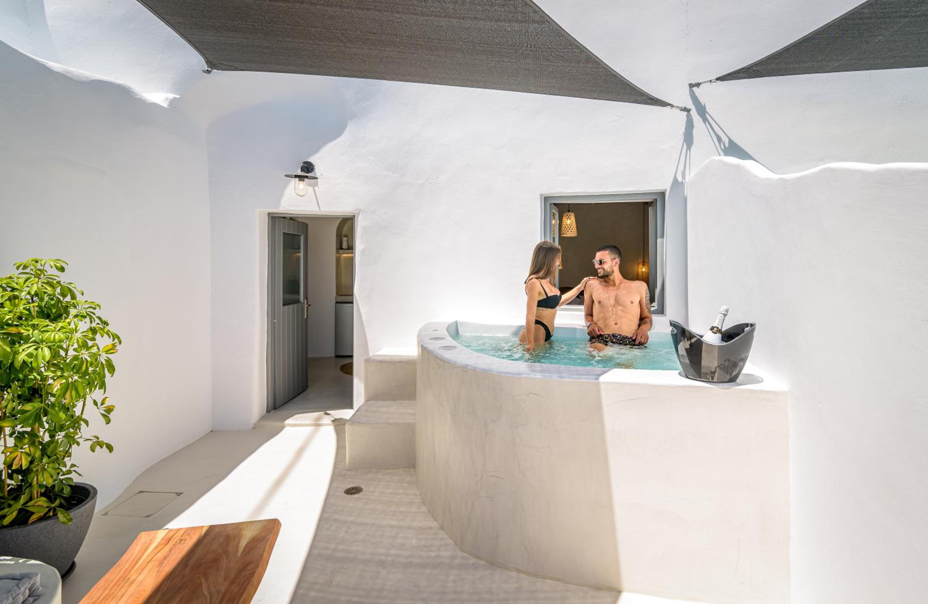 A nicely decorated, spacious cave appartment with comfortable bed and nice bathroom (which tends to develop a cave-like mustiness). The highlight is the small jacuzzi on the inner courtyard. Good airconditioning and WiFi. Pretty expensive, but nice for a short stay.