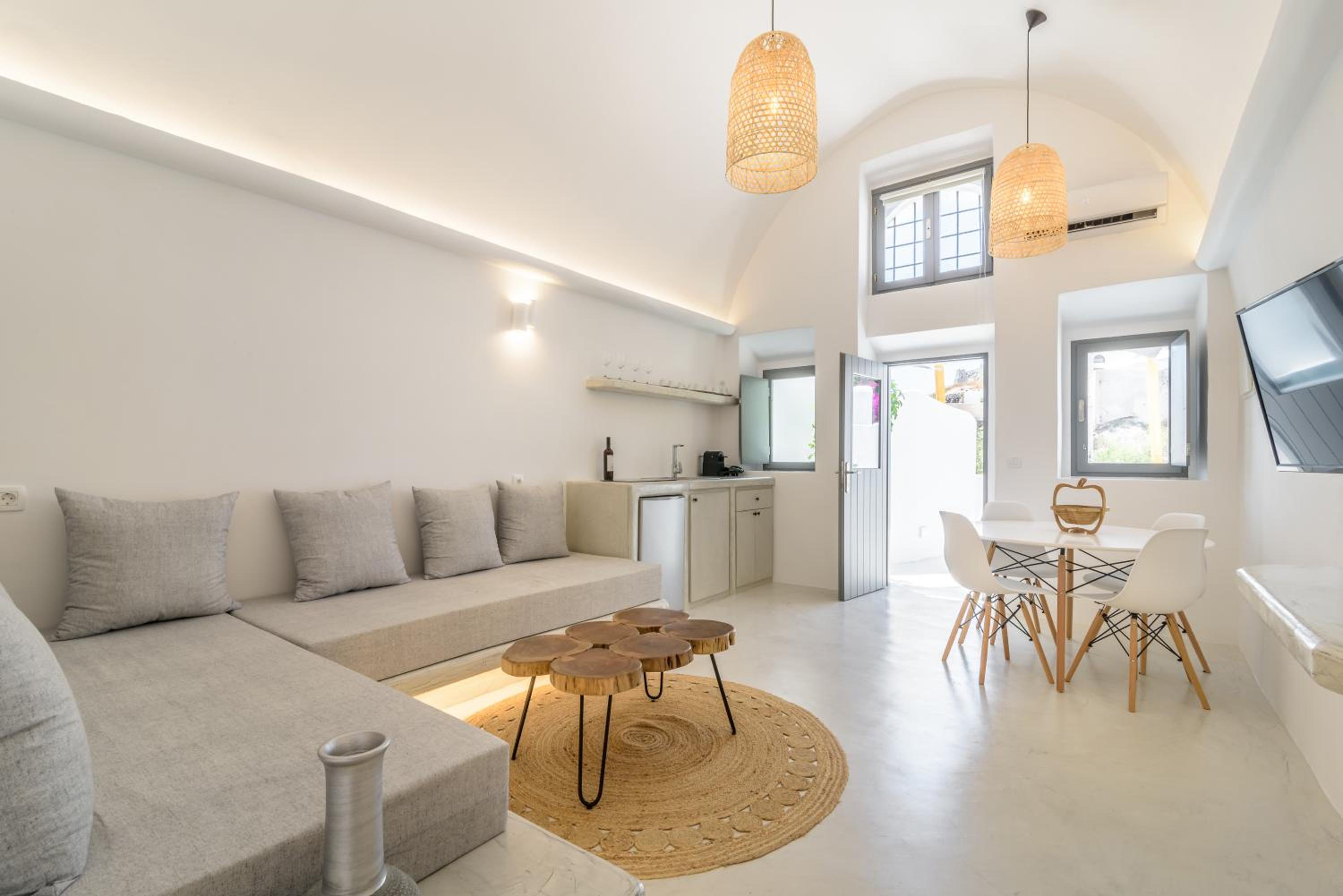 The apartment was a cave style accommodation. It was clean and and comfortable. The host was very helpful and met us to help us find the accommodation. They were also flexible with our check out time. The apartment was a 10 minute walk from the main area of Fira and 15 minutes to the bus stop (20 with accommodation).
