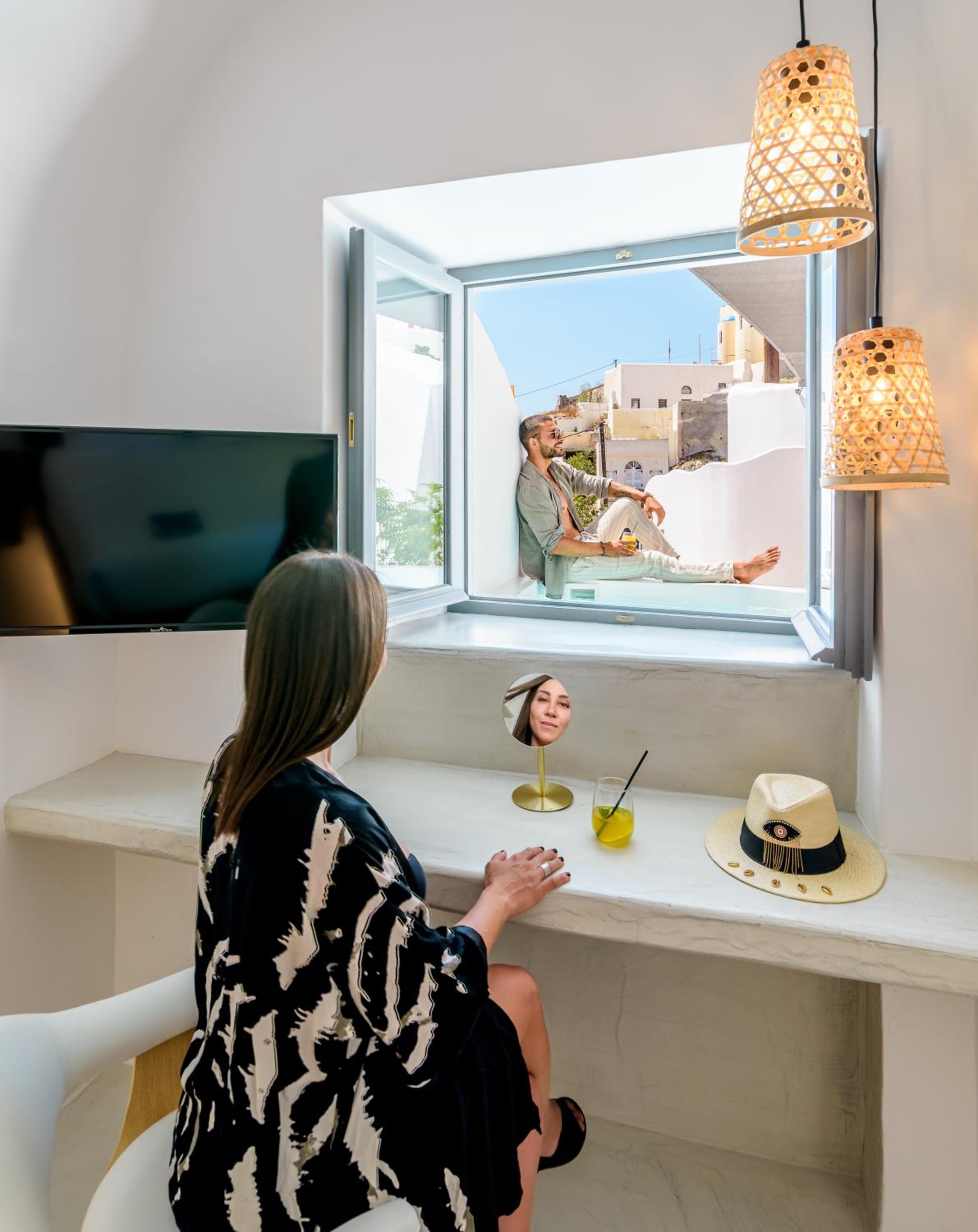 Convenience at Your Fingertips: From a safety deposit box to a flat-screen TV and more, we provide everything you need for a comfortable stay. Book now and experience the beauty of Santorini at Anila Suites.