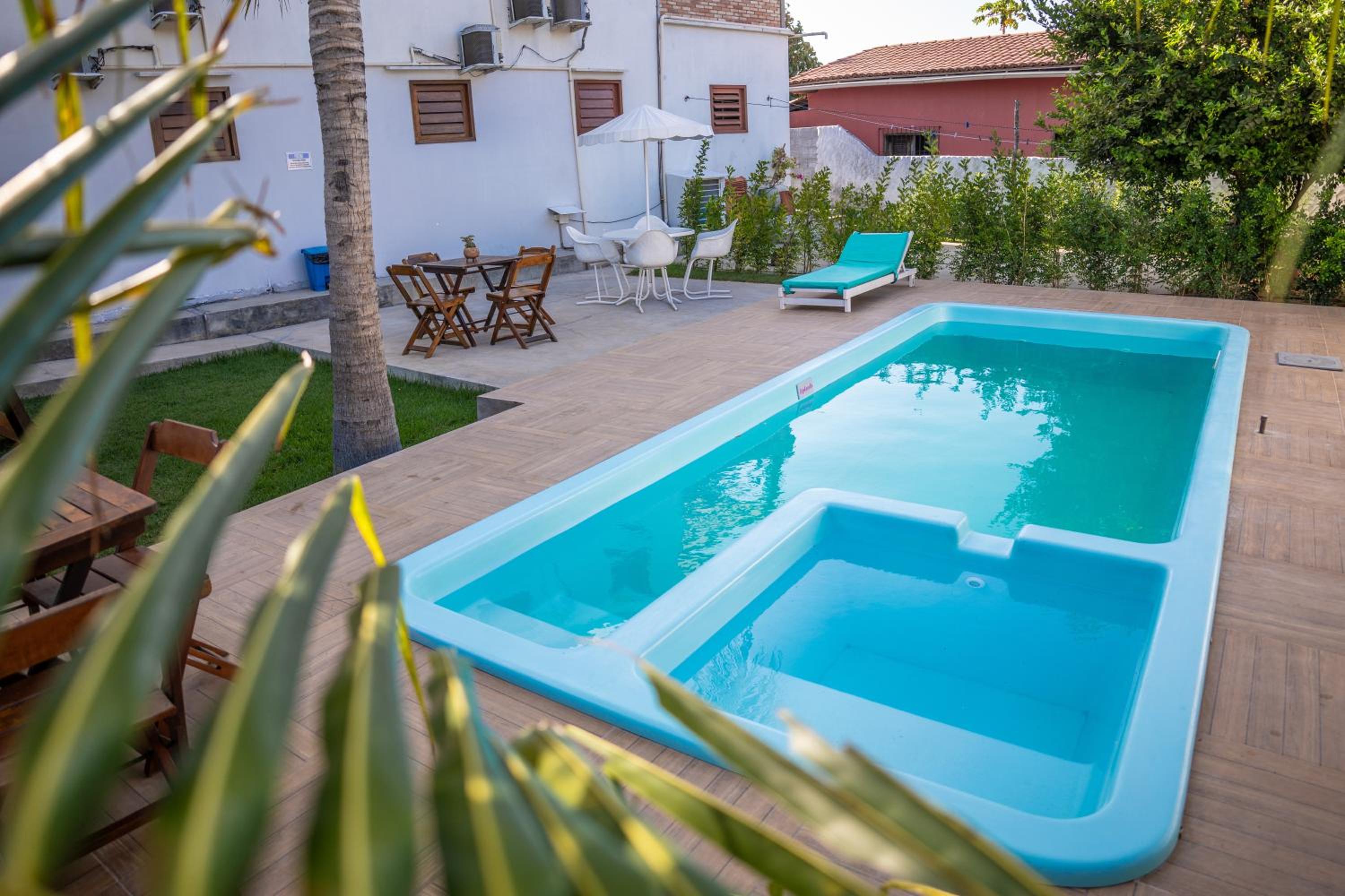 Enjoy a relaxing stay at Flats Villa Gelú with its refreshing outdoor swimming pool and lush garden, perfect for unwinding under the sun.