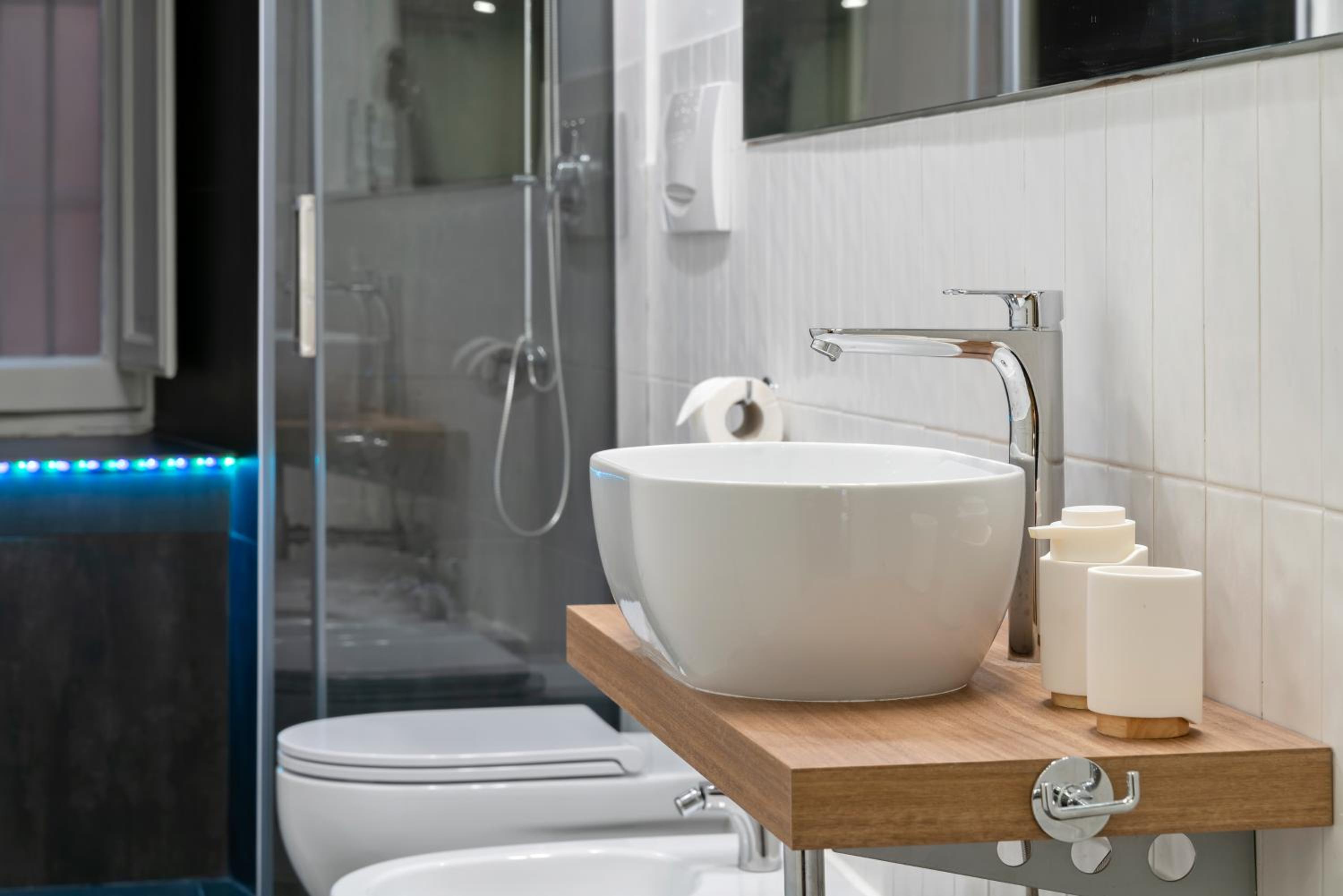 There are three bathrooms, one has been recently renovated but the other two not so much. In the one for the double room, the shower head is attached parallel to the wall and you cannot turn it, so is pretty much unusable, we all had to shower in the other one.