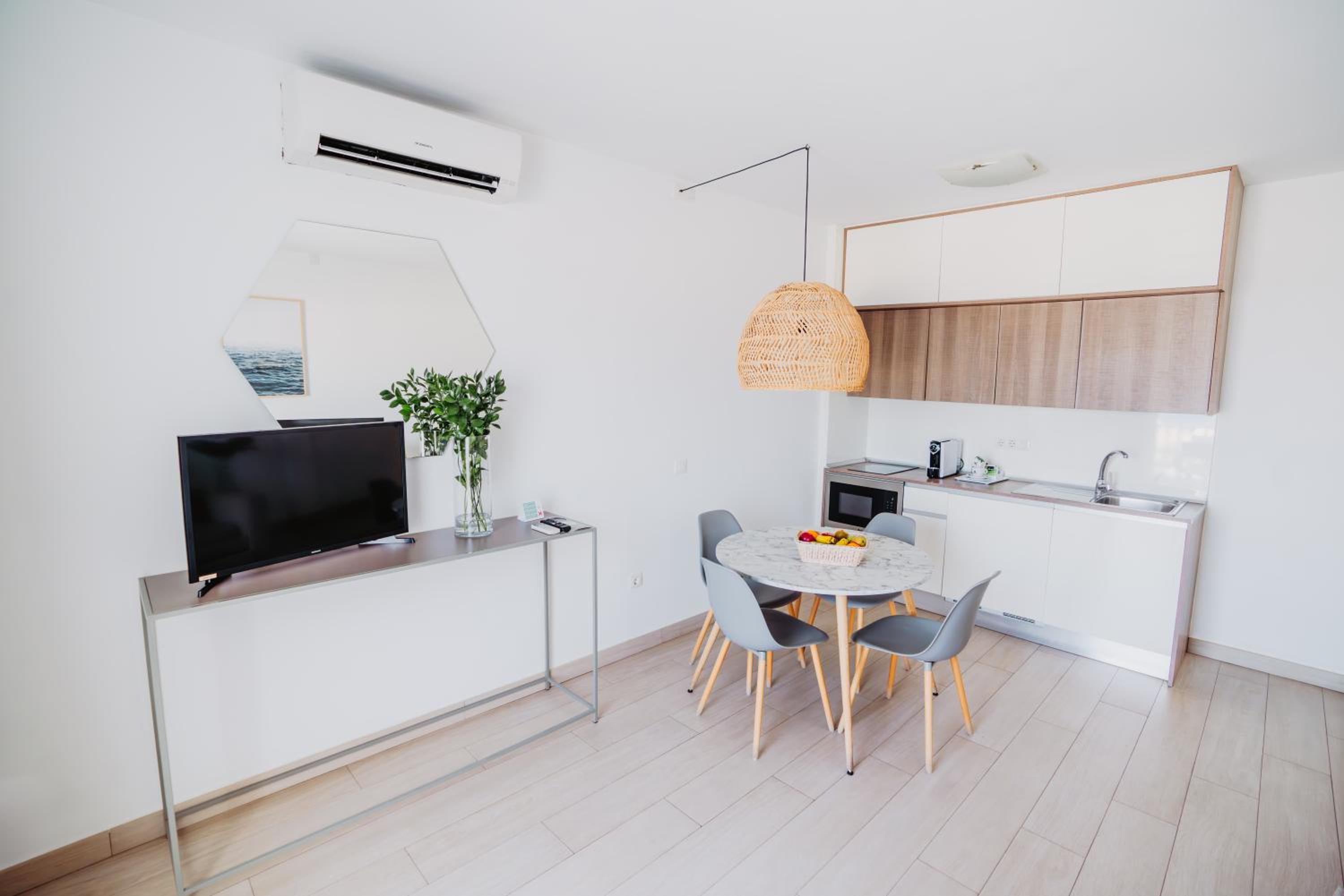 Relax in spacious and modern apartments featuring terraces with stunning views. The well-equipped kitchenette and comfortable living room ensure a cozy stay, while the flat-screen TV provides entertainment.