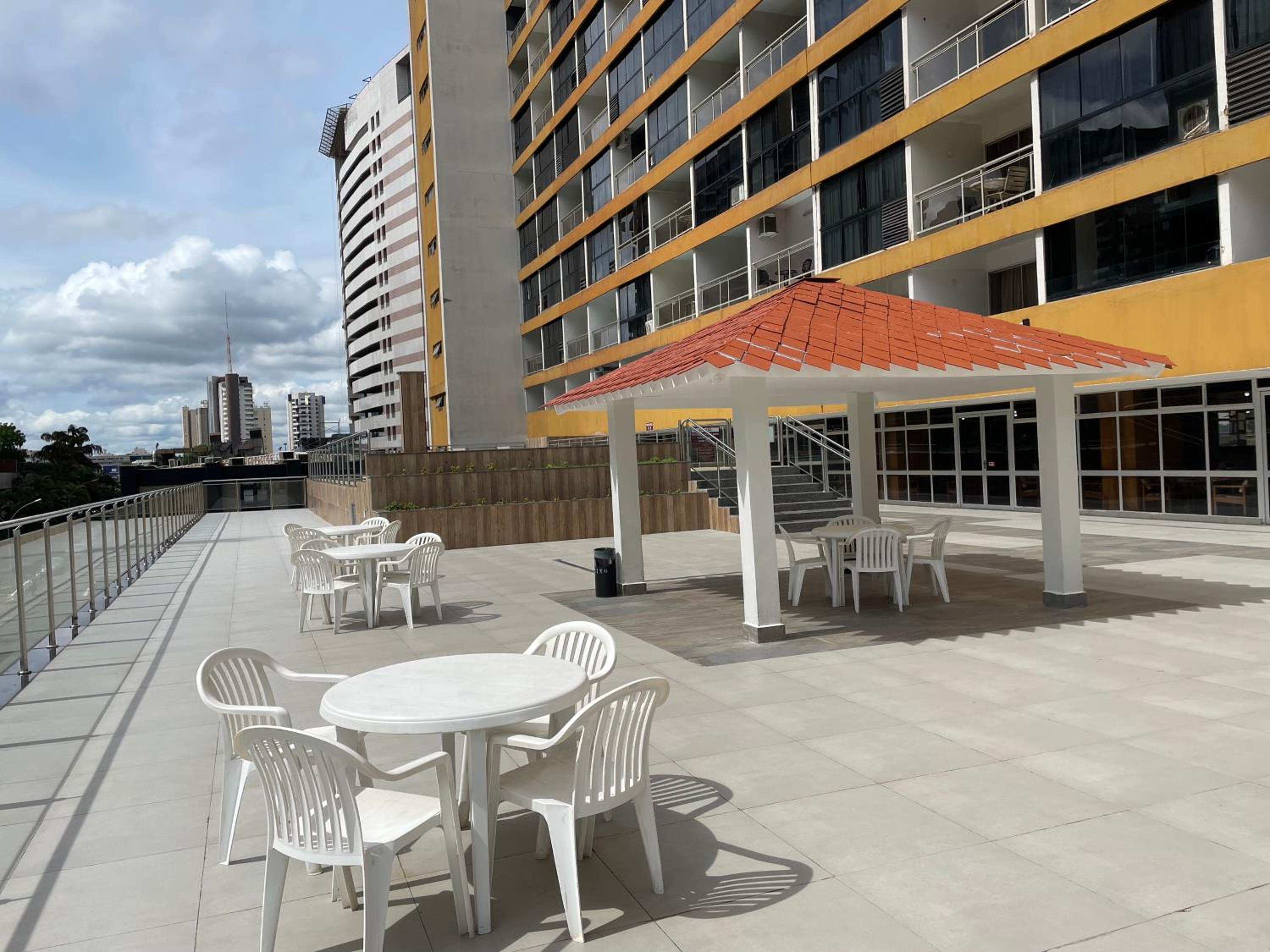 Porém cheguei e estava todo o prédio em obra, precisei entrar por trás e lógico que a piscina que foi o que me fez escolher a hospedagem estava interditada.