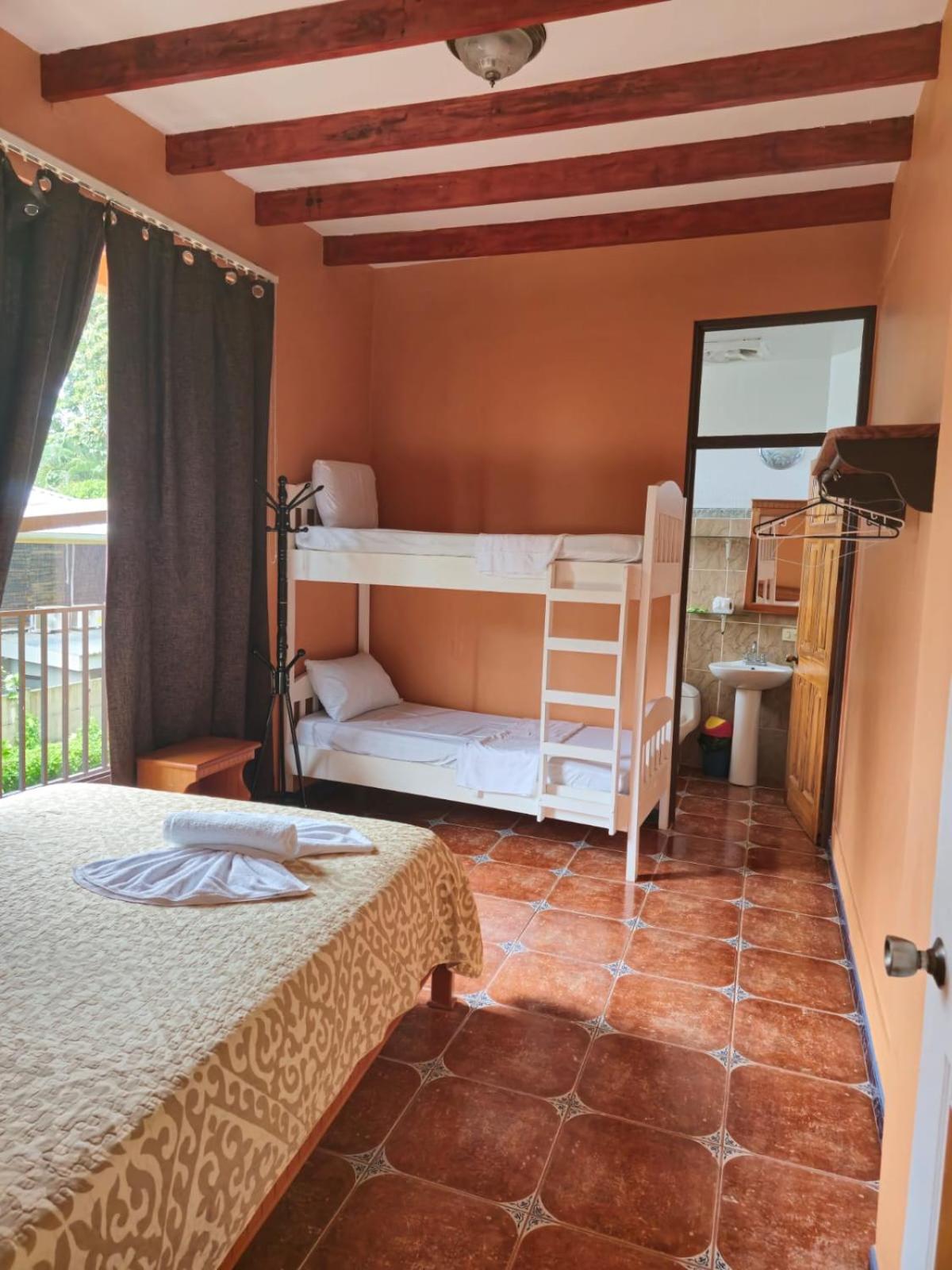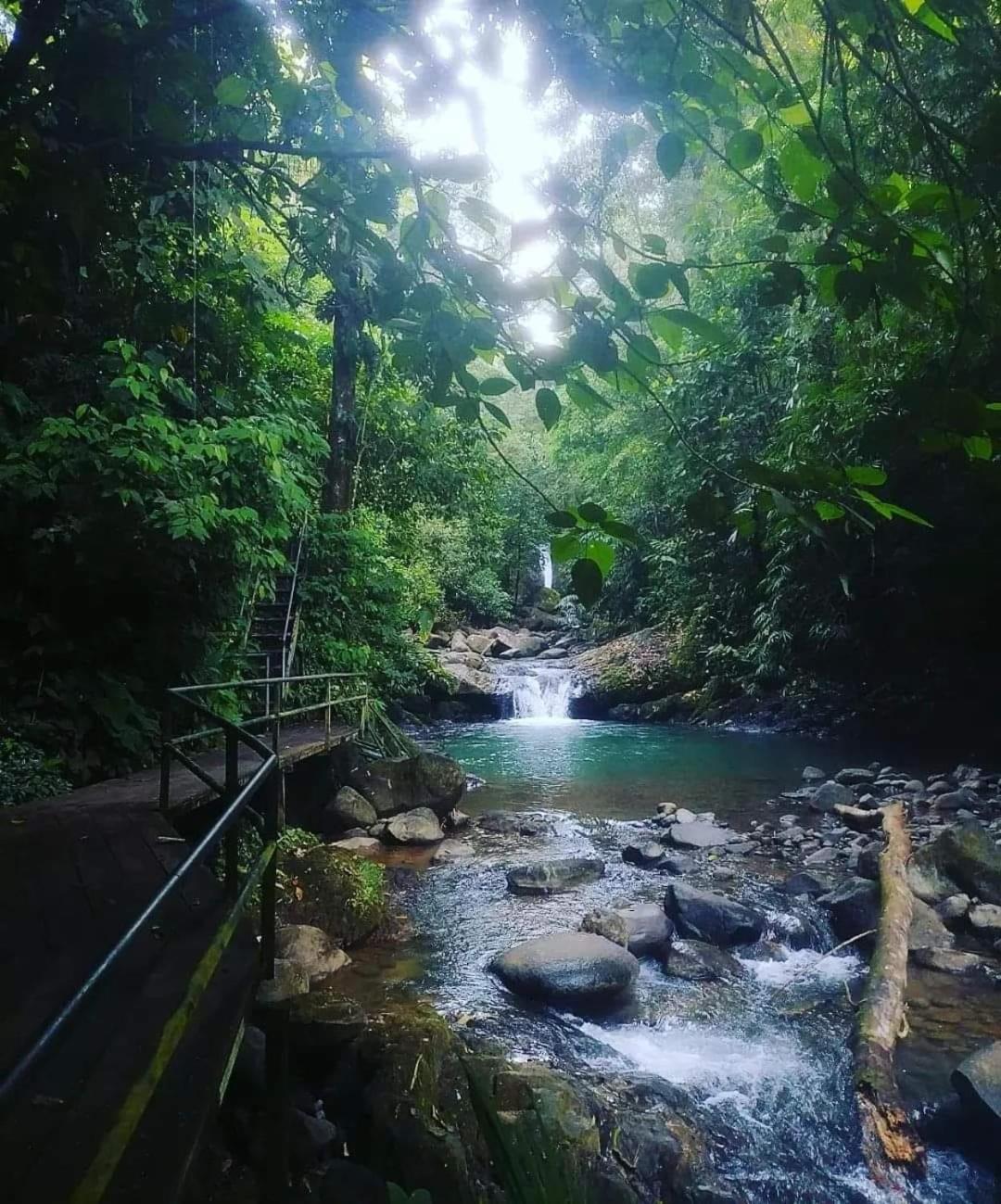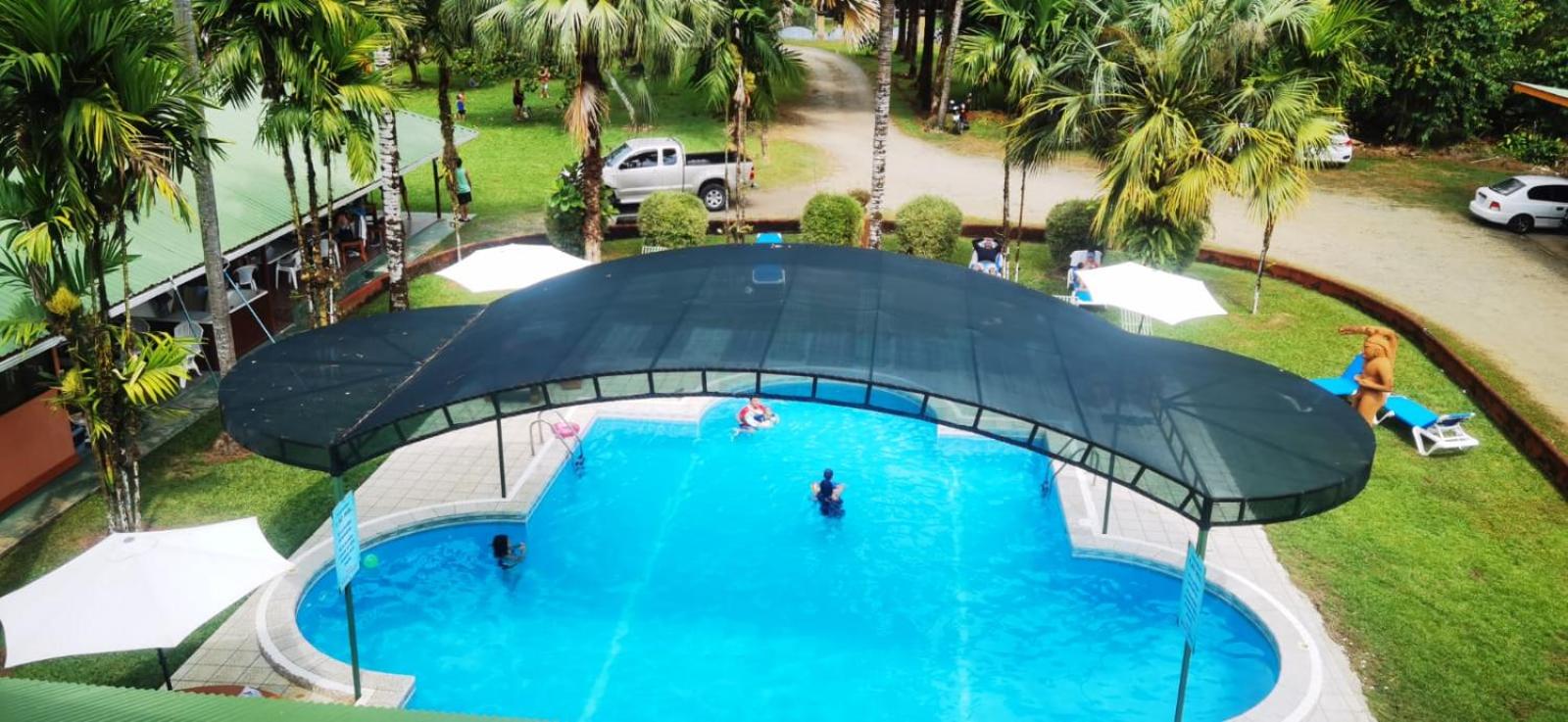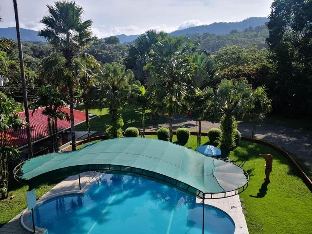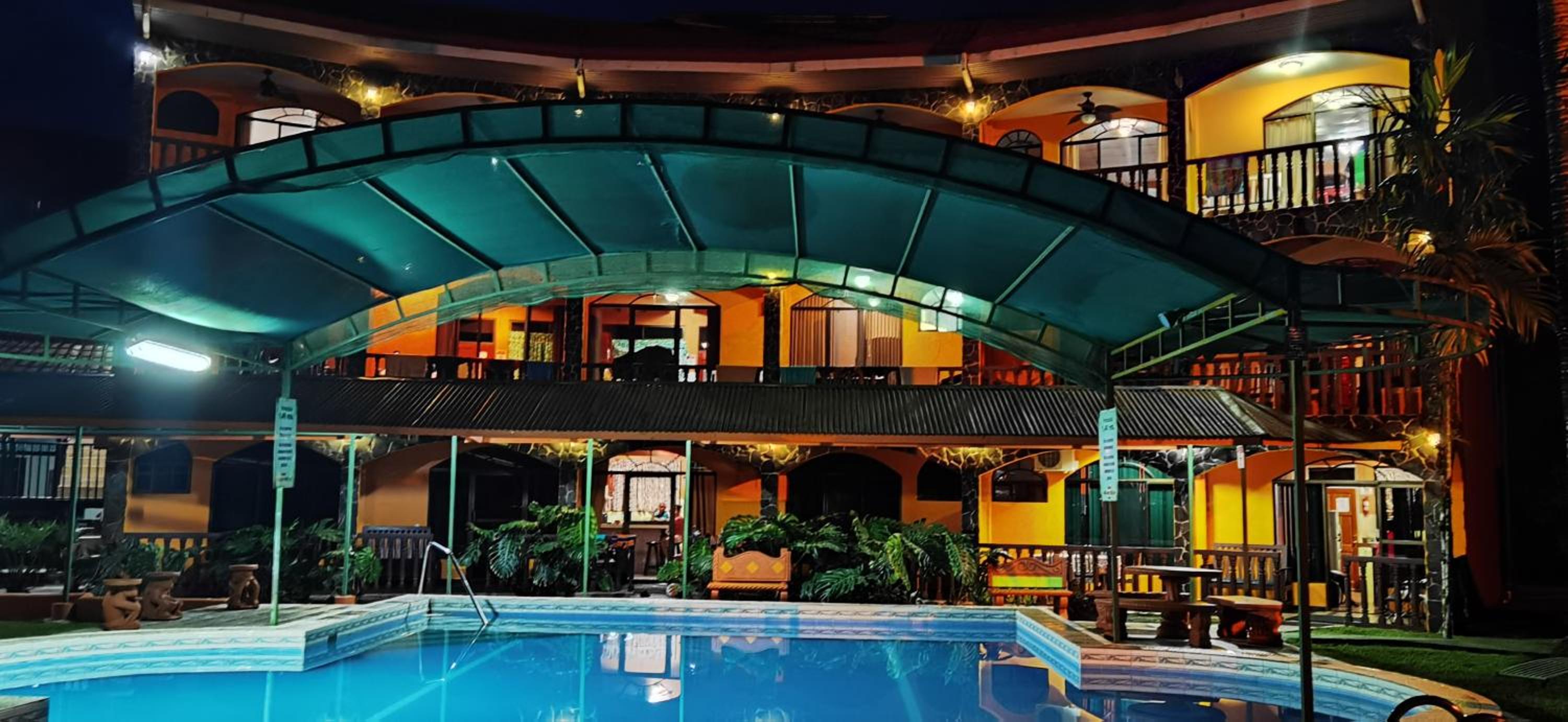 Right off main road but quiet ,on the edge of the jungle. Wildlife abundant on property.Saw iguana toucans frogs macaws and other colorful birds.Good pool . Rooms were good. Armando was super helpful,spoke great English,gave great recommendations on restaurants (Tex Mex adjacent to property)Left my headphones and he what apped me and put them in mail on his own time and they caught up with me at my next stay in Puerto Jimenez.Covered parking fully equipped kitchen hot water gated entrance. Thanks Armando.