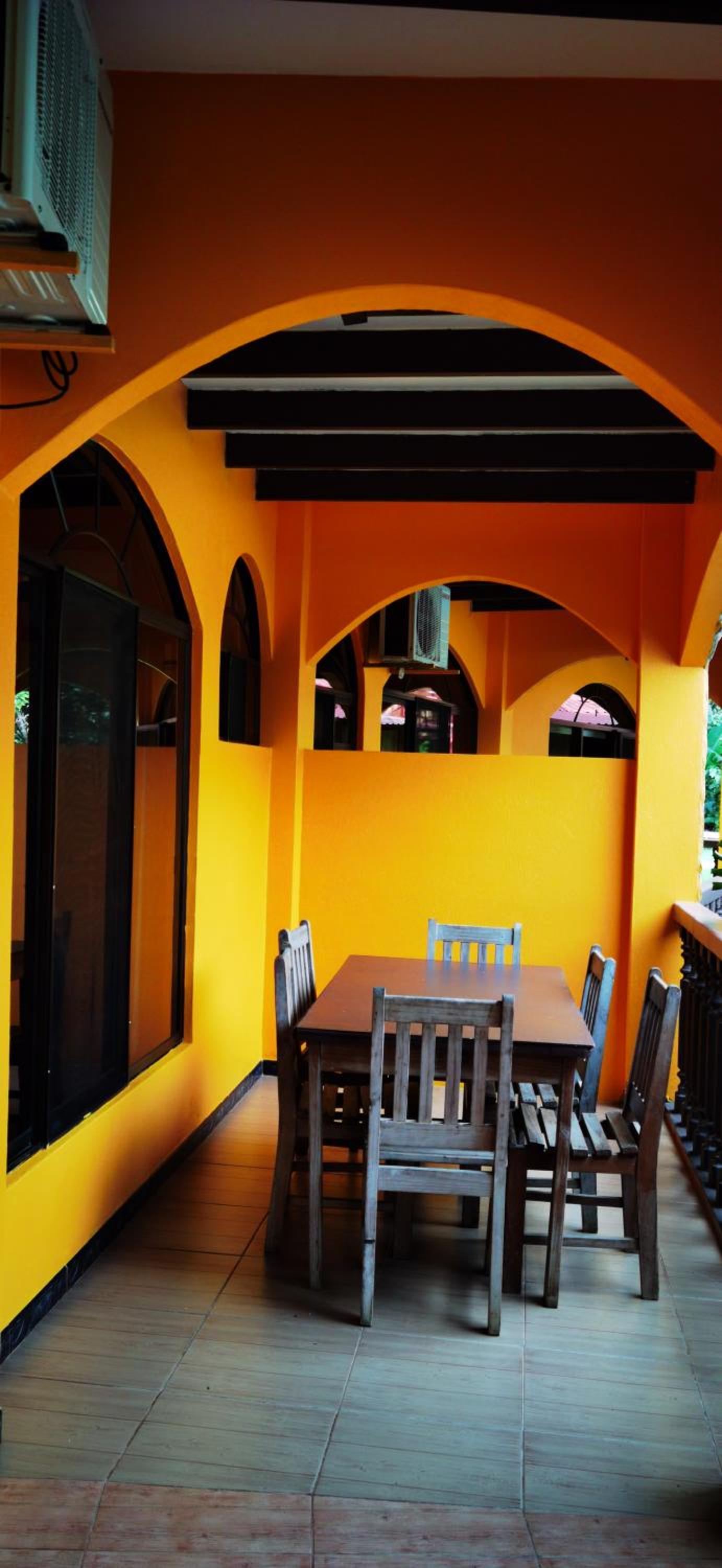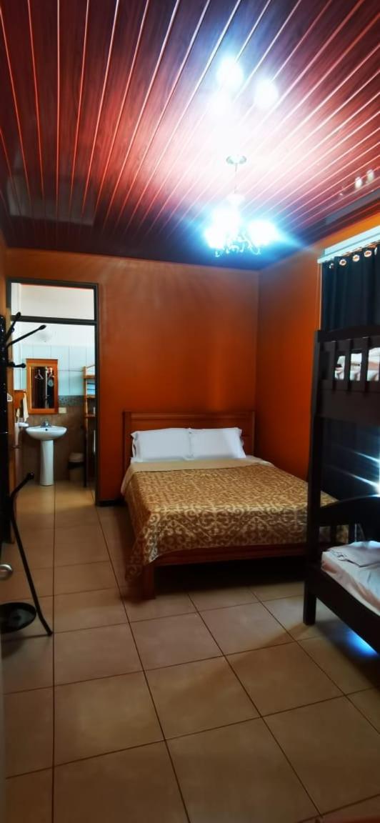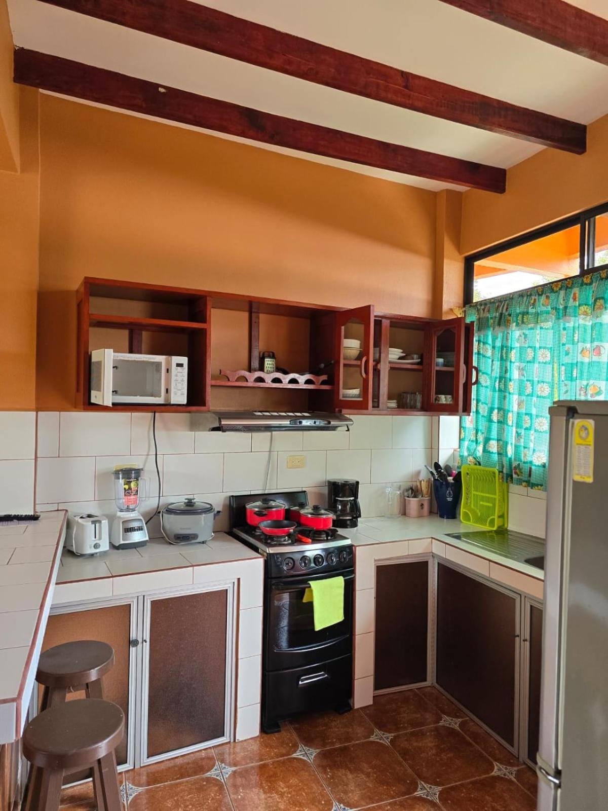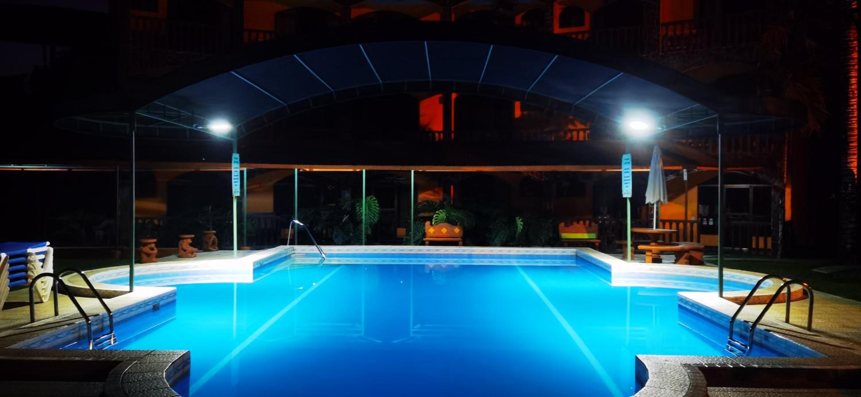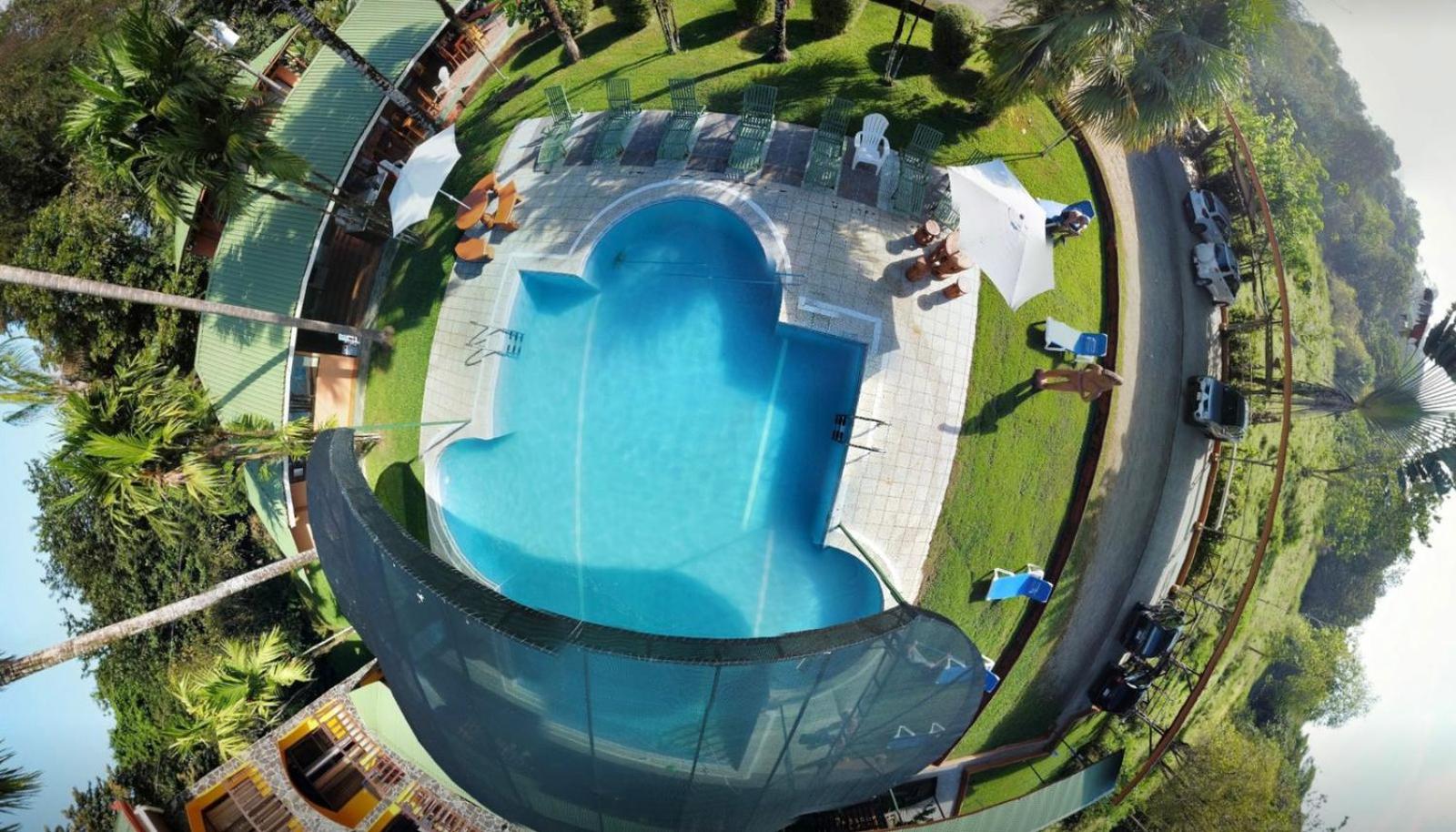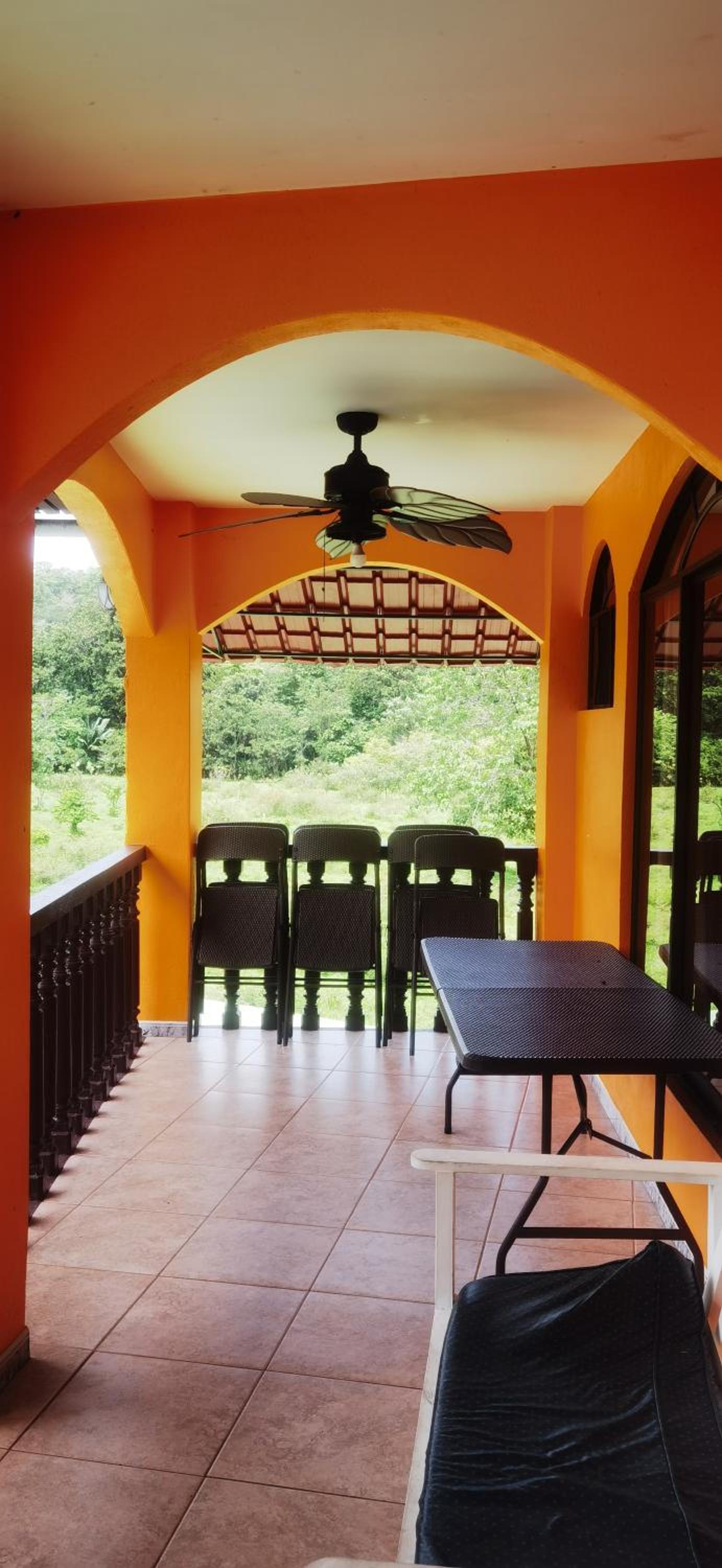 Right off main road but quiet ,on the edge of the jungle. Wildlife abundant on property.Saw iguana toucans frogs macaws and other colorful birds.Good pool . Rooms were good. Armando was super helpful,spoke great English,gave great recommendations on restaurants (Tex Mex adjacent to property)Left my headphones and he what apped me and put them in mail on his own time and they caught up with me at my next stay in Puerto Jimenez.Covered parking fully equipped kitchen hot water gated entrance. Thanks Armando.